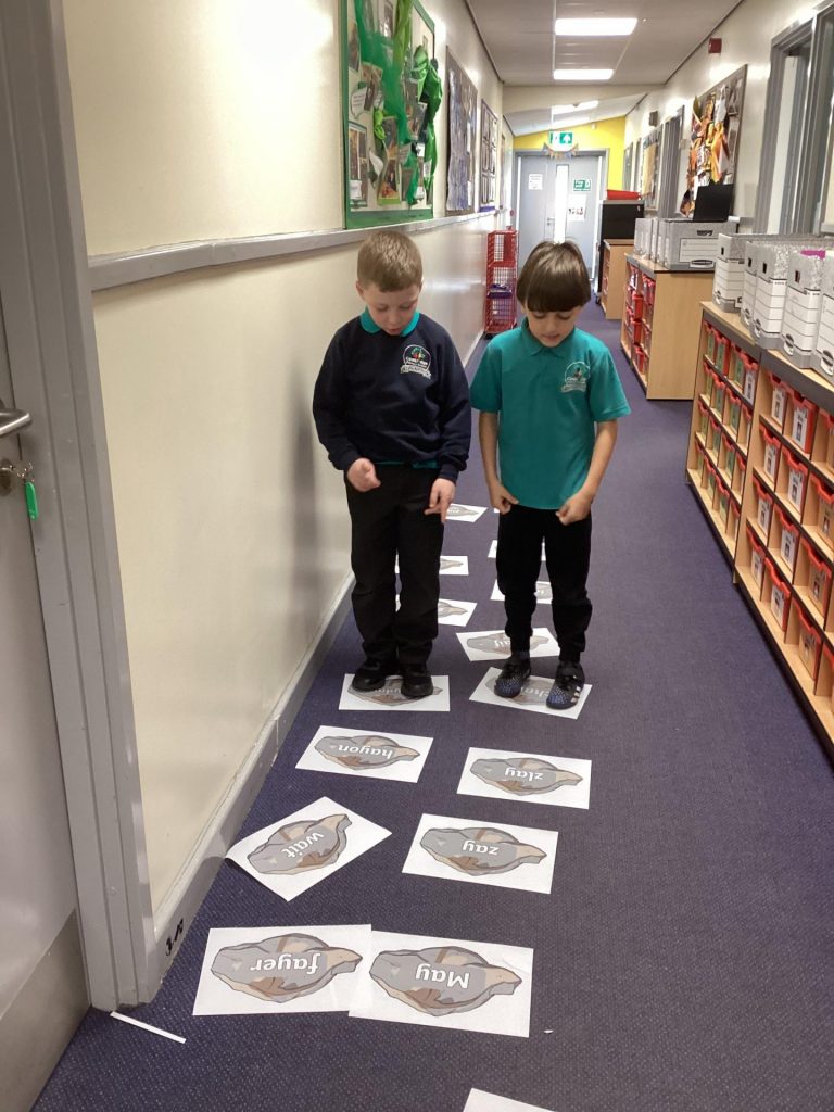 In Maths, Year One have begun multiplication, which begins with counting in two’s and tens. They have done lots of counting pairs of shoes, socks, 2p coins, two spots of dice, two Numicon pieces etc… Year two have been focusing on Fractions. They have been practising how to find the fraction of a number and how to add fractions.