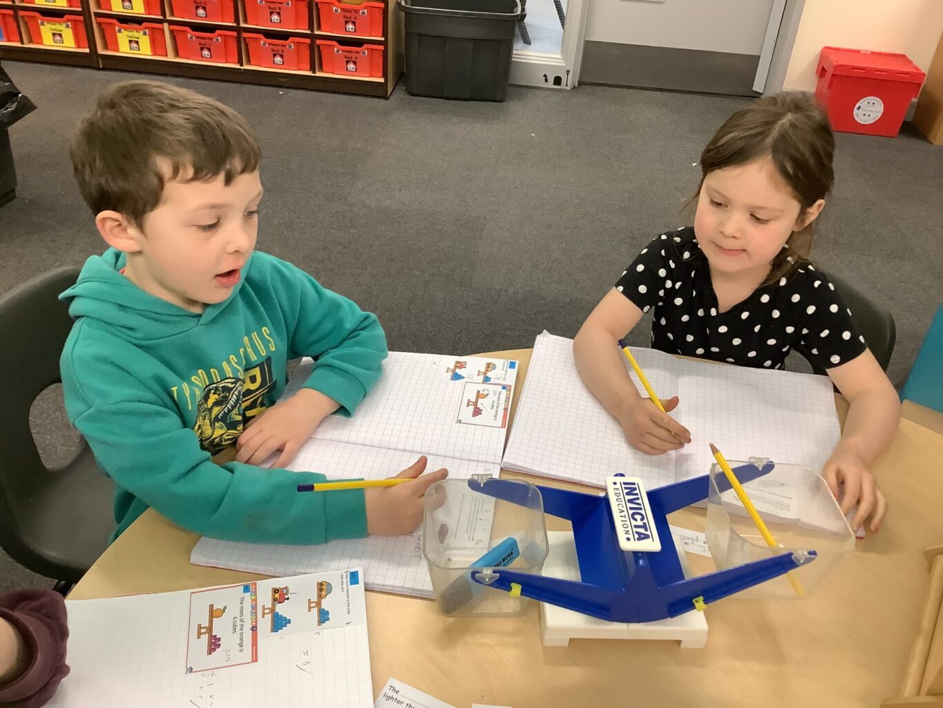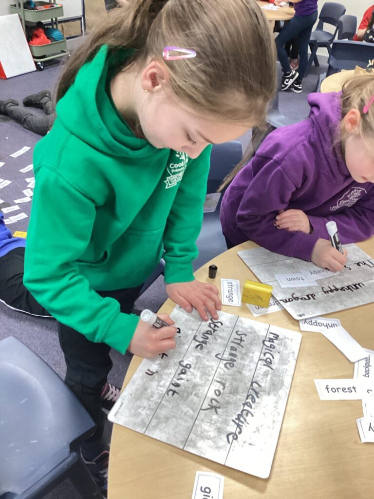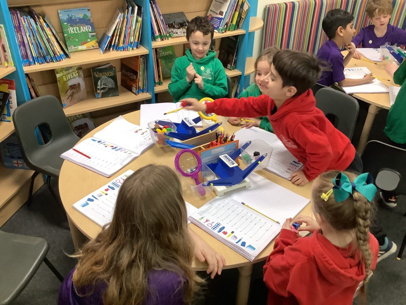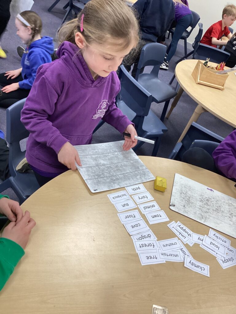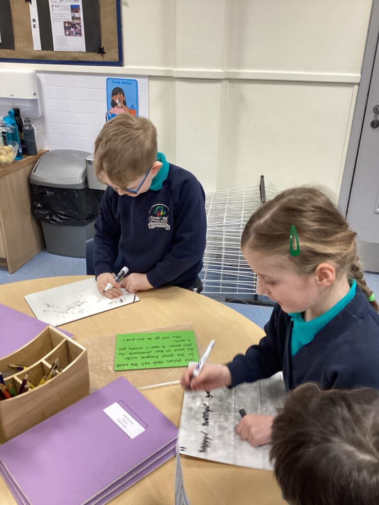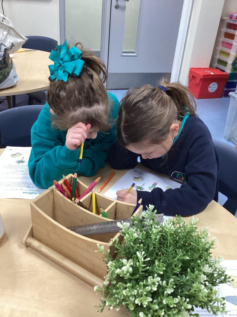 In Maths, Year One have begun to work on weight. They have been comparing the weight of objects using the terms heavier and lighter. They have also been looking at the mass of an object and using balances to see how many cubes each item weighs. One group in Year Two have been focusing on times tables. They have been doing multiplications using bar modals and have been drawing arrays and answering word problems. The other group have been working on division, using skills of grouping and also using numberlines to divide.