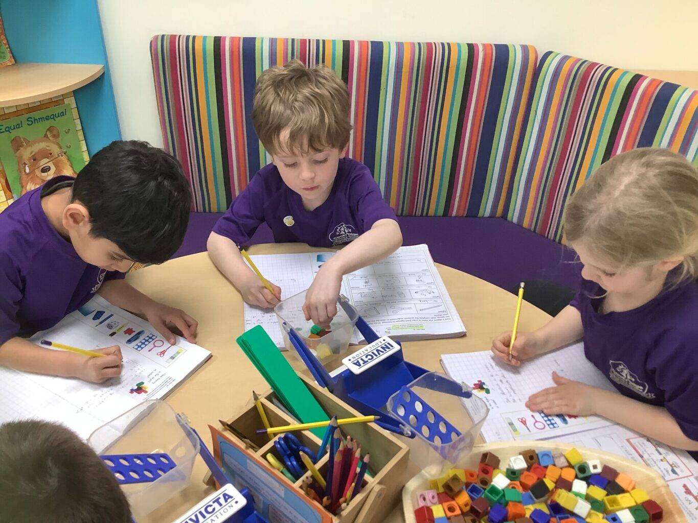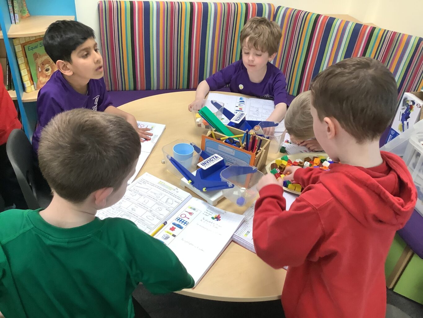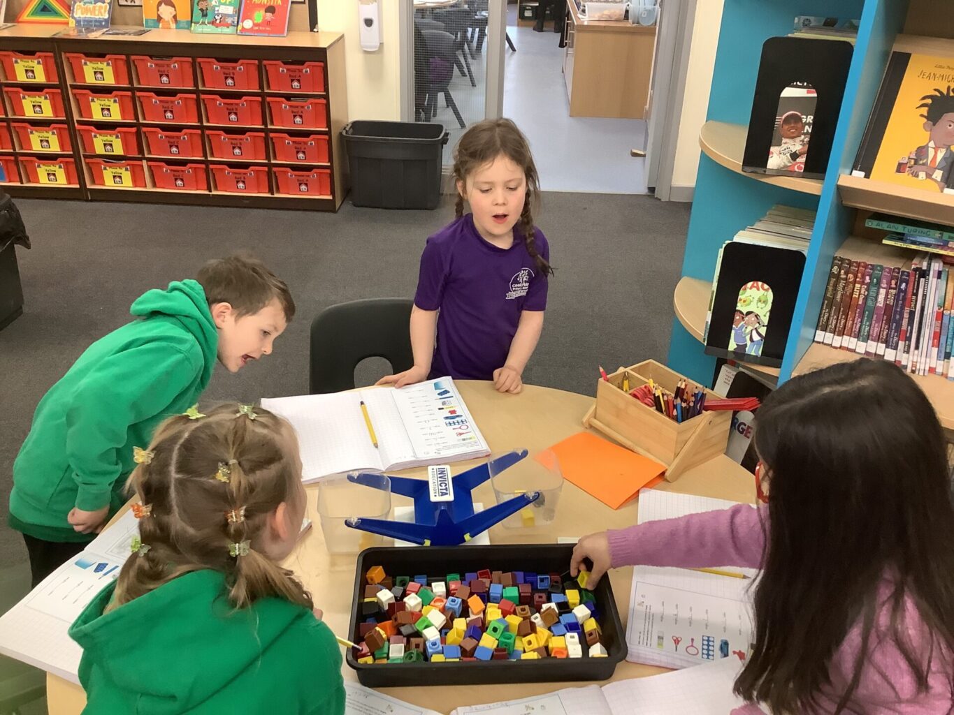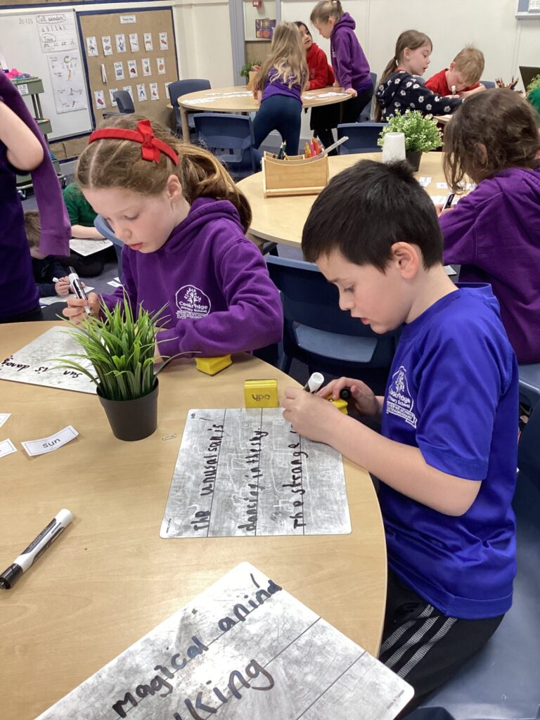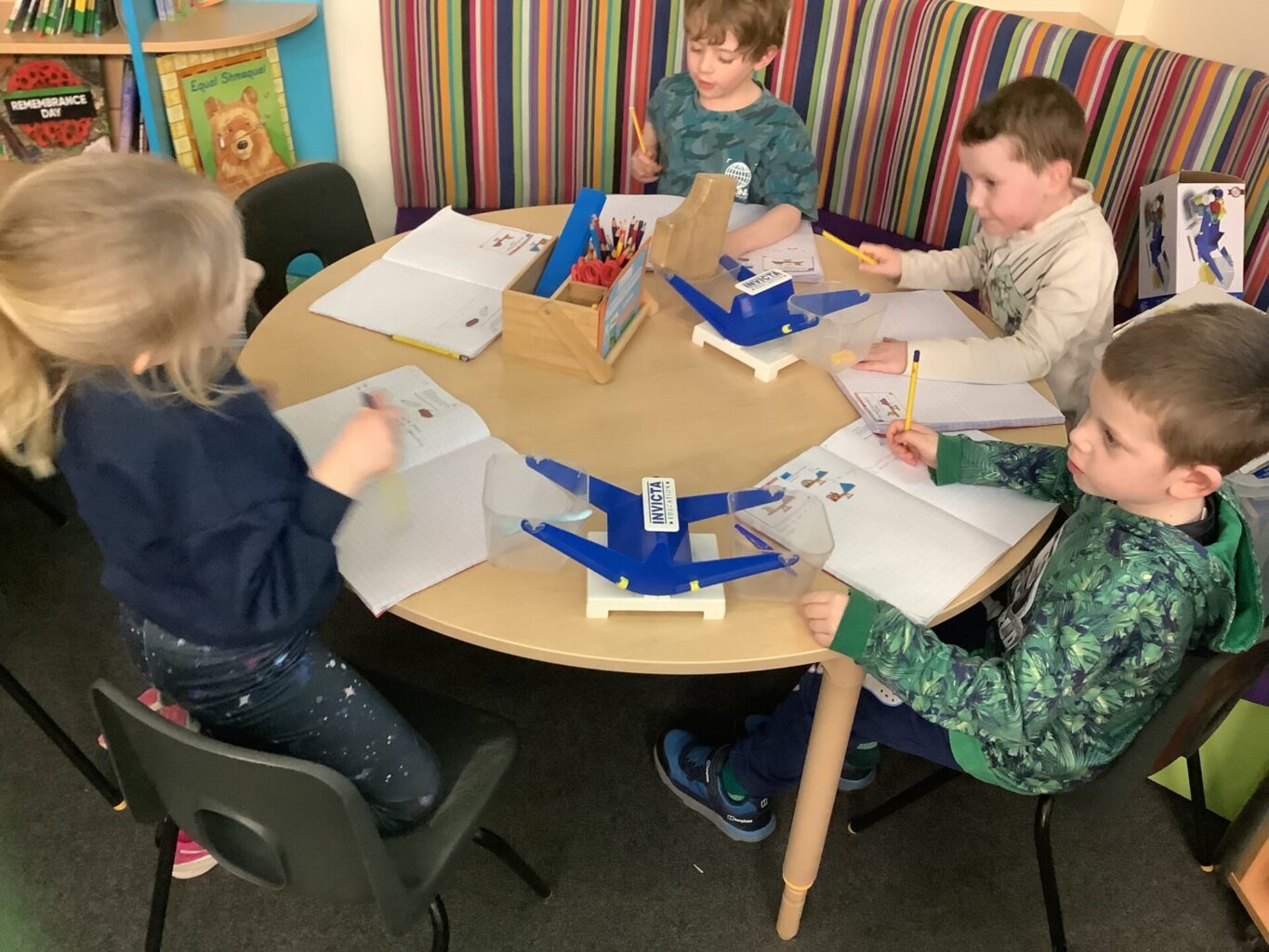 In Maths, Year One have begun to work on weight. They have been comparing the weight of objects using the terms heavier and lighter. They have also been looking at the mass of an object and using balances to see how many cubes each item weighs. One group in Year Two have been focusing on times tables. They have been doing multiplications using bar modals and have been drawing arrays and answering word problems. The other group have been working on division, using skills of grouping and also using numberlines to divide.