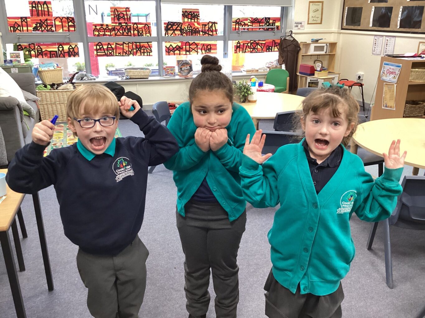 You may be aware that we are having work done to improve our forest schools area. We are having an outdoor classroom installed and an outside toilet. Therefore, we were unable to use this area this week. However, we used this time to decorate our houses ready for our ‘Great Fire of London’. We also drew the longest pudding lane across the playground in chalk and acted out the story with a specific emphasis of Vlad and Boxton and what happened in their story.