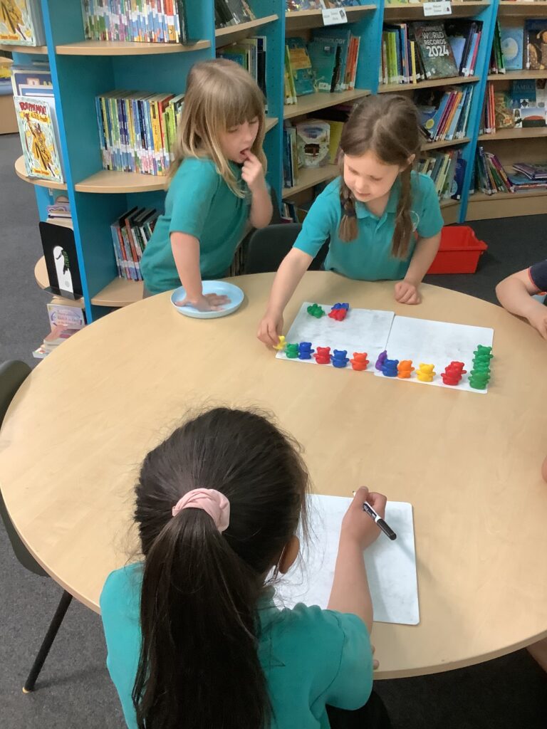 In maths, Year One have been sharing amounts out as the beginnings of addition. into 2, 3, 4, 5 etc… Year Two have been finding fractions of amounts. They have been focusing on the denominator and what they need to share the number into. For all of us, we have been using the rhyme ‘When we share it must be fair’.