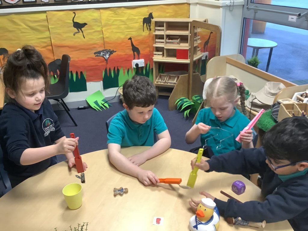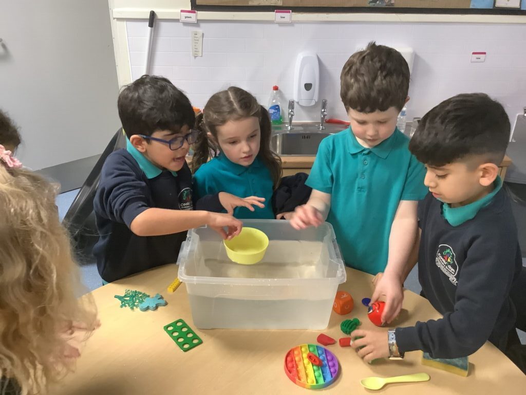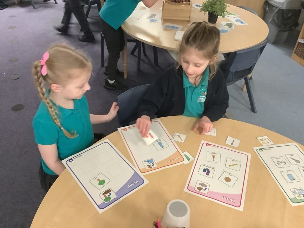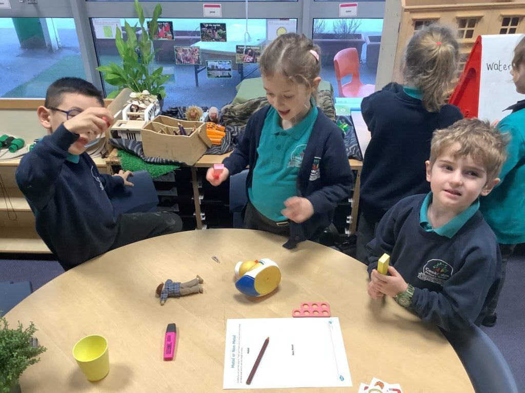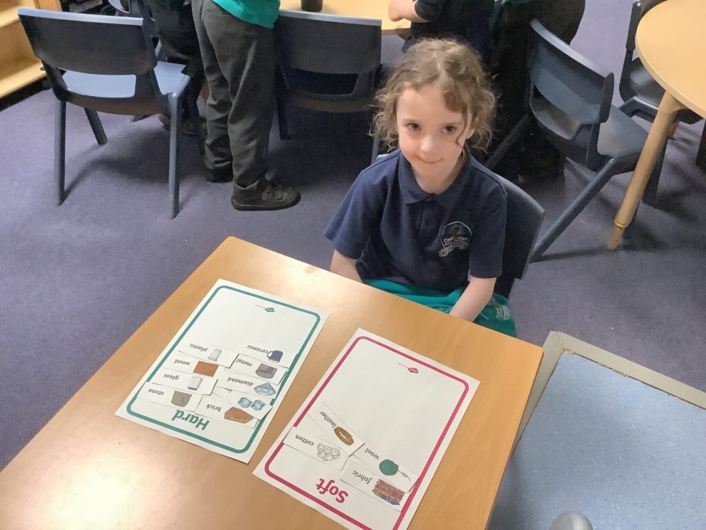 We had a provision time for Science, where the children were able to choose and explore what they would like to do. They looked at various objects and decided if they would float or sink and if they would be magnetic, before testing their theory. They also categorised items according to what material they are made from and whether they are hard or soft.