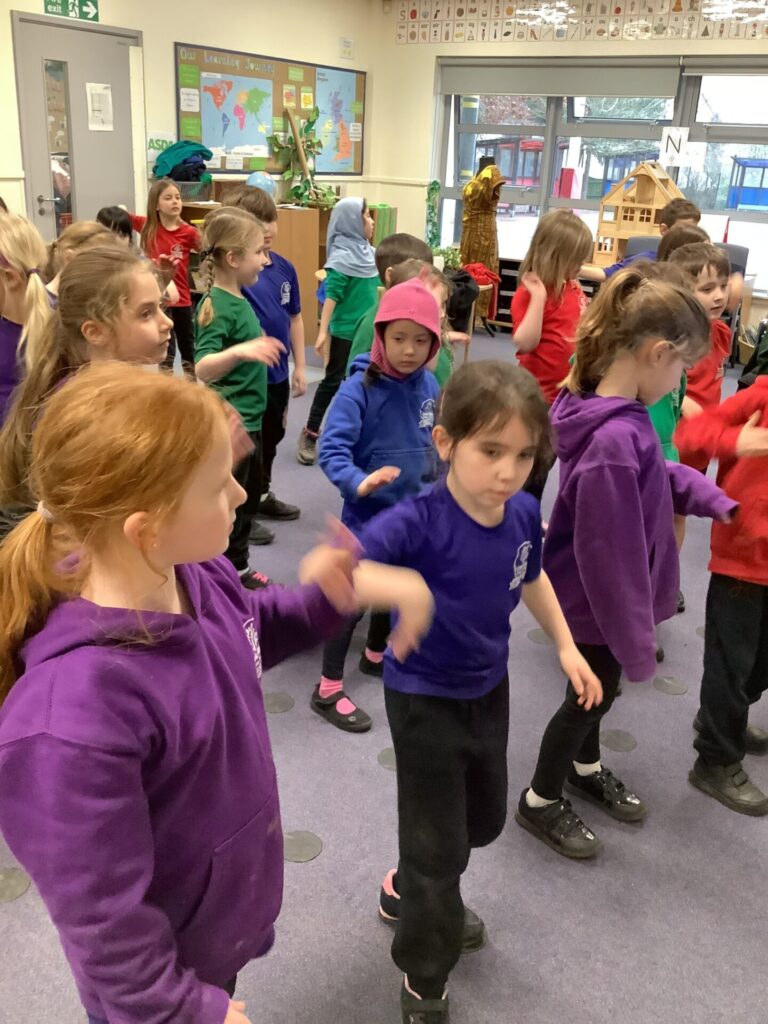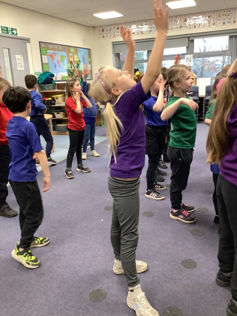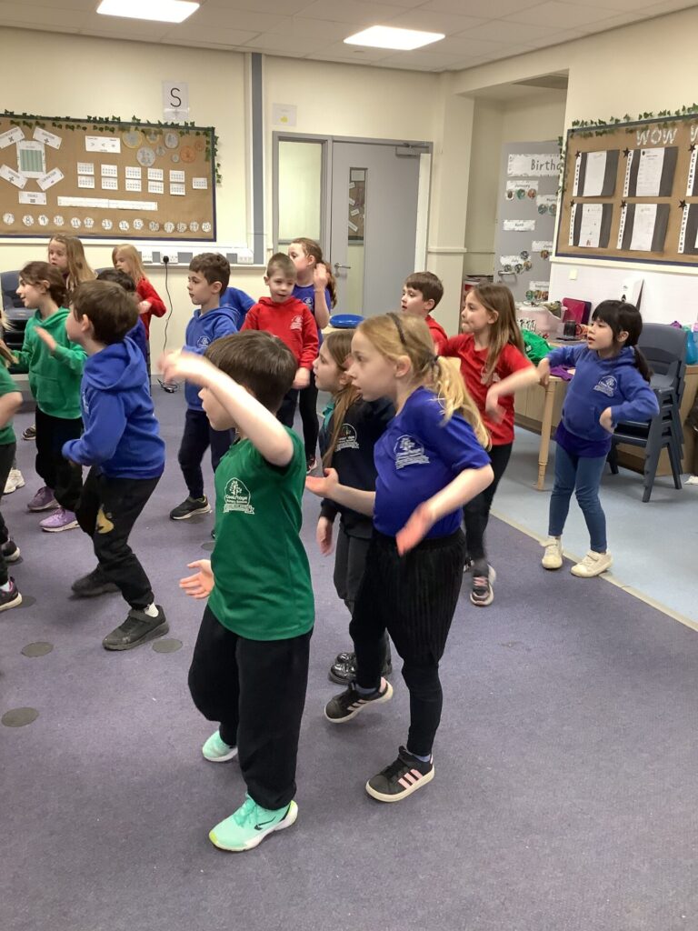Year One have been listening to and learning some African songs in music. They passed the bean bag round whilst singing African folk songs, listening to the steady beat. They also read ‘Lila and the secret of the rain’, which is a Kenyan story and they have been adding sounds to make a rain composition. Year Two have been watching Ravel’s Bolero (Torvill and Dean’s dance music) which had a big crescendo (getting louder) in it. They then made their own compositions using the stick notations that they learnt last time.