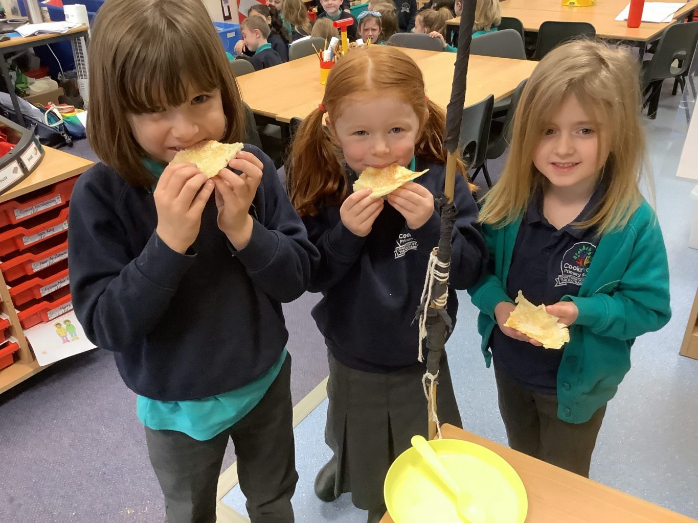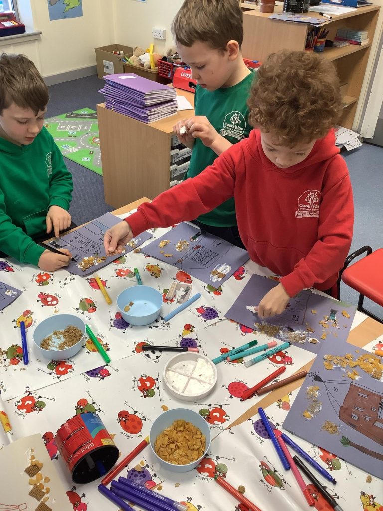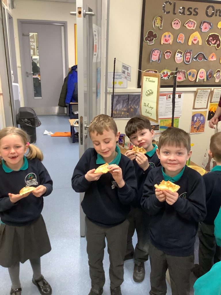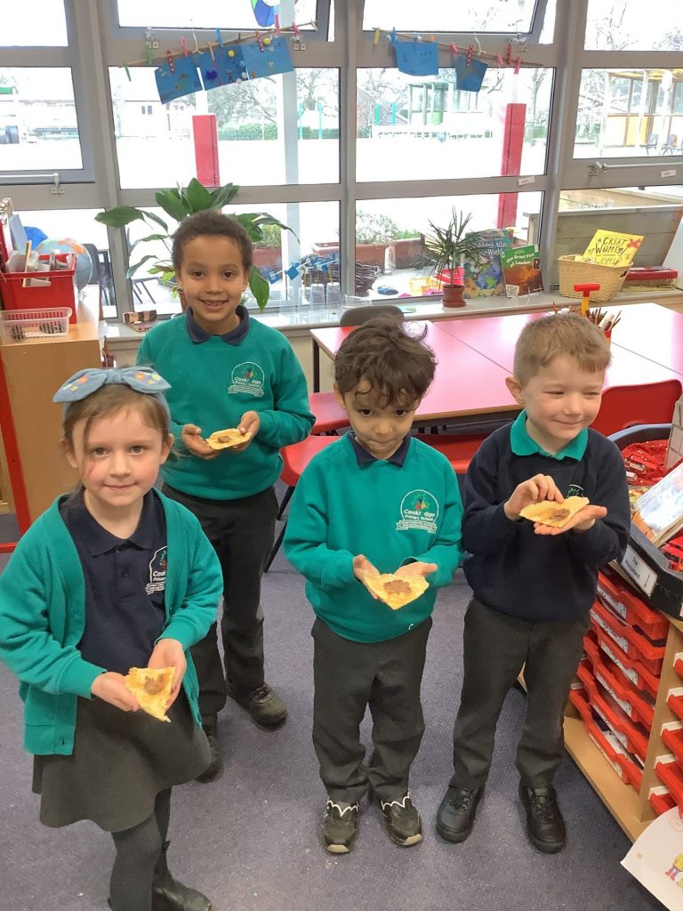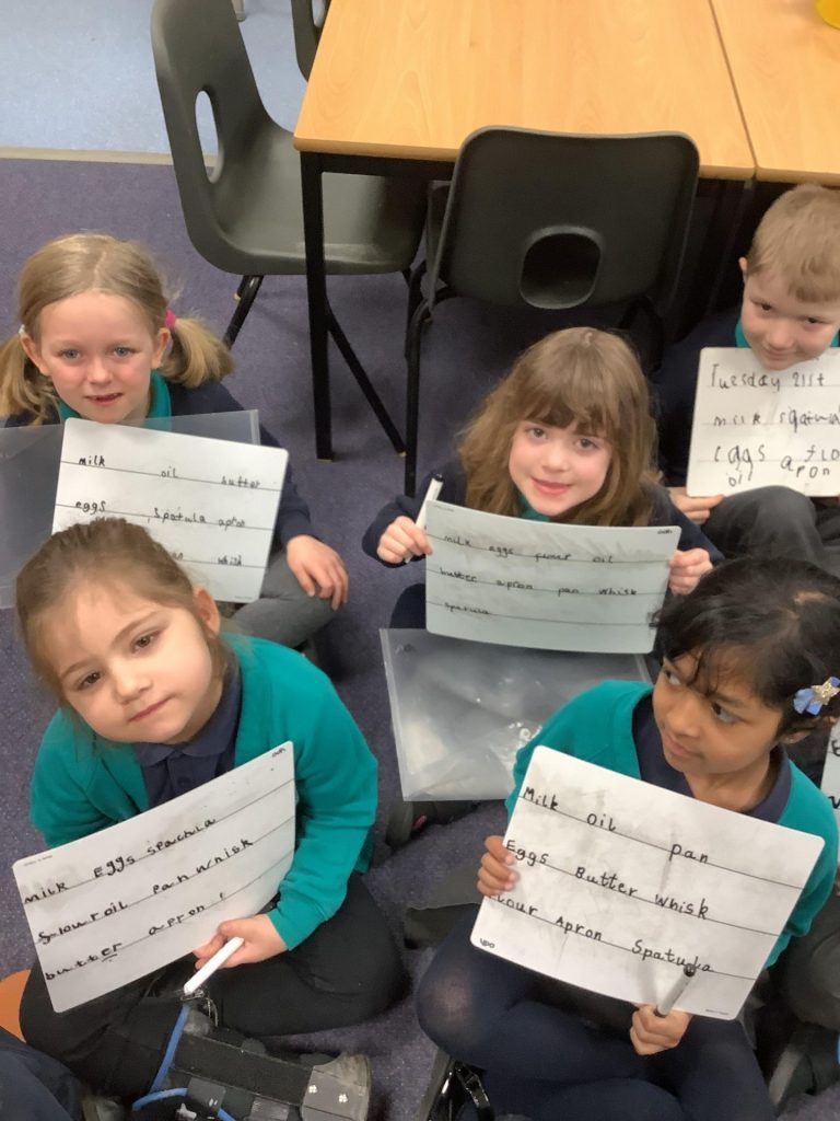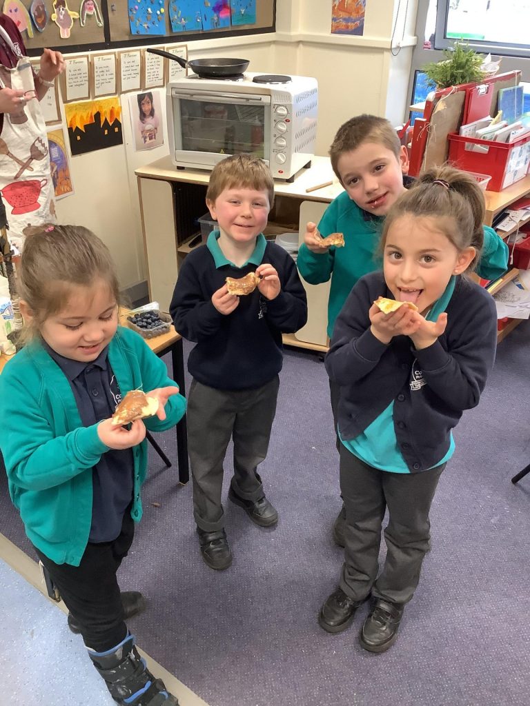 It has been the launch of our new book across KS1 this week ‘Cloudy with a chance of Meatballs’. We have been learning about a town that has no food shops, because all their food is delivered from the sky in the weather! We spent time discussing what food we would like to fall from the sky and created pictures of food falling on us. Year one made pancakes and described different foods using appropriate adjectives. Year two have been focusing on writing sentences using conjunctions.