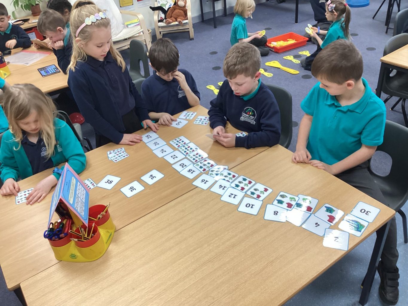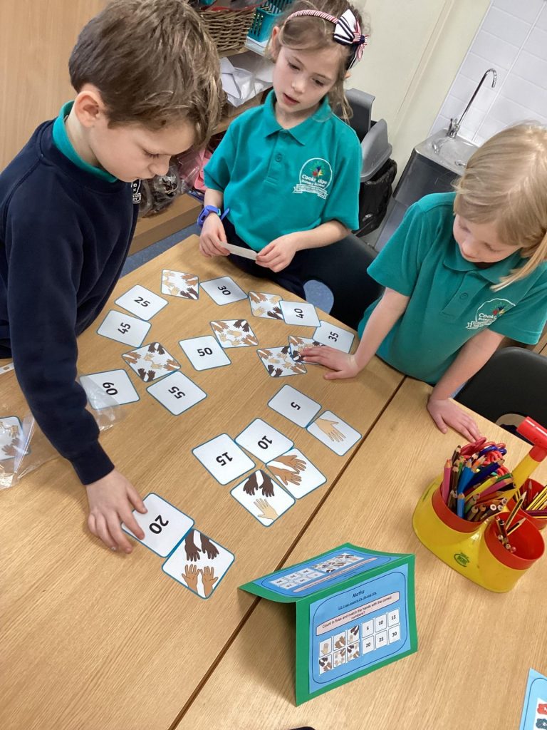 In Maths this week Year one have been looking at two different things. One group have been looking at partitioning numbers using Base 10 and one group have been finding the difference between two numbers using lots of different Maths resources. In year two they have begun multiplication. They have introduced this concept by beginning with repeated addition.