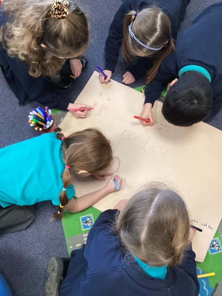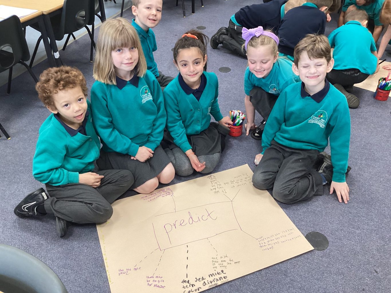 On Tuesday, it was World Poetry Day. Year One have been focusing on Poetry in their English lessons, firstly writing a poem about colours in the rainbow using similes. In Year Two English, the children are looking at the description of characters and settings using their book ‘The Mousehole cat’ and have been using conjunctions to join their sentences.