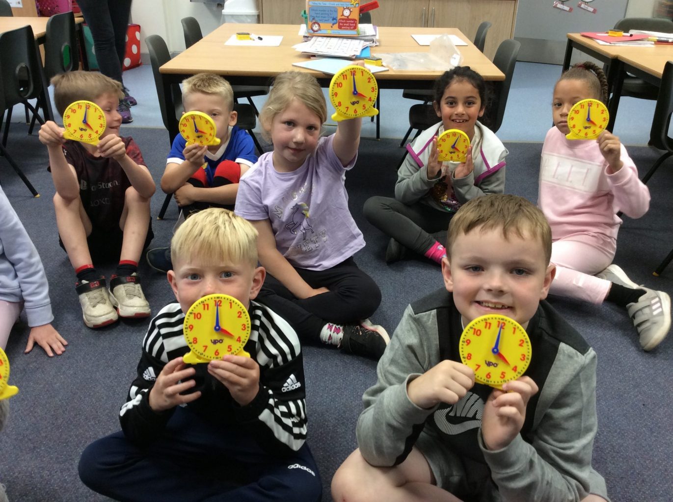 Maths – We have been focusing on time – o’clock, quarter past, half past and quarter to. We have been drawing clocks on the playground and even made a human clock!