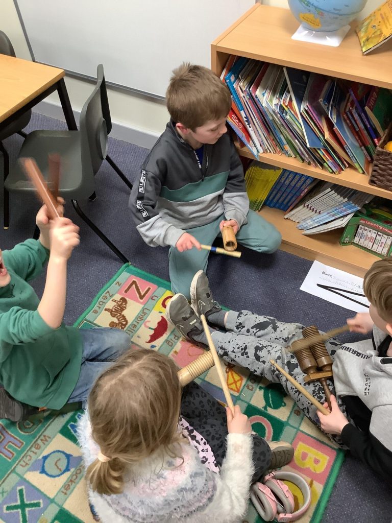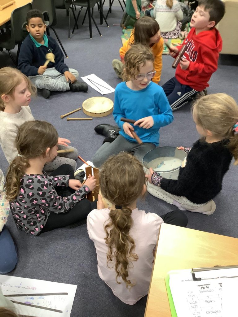In Music, Year one have been playing lots of singing games. They have been playing a game called ‘Button you must wander’ and singing songs on limited range notes. Year two have been learning about crescendos. The listened to ‘Bolero’ by Ravel and have been making their own crescendo pieces using percussion.
