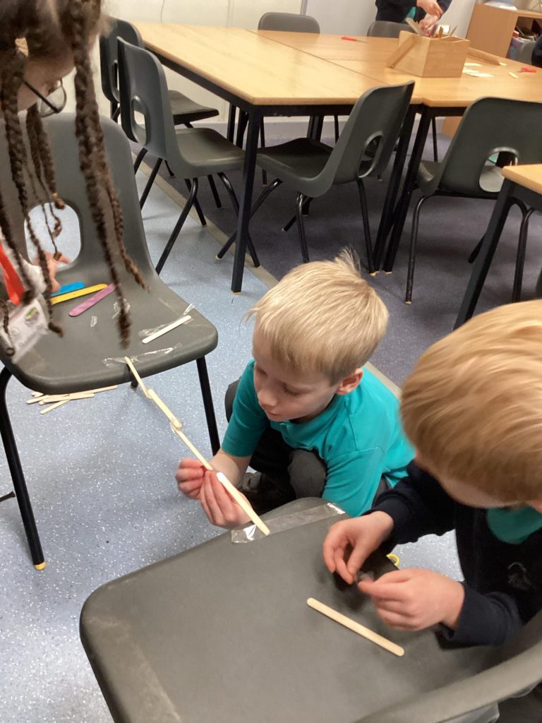 The children had a problem to solve in Science today, linking in with design technology. They had to build a bridge for the animals to be able to cross the Savannah. They had to think about which material would be the most suitable for the job and why. They then tested out the bridges to see which were the strongest and remained standing.