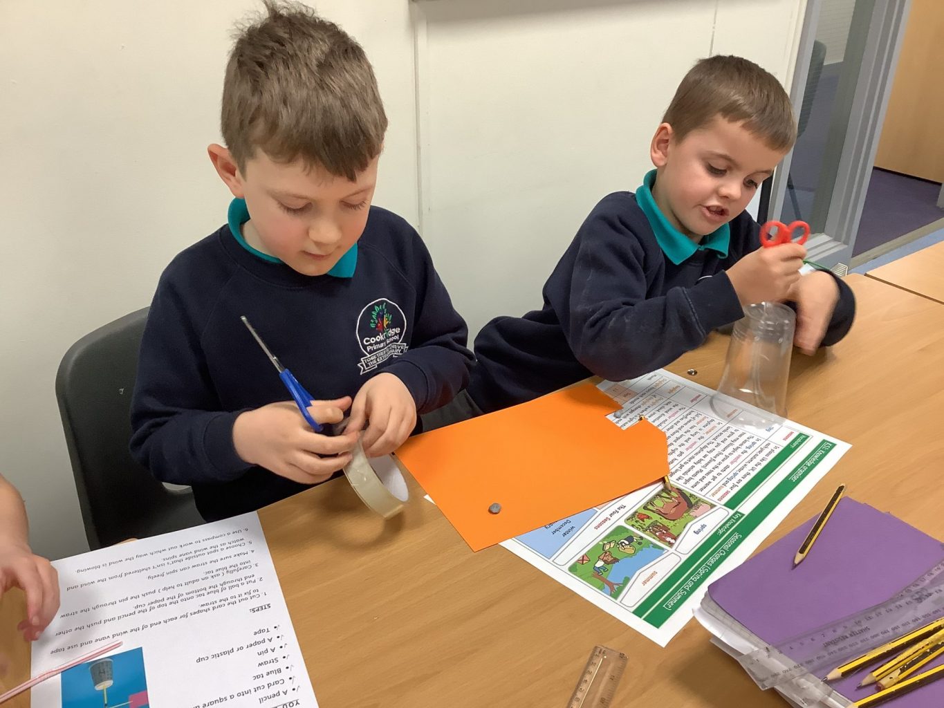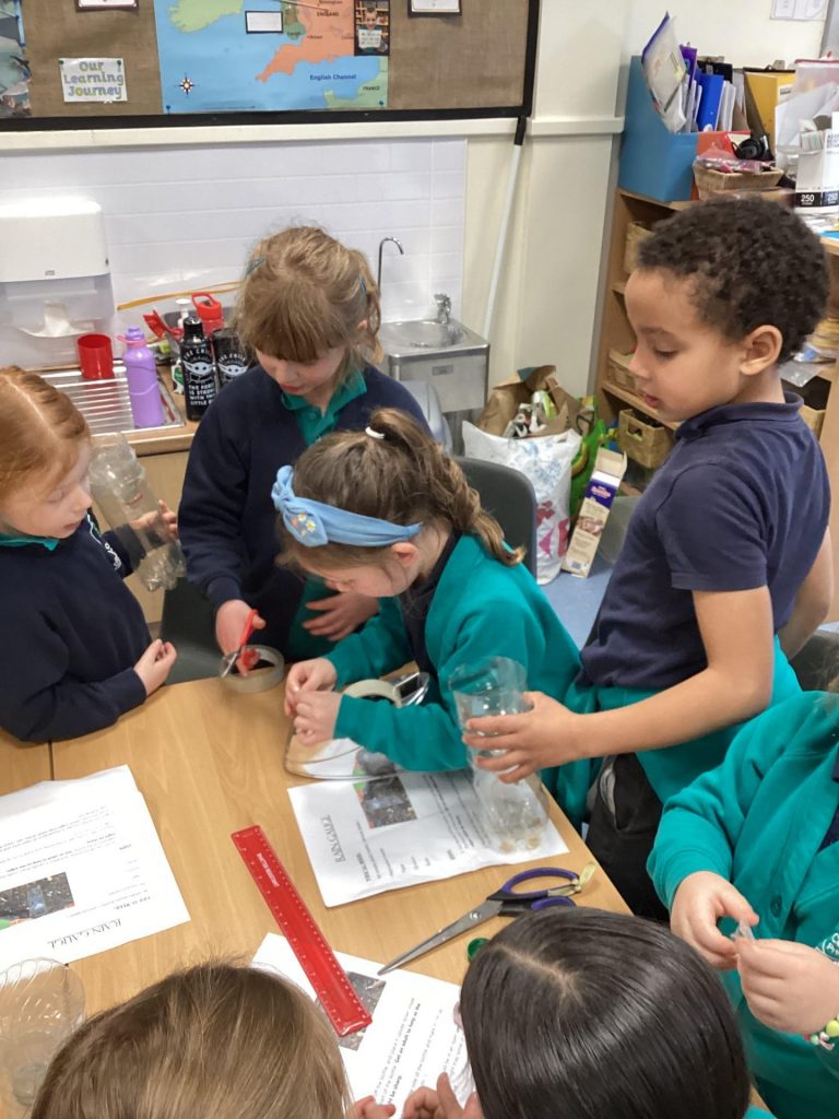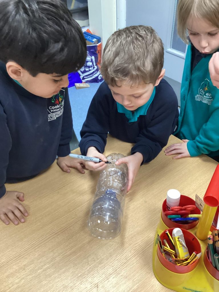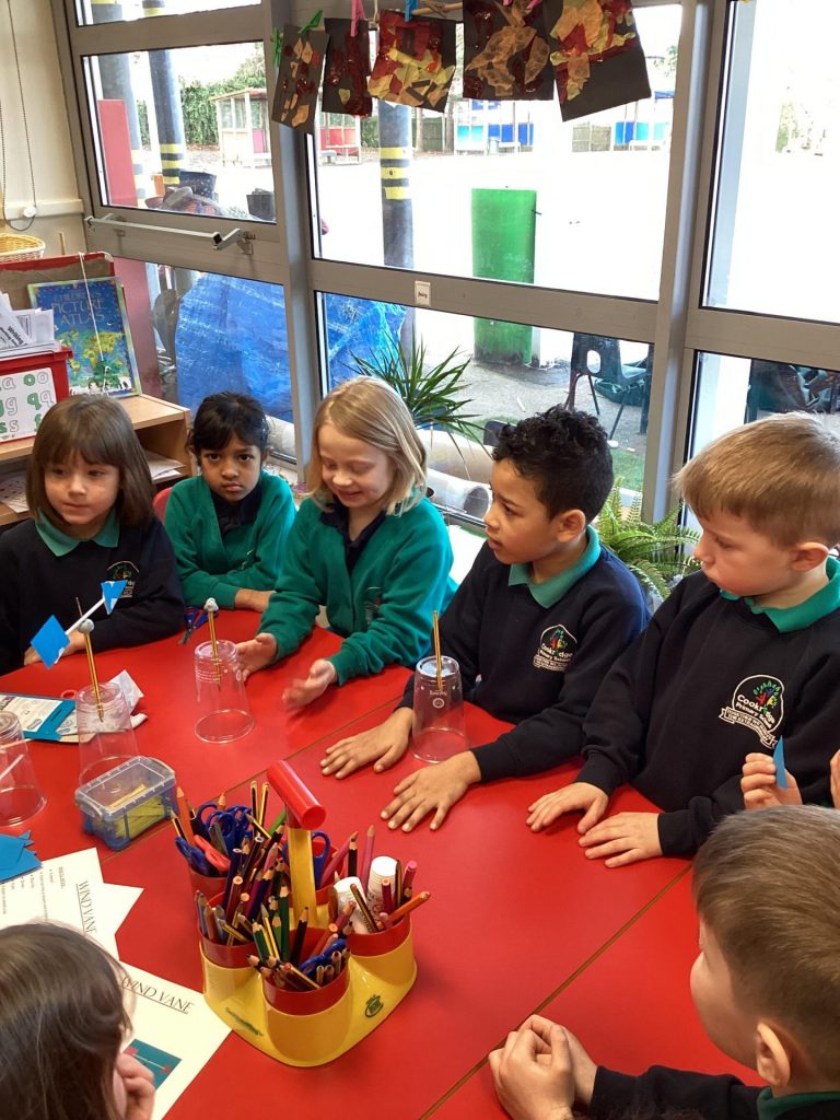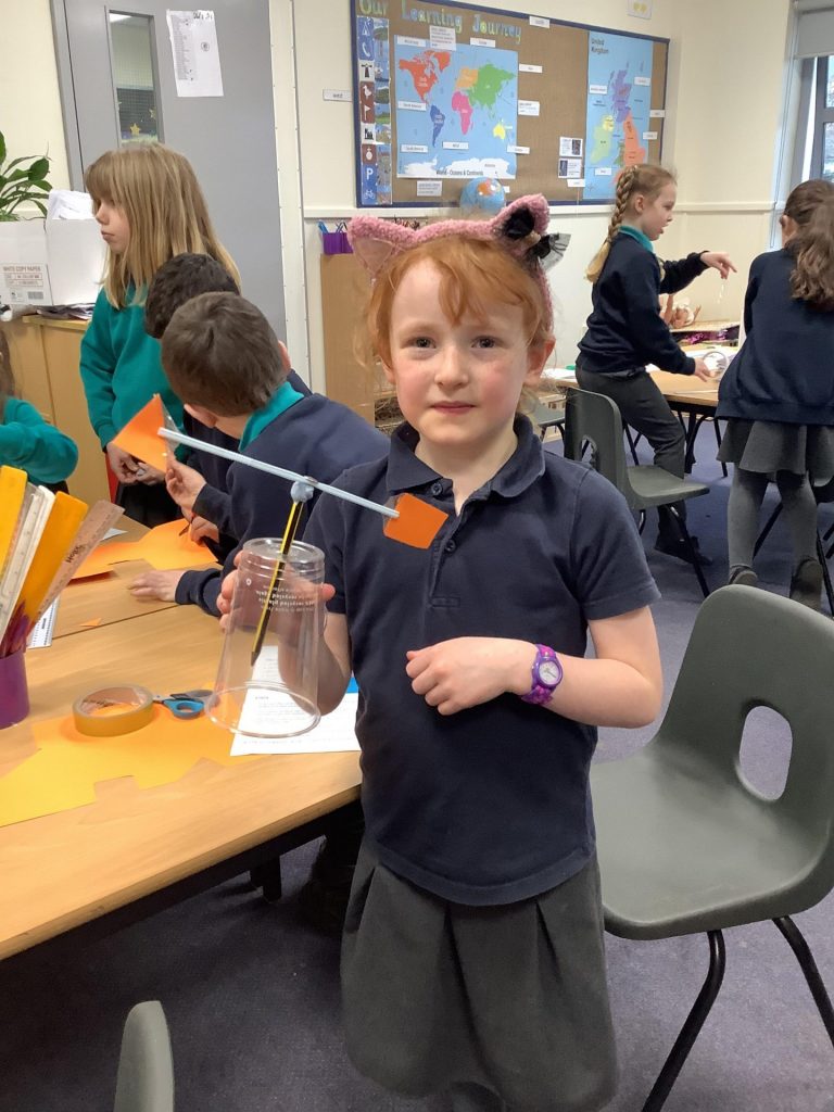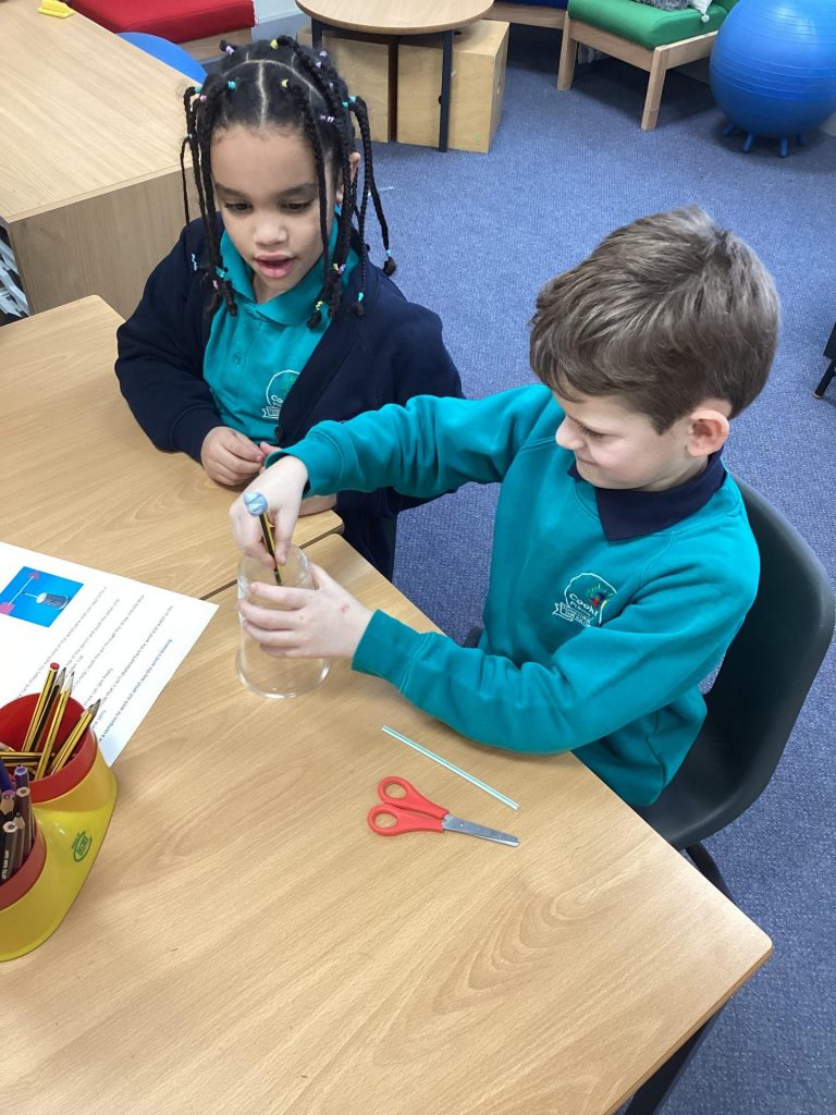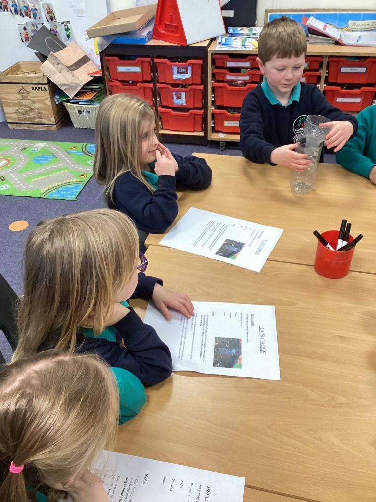 We have been learning about the weather and changes in the seasons. We then worked in groups to make weather vanes and rainfall gauges.