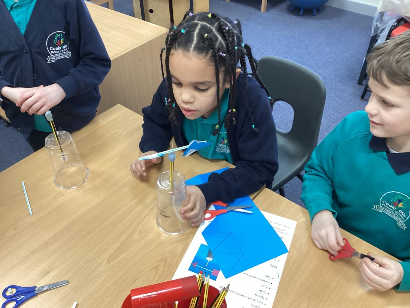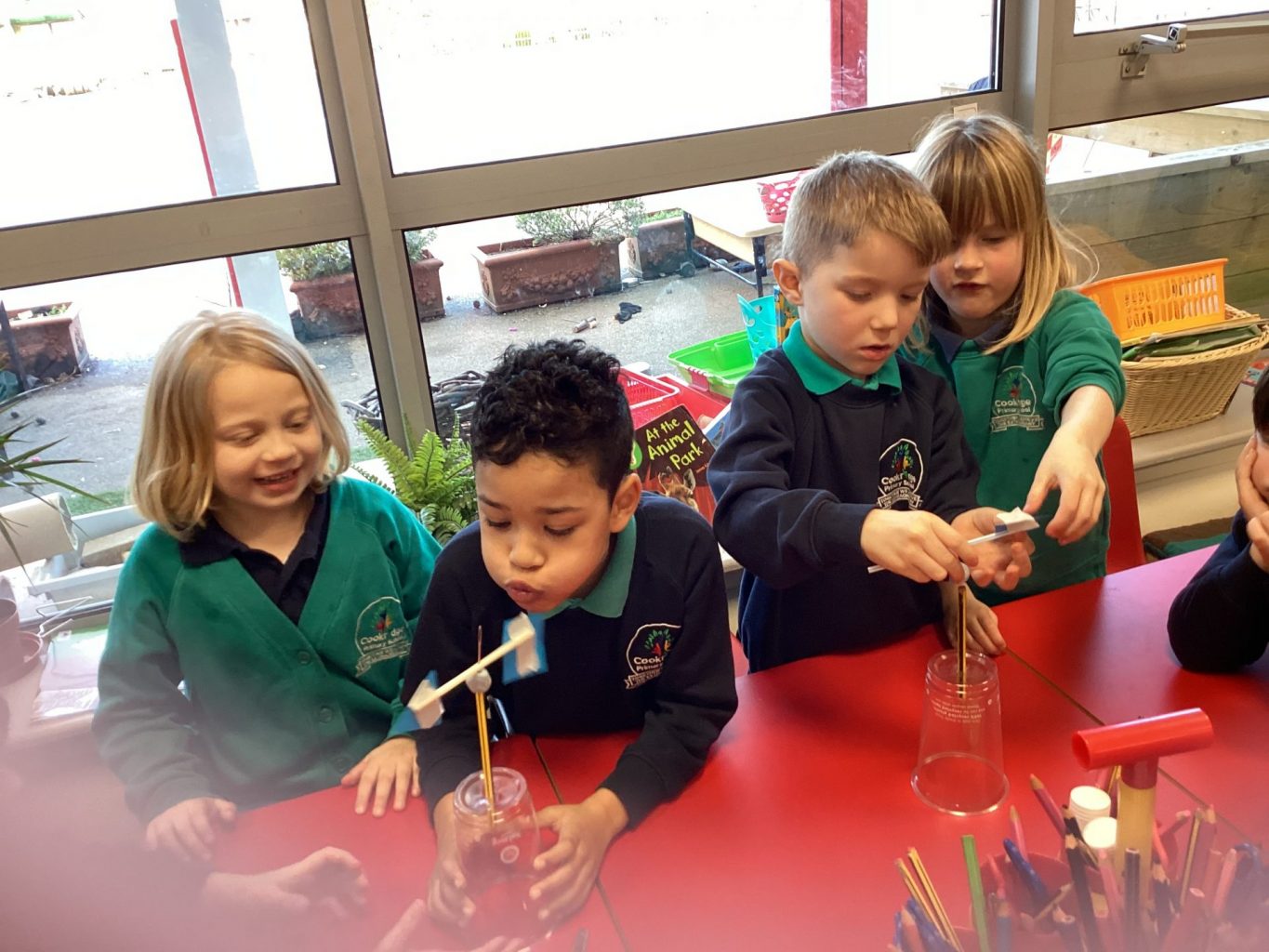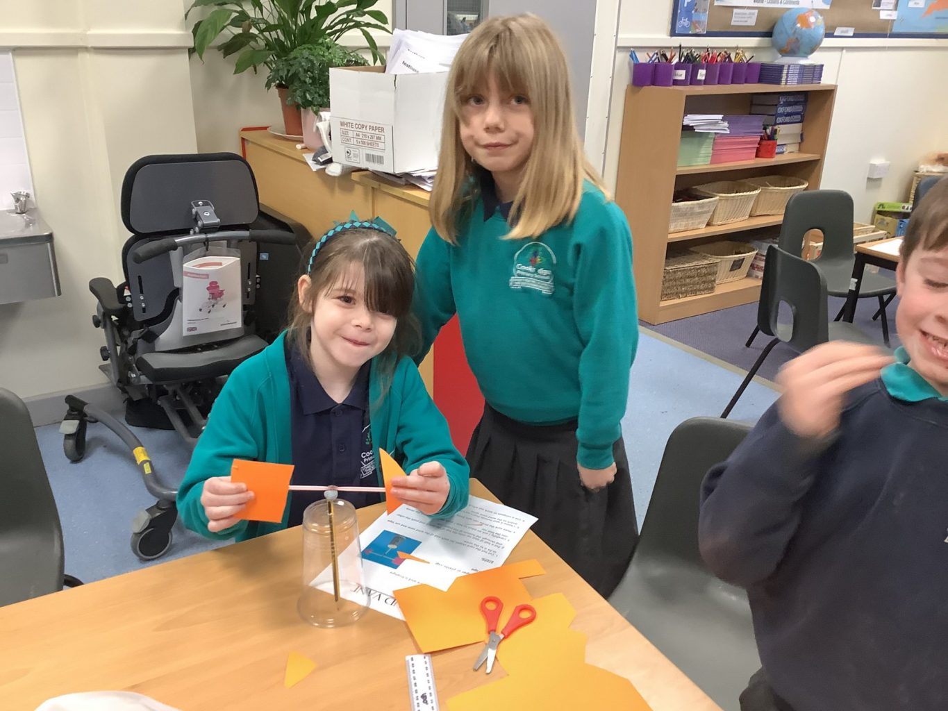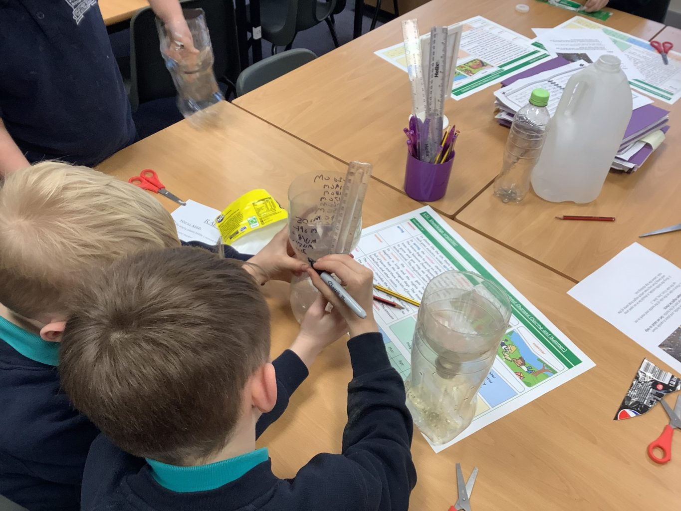 We have been learning about the weather and changes in the seasons. We then worked in groups to make weather vanes and rainfall gauges.
