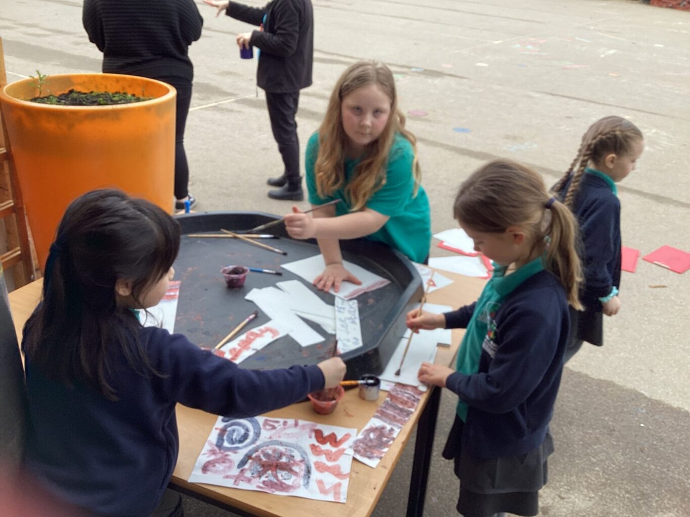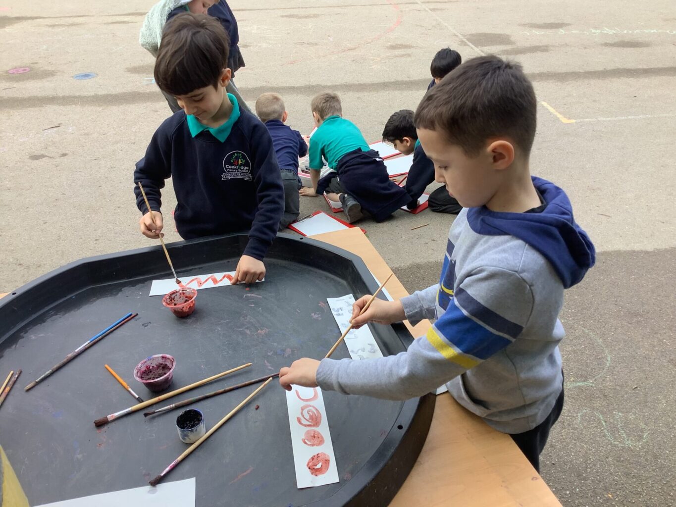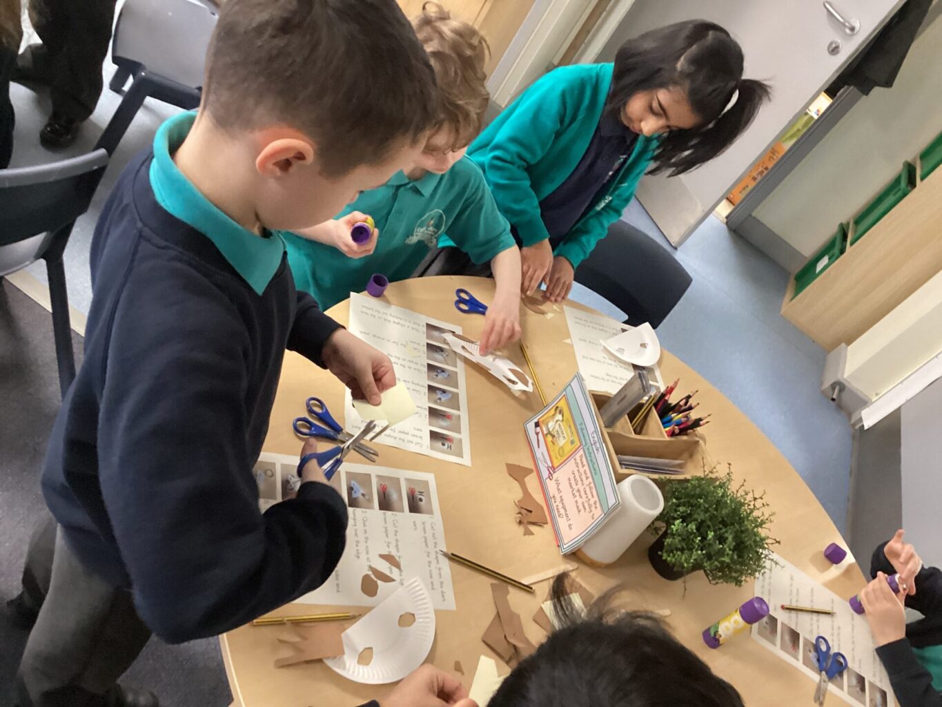 In Music, Year One listened to the story of ‘Strega Nona’. They explored using long and short sounds using pasta. Year Two have been learning a song called ‘Who’s that tapping at the window?’. They had their own rhythm conversation, writing it down using stick notation.