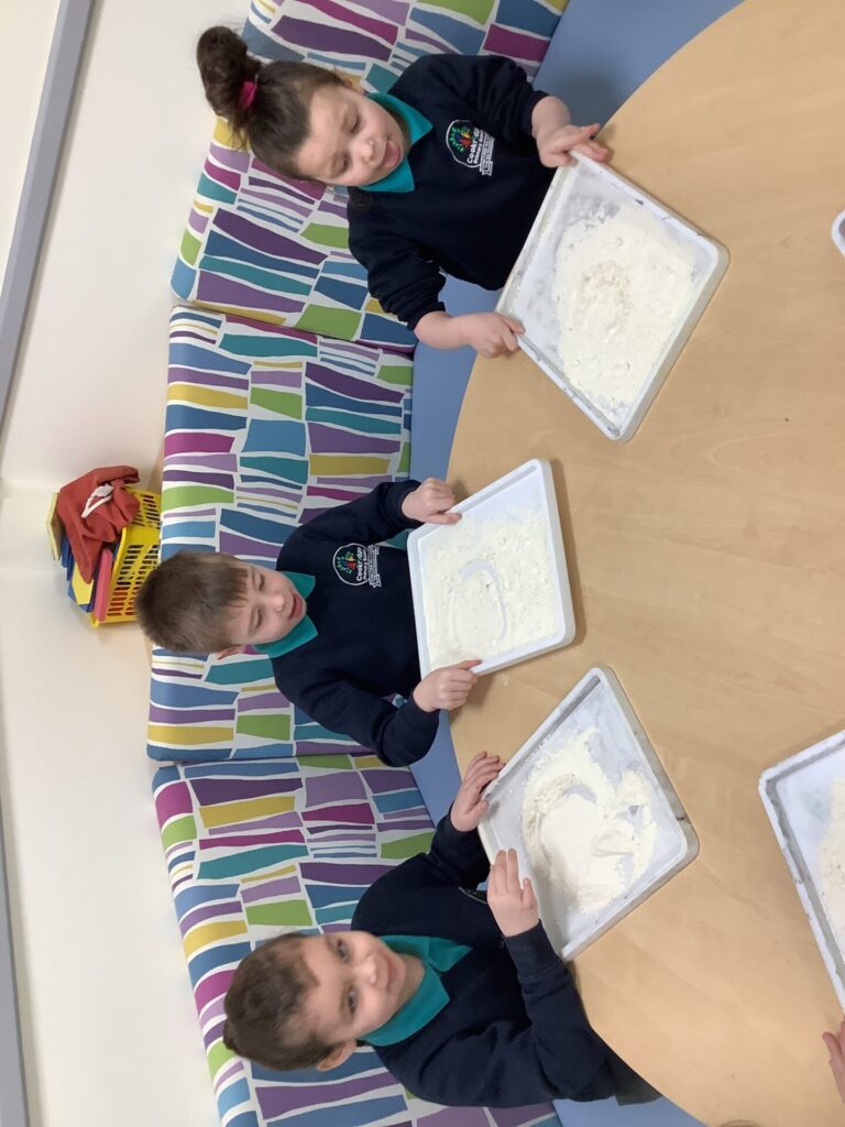 The children began a mini project in art. They used pastel crayons to create a base layer for their art work and then covered it in black paint. Stay tuned to further newsletters to see what they do next!
