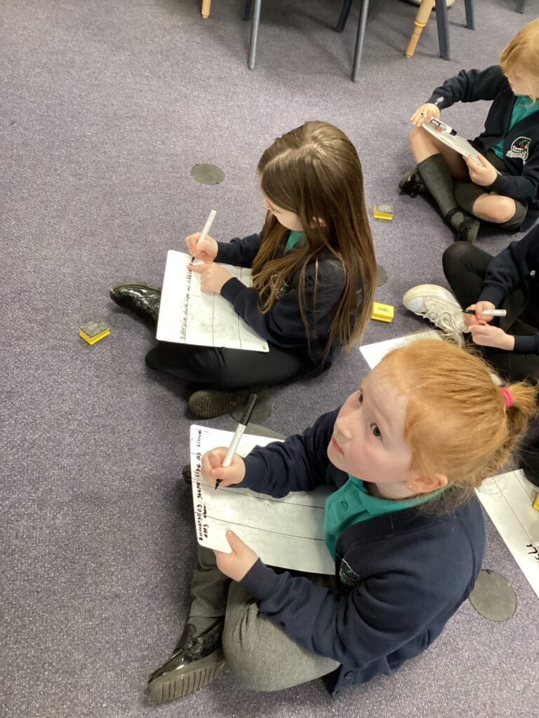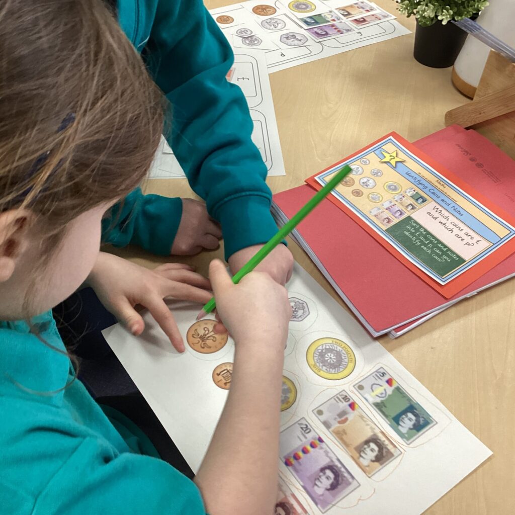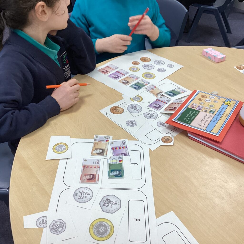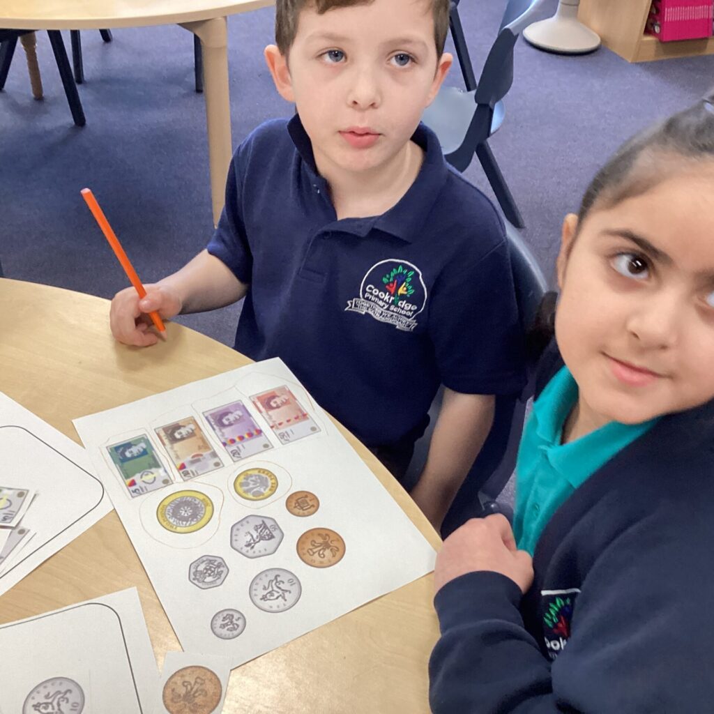 Year One have been doing lots of missing number problems in Maths. They have learned the skills of using basic inverse and also noticing how they can add on or subtract from a given number. In Year Two, one group have been learning about money. They have been identifying coins and working out which coins can be used to buy different items. The other group have begun to learn about drawing arrays for the beginning of multiplication.