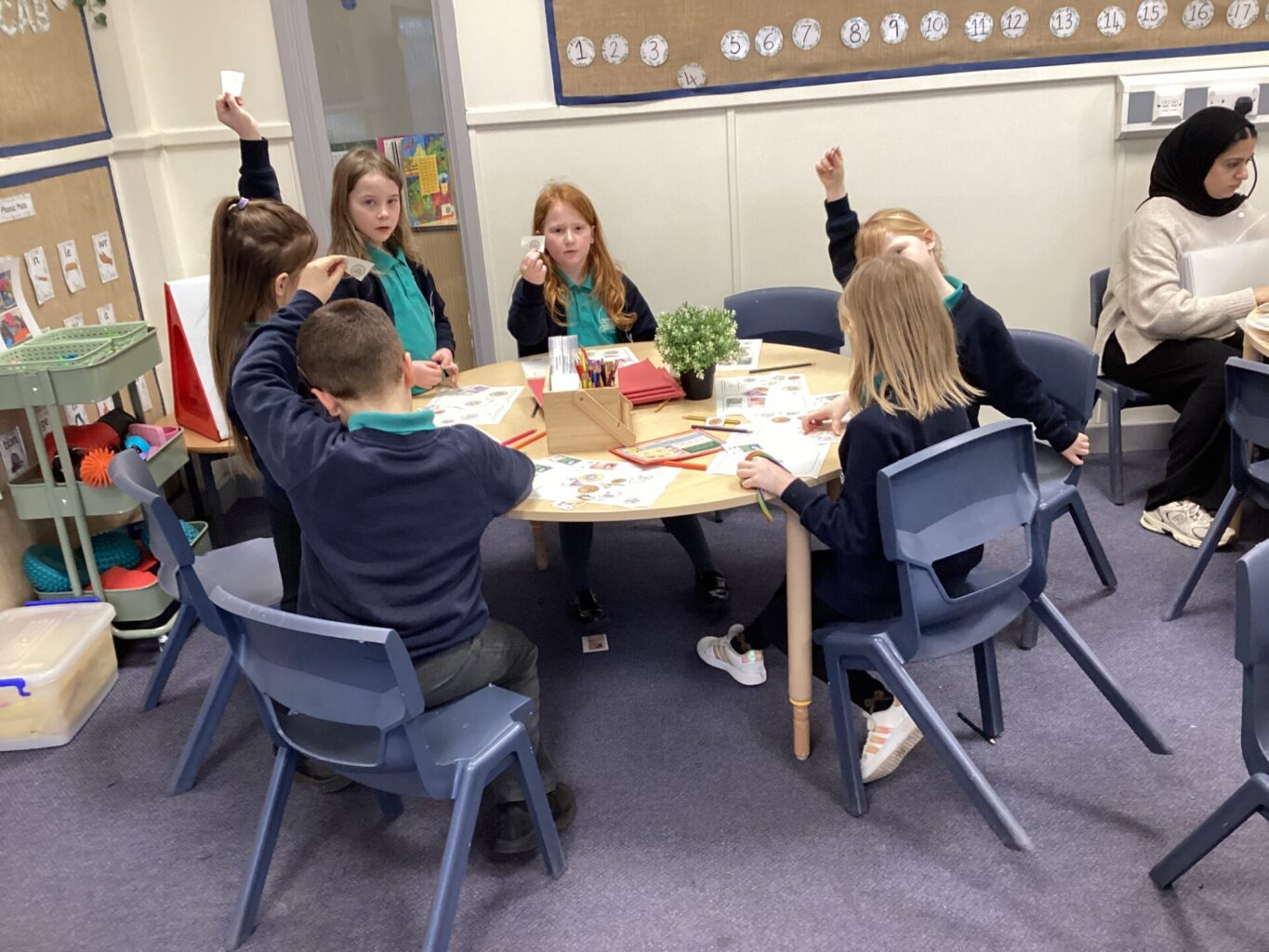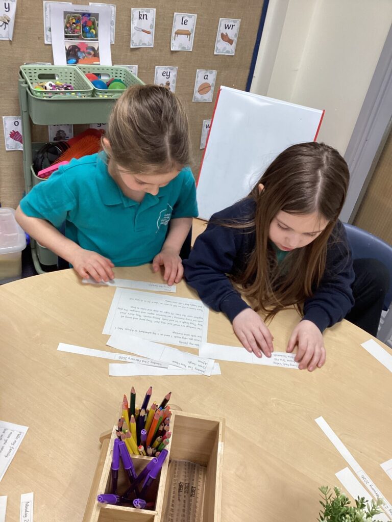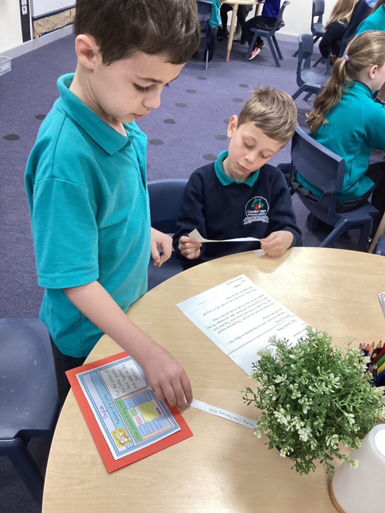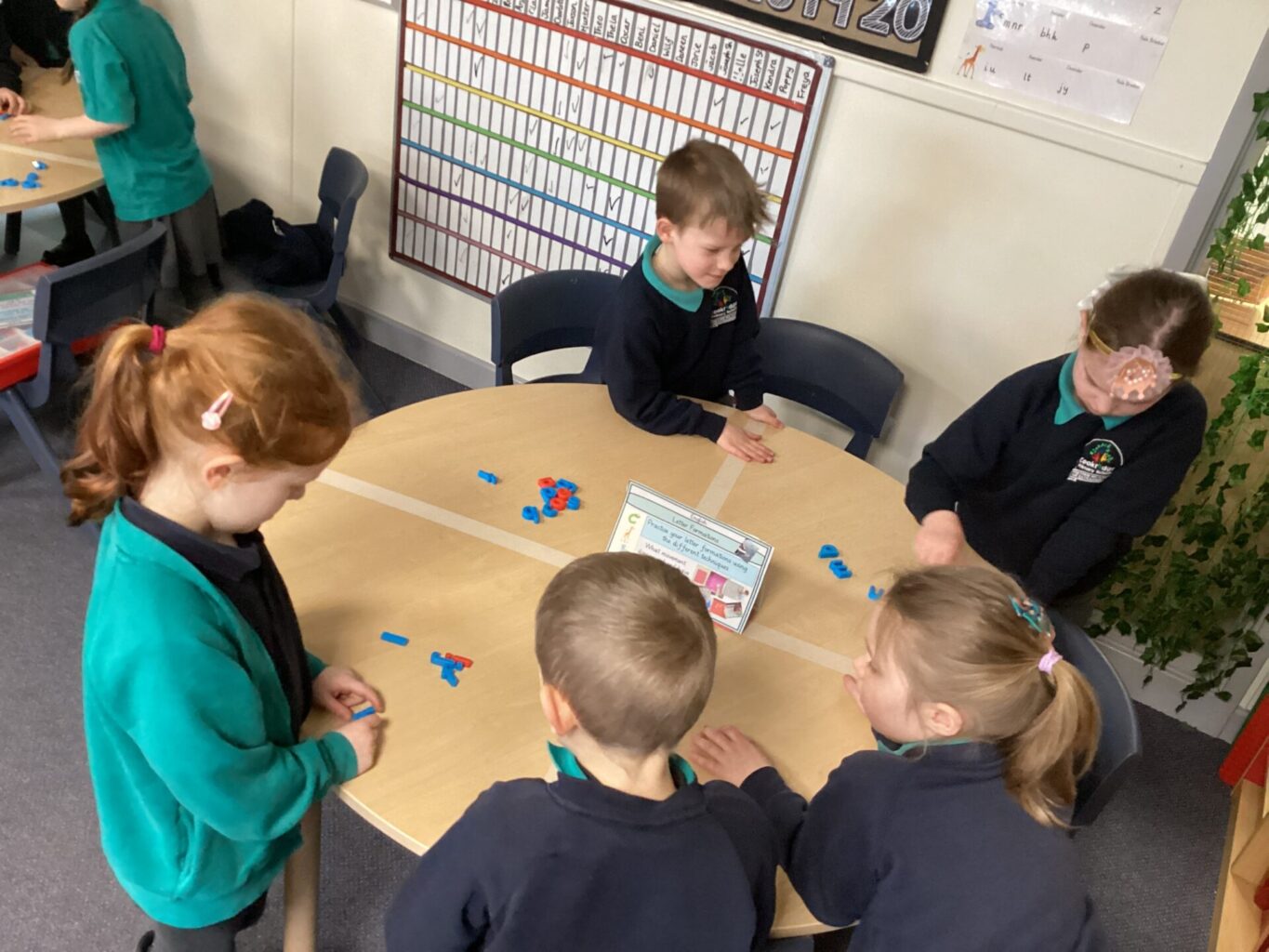 Year One have been doing lots of missing number problems in Maths. They have learned the skills of using basic inverse and also noticing how they can add on or subtract from a given number. In Year Two, one group have been learning about money. They have been identifying coins and working out which coins can be used to buy different items. The other group have begun to learn about drawing arrays for the beginning of multiplication.
