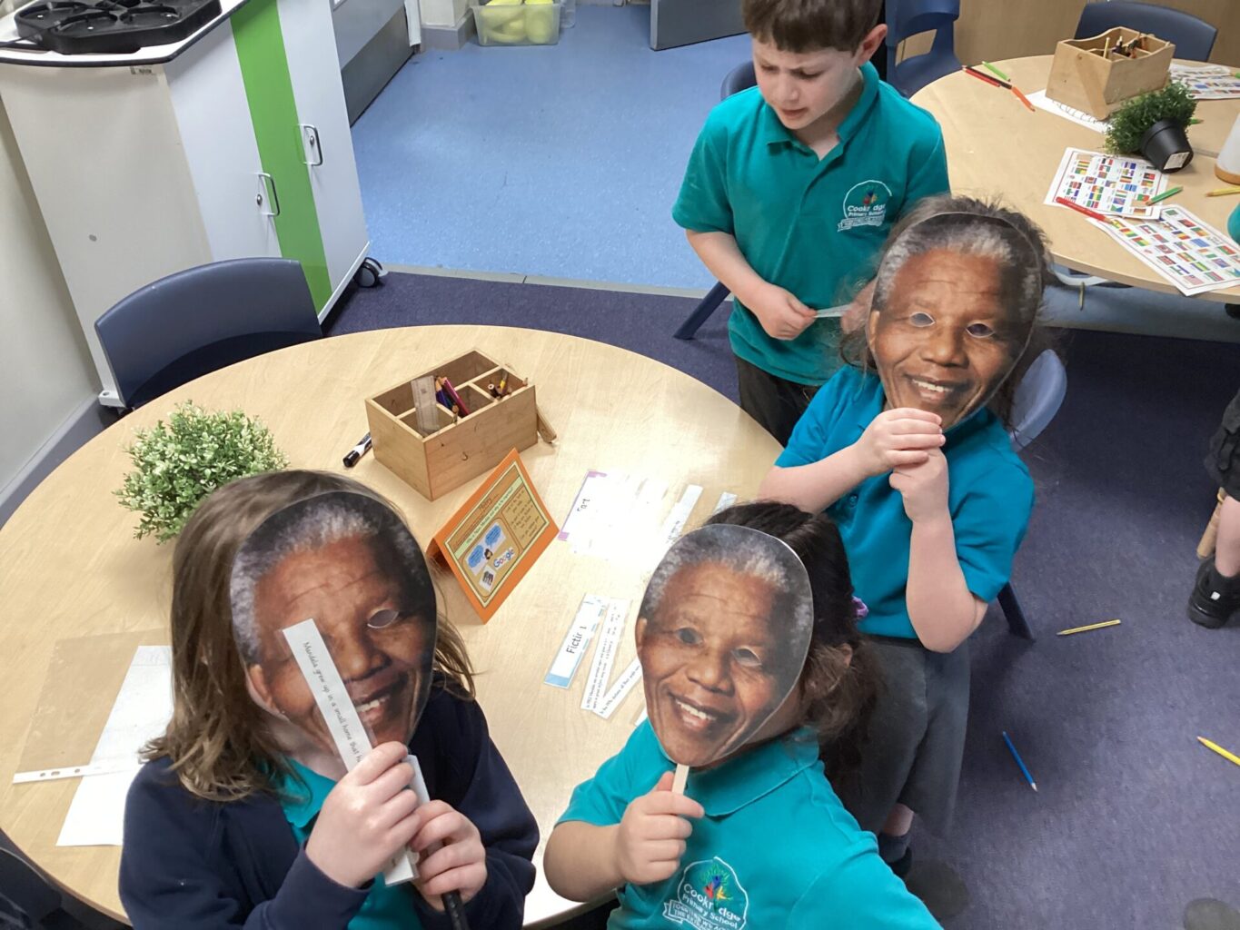 Along with our Africa theme, we have been learning about Nelson Mandela in history. We heard about who he was, what he did, the things that happened to him good and bad and how change came about in South Africa as a result.