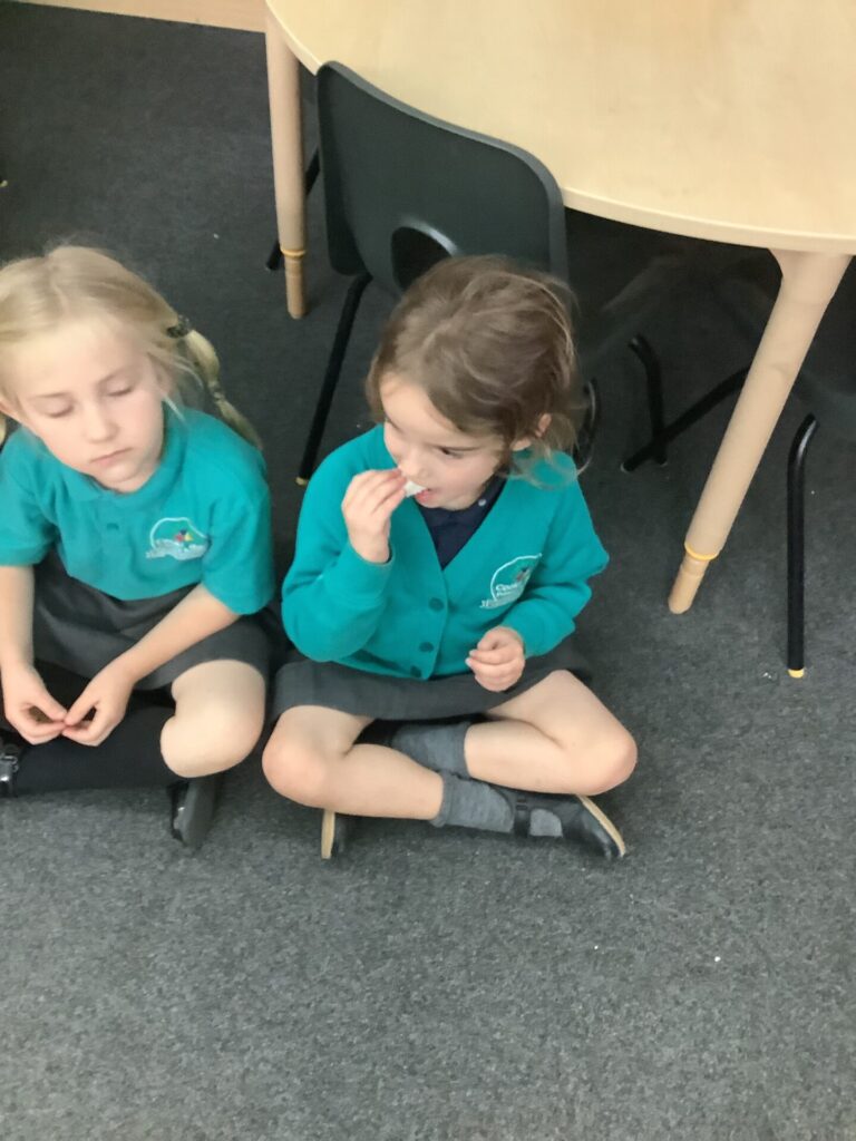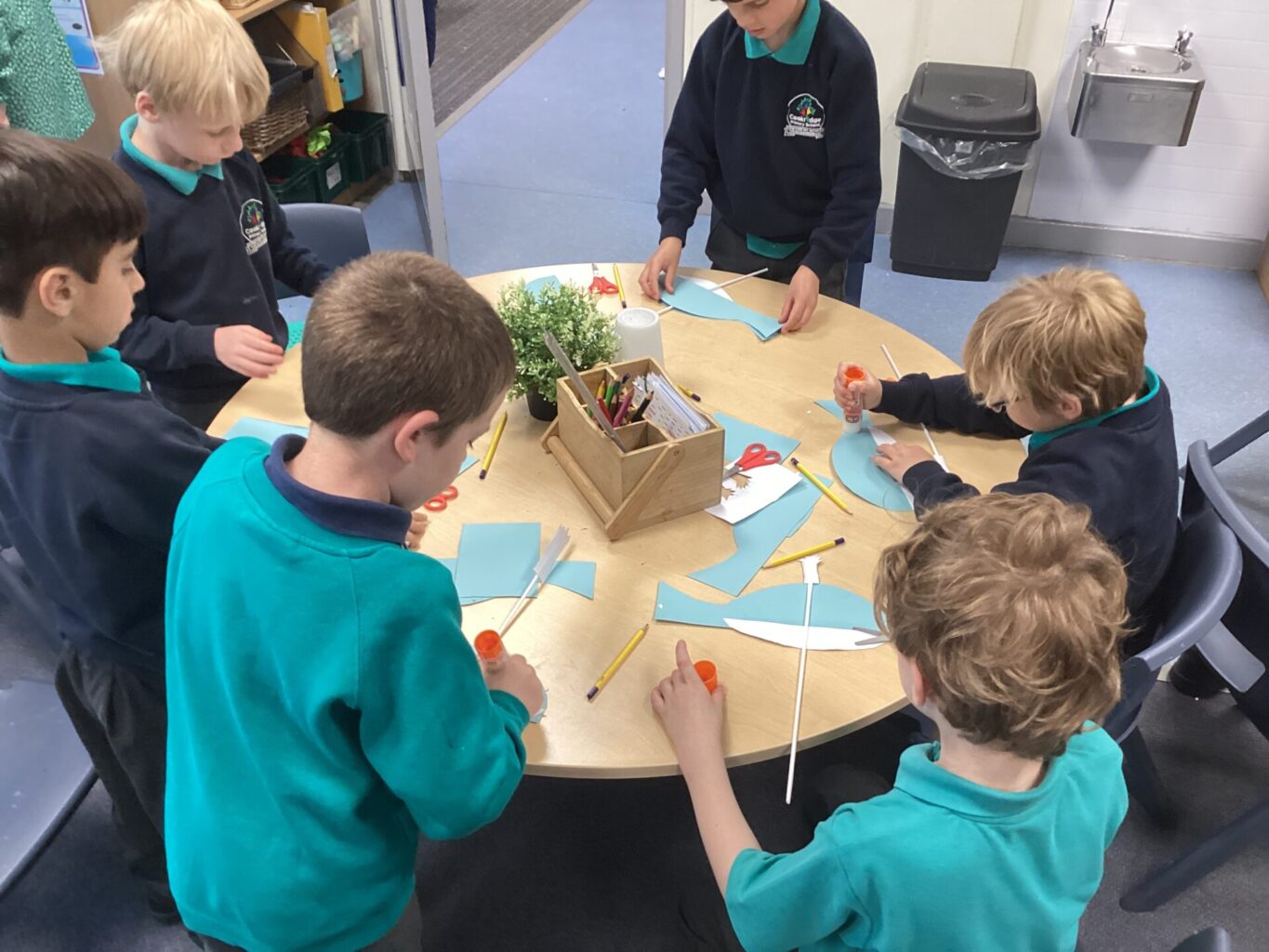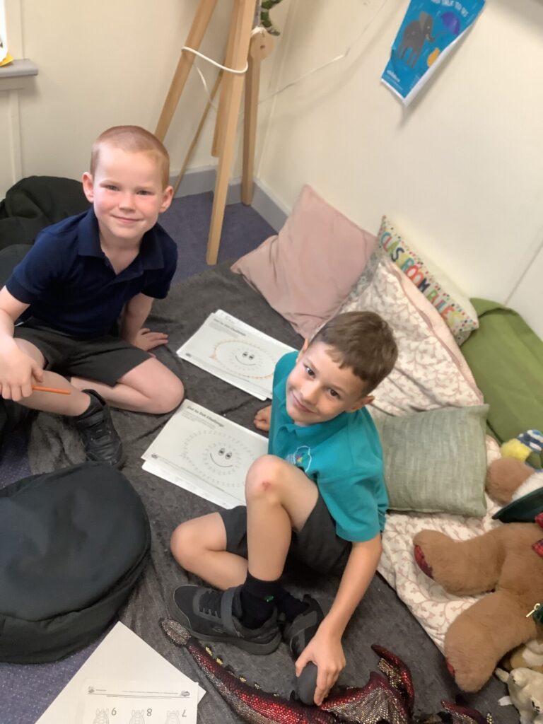 In RE, Year One were learning about what happens in a church. They learned that people sing, read the Bible, have Sunday School and take communion. Year Two were learning about how Christians pray. They found out that they can pray anywhere, at any time. Some people kneel, some put their hands together and close their eyes, some people hold things in their hands to focus.