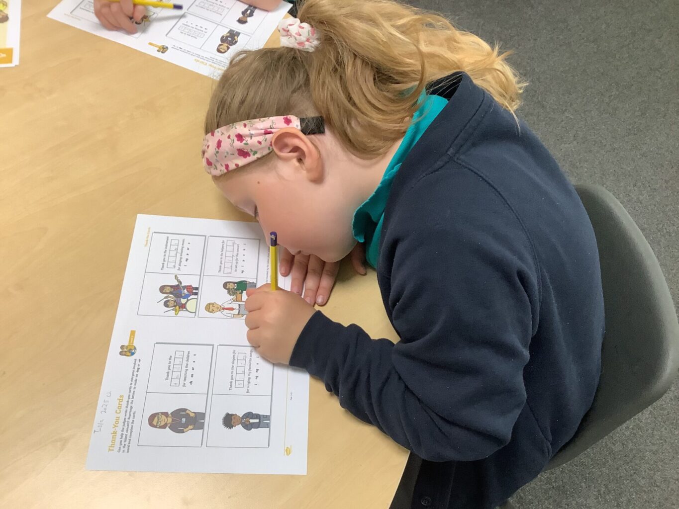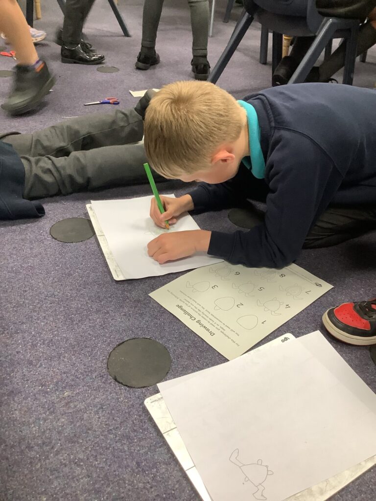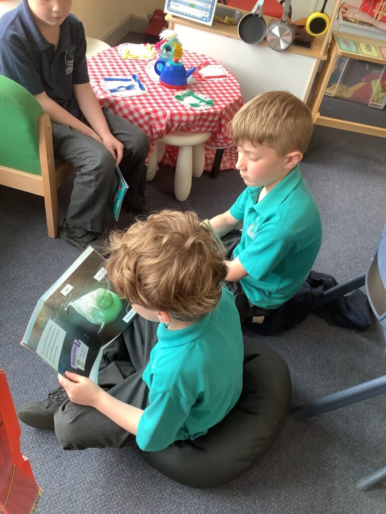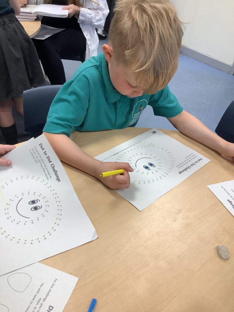 In RE, Year One were learning about what happens in a church. They learned that people sing, read the Bible, have Sunday School and take communion. Year Two were learning about how Christians pray. They found out that they can pray anywhere, at any time. Some people kneel, some put their hands together and close their eyes, some people hold things in their hands to focus.