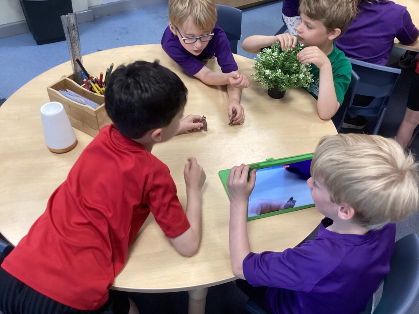 In art, after designing shells last time, the children have been making shells out of soft clay. They played around with a variety of different shapes and forms and thought about ridge patterns that may appear on the outer side.