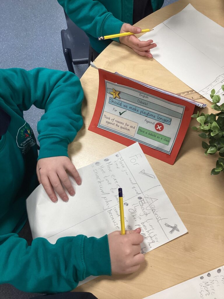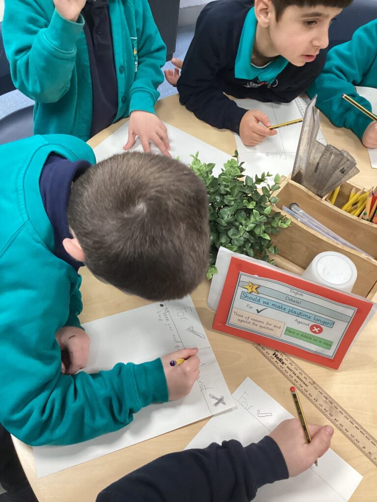 In English, we have been thinking about how to state a balanced argument. We have been thinking about the airport and the idea of an expansion. The children worked together to think of arguments for and against the expansion of the airport, such as extra noise and pollution, and more people being able to go on holiday to more places. They then used all these arguments to write a for and against piece with a conclusion. Finally, at the end of the week, we had an oral debate about the airport, putting the different opinions across and deciding which we thought had the strongest argument.