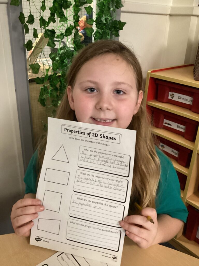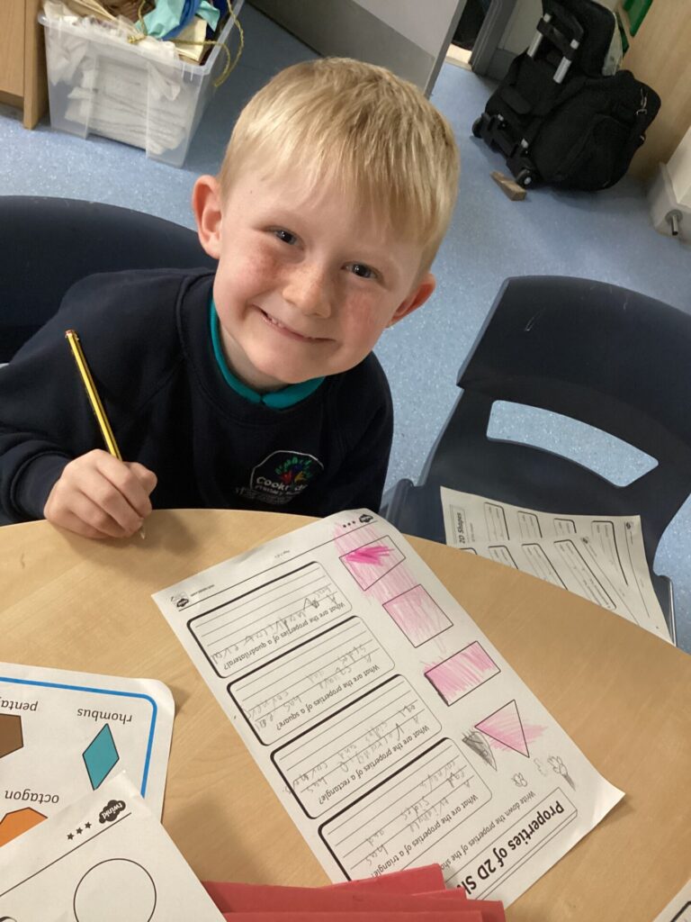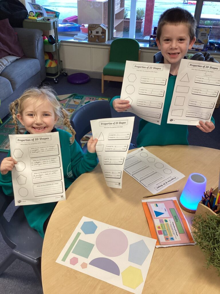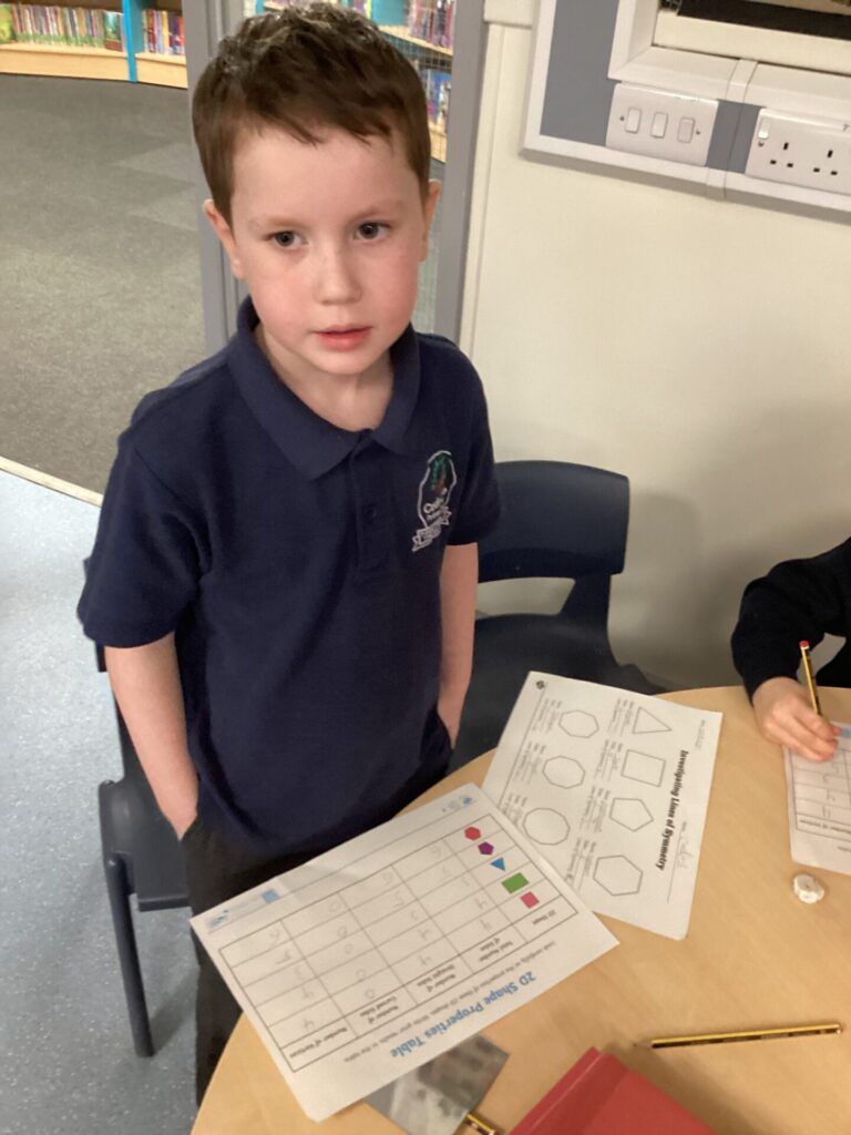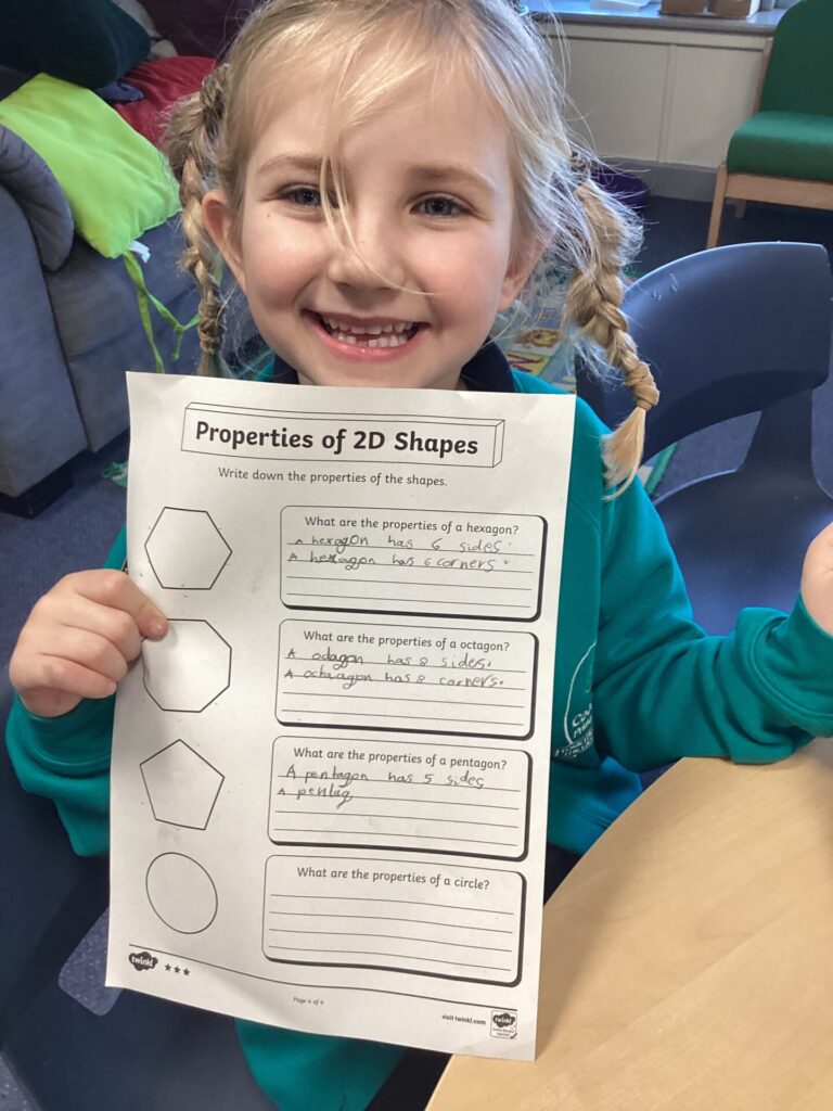 Year One have been ordering numbers this week in maths. They were whizzes at comparing numbers last week and this enabled the to put them into order. They were taking 4 random numbers (not consecutive) and putting them in order. They also began to look at numberlines and where a number would appear on the line when all numbers are not filled in. In Year Two, one group have continued to practise their addition skills, answering word problems using bar models and column addition. The other group have been identifying 2D shapes and have been learning about the different properties of each 2D shape.