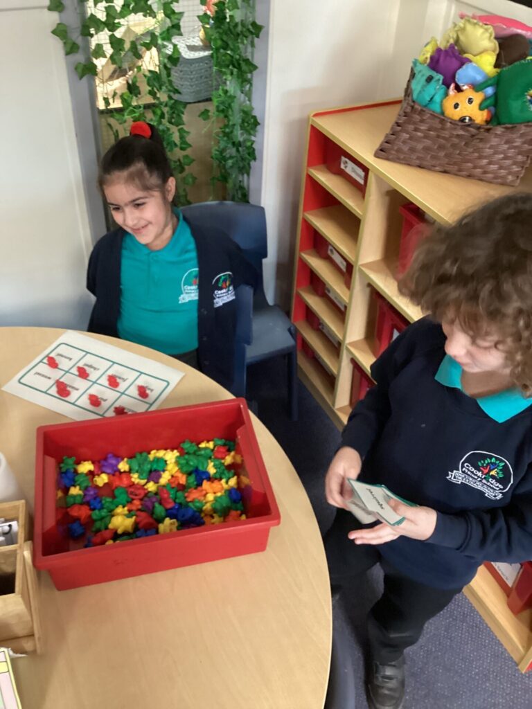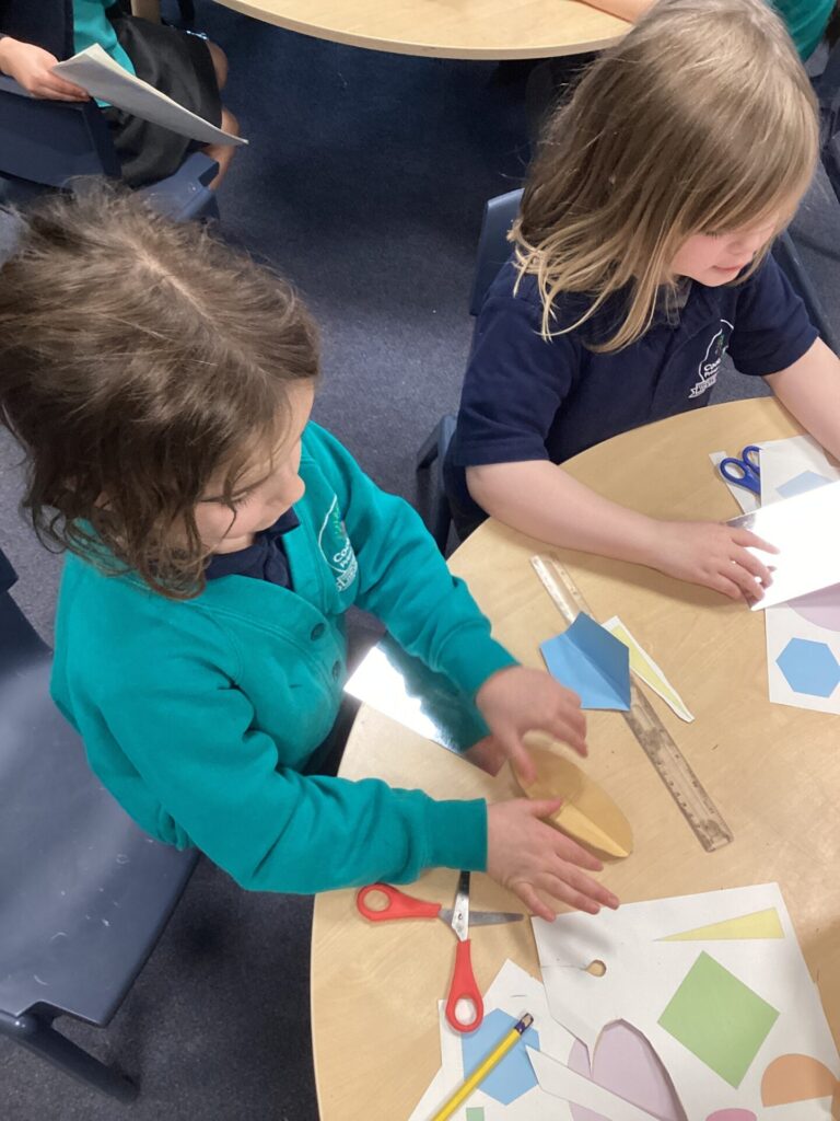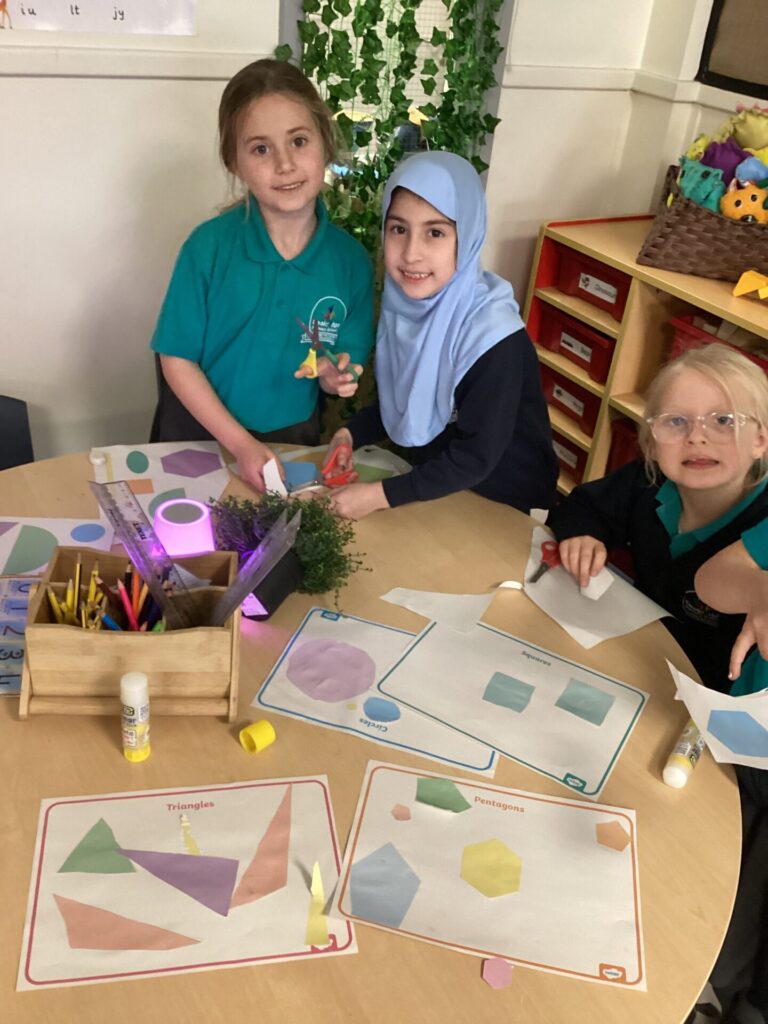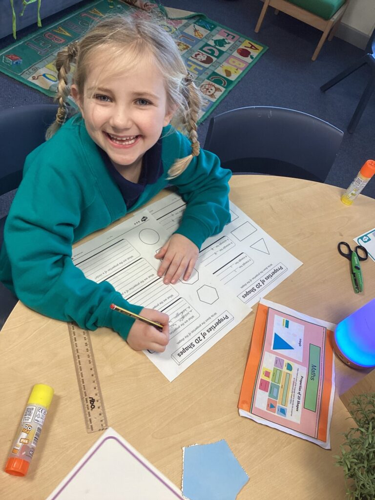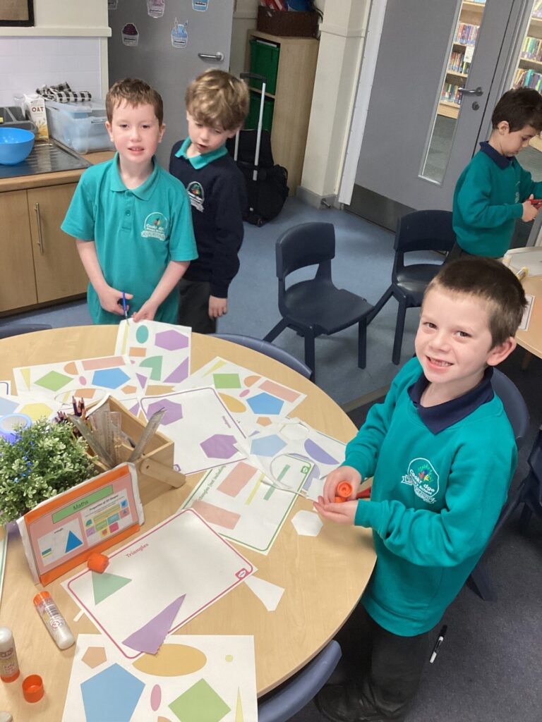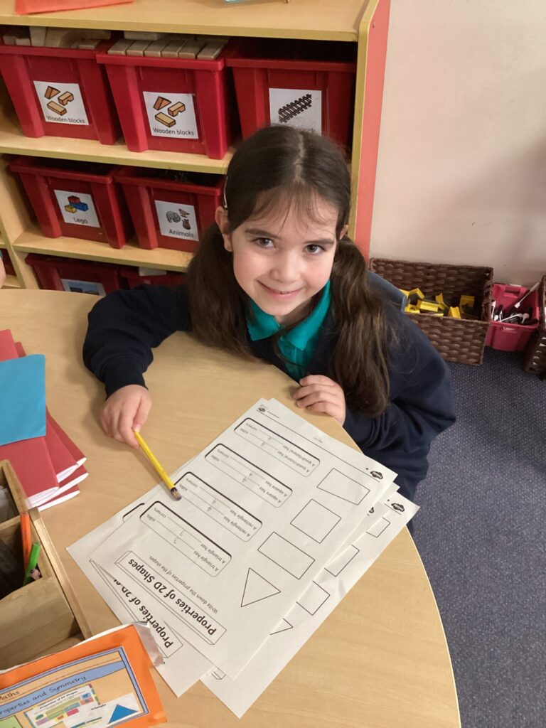 Year One have been ordering numbers this week in maths. They were whizzes at comparing numbers last week and this enabled the to put them into order. They were taking 4 random numbers (not consecutive) and putting them in order. They also began to look at numberlines and where a number would appear on the line when all numbers are not filled in. In Year Two, one group have continued to practise their addition skills, answering word problems using bar models and column addition. The other group have been identifying 2D shapes and have been learning about the different properties of each 2D shape.