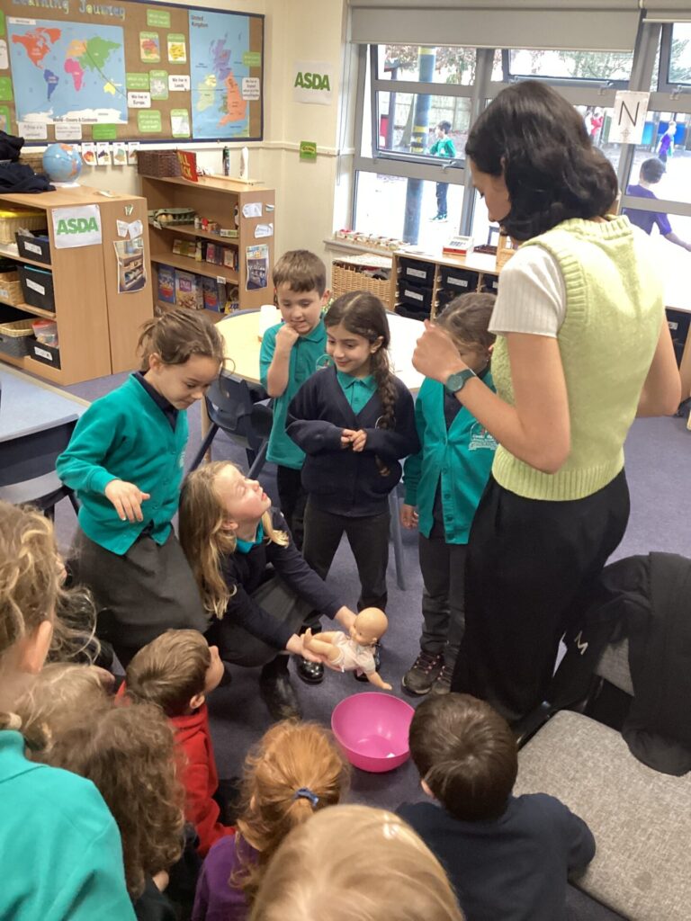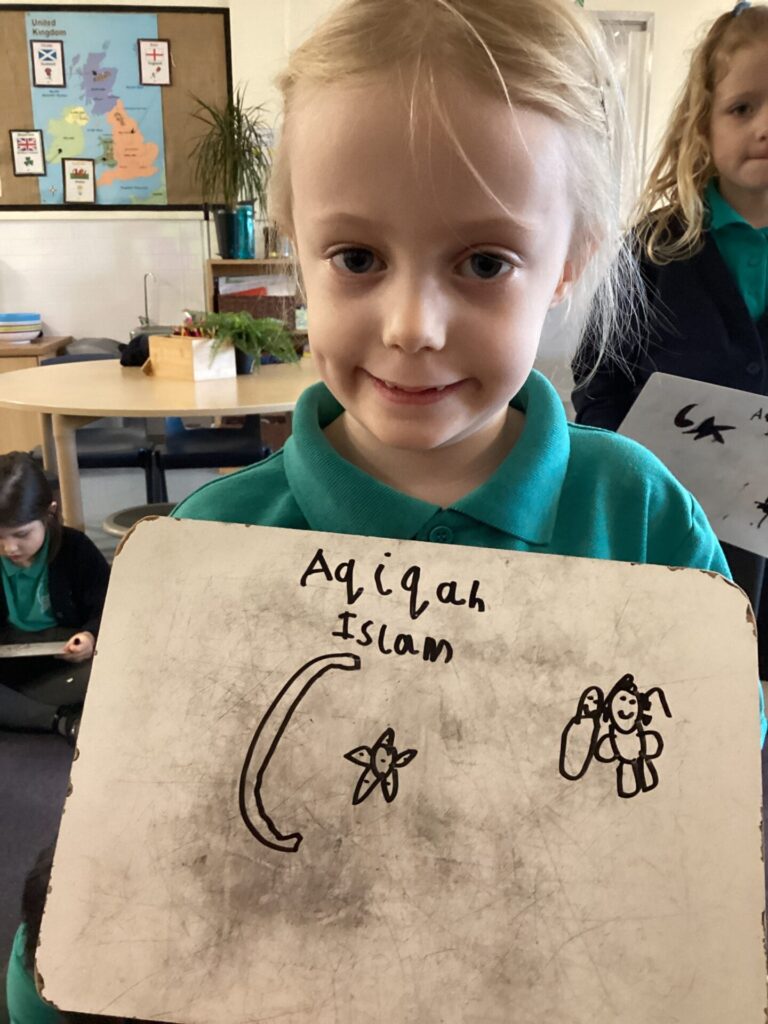 We have continued learning about how babies are welcomed in RE and this week the children learnt about The Aqiqah in the Muslim faith. They learned about the babe being given a sweet taste of fruit juice, The call the prayer being whispered in their ear and how meat or money is given to charity.
