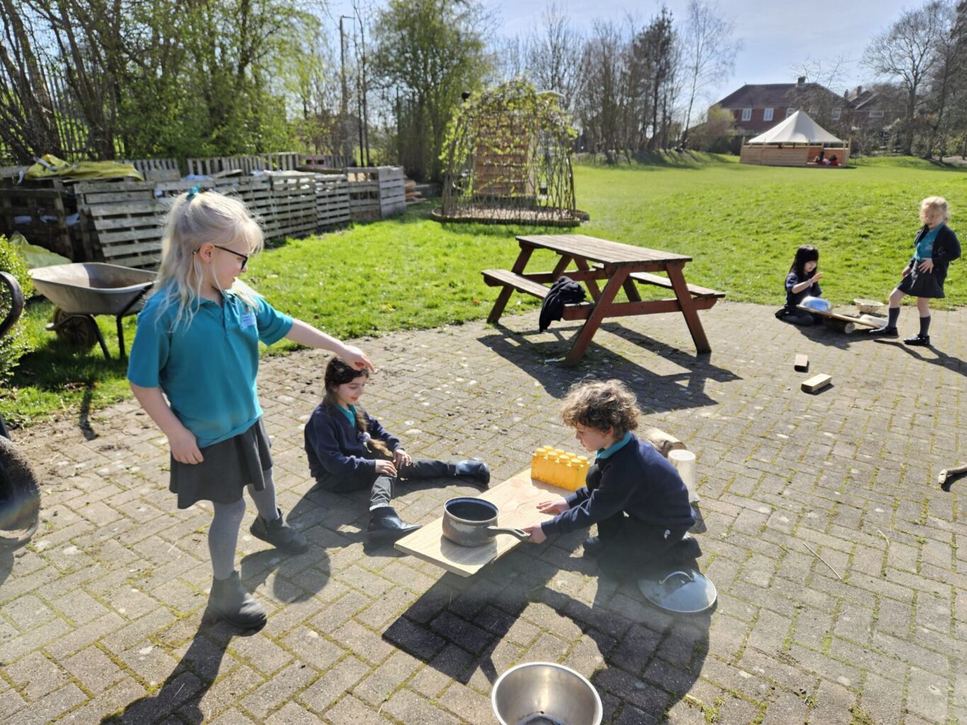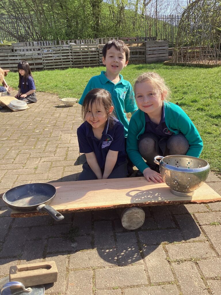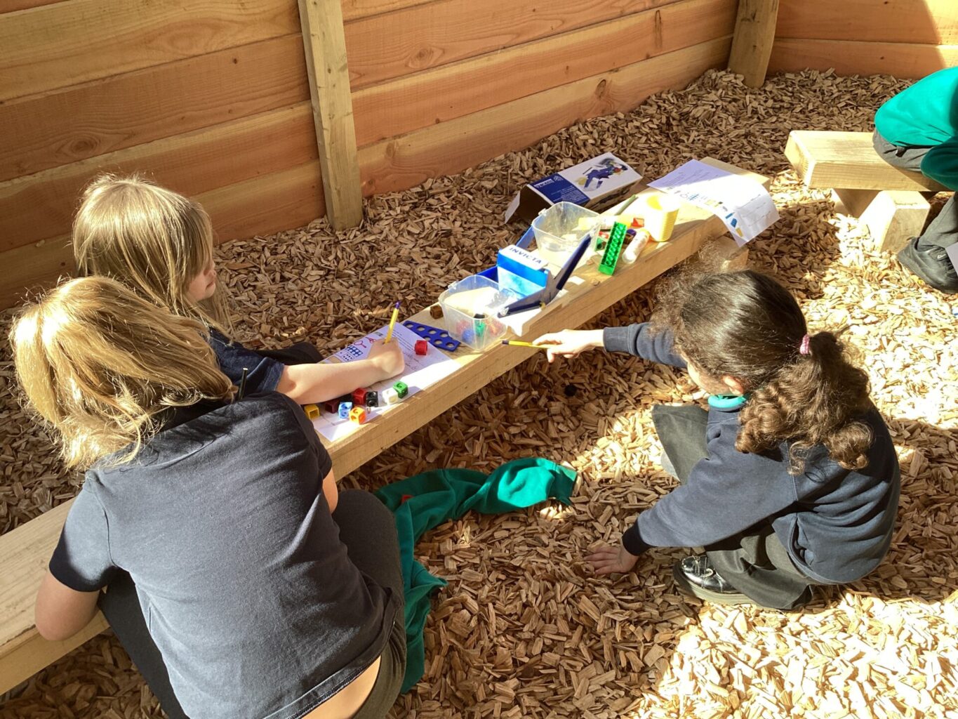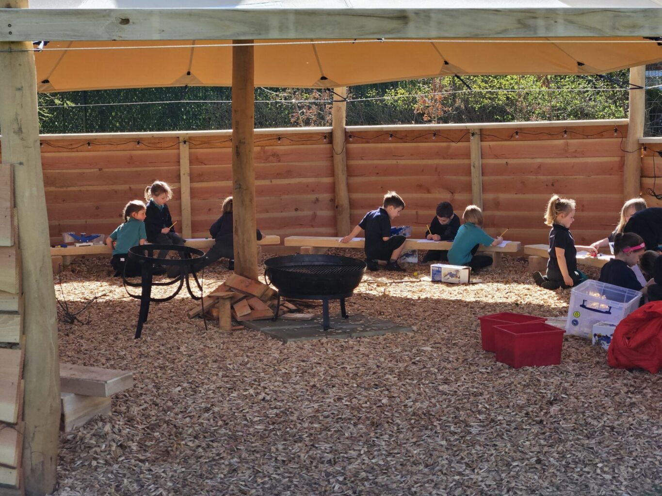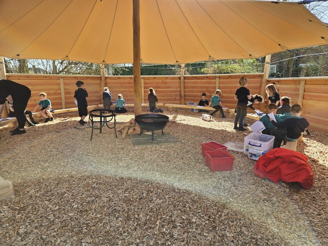 During the Forest schools session, the children were able to go and experience the outdoor classroom for the first time. They have learnt about using the special outdoor composting toilet and throwing in sawdust etc.. They then worked in teams to create dens using the big tarpaulin and ropes.