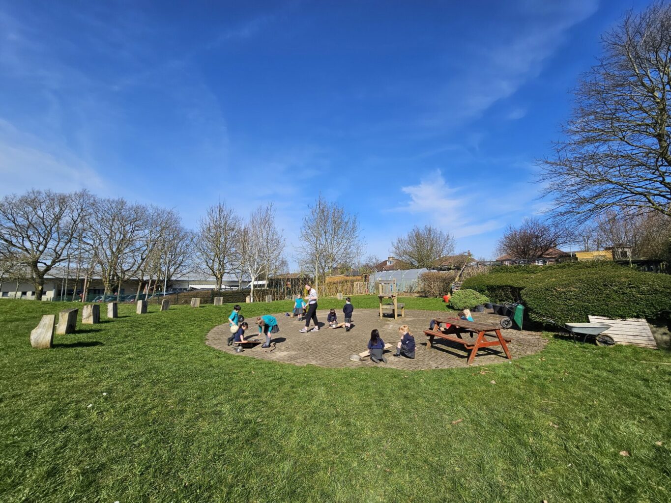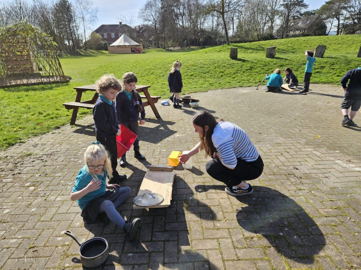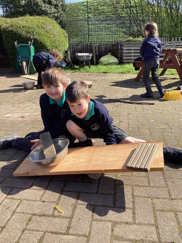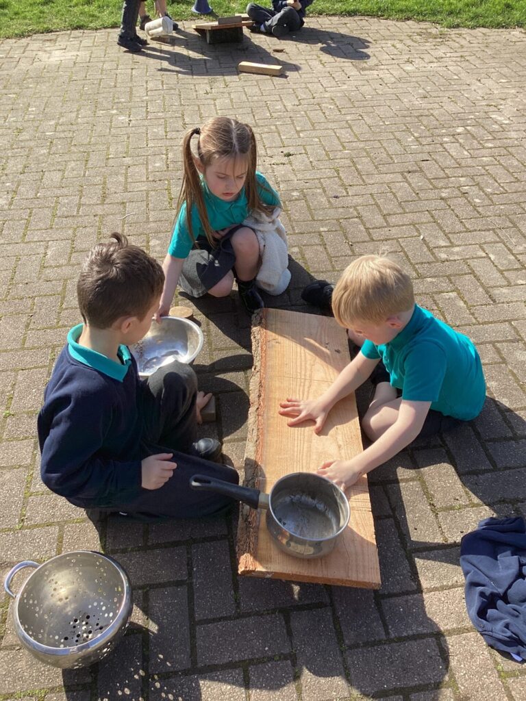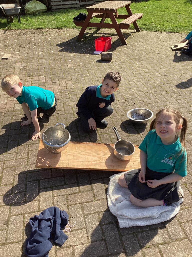 During the Forest schools session, the children were able to go and experience the outdoor classroom for the first time. They have learnt about using the special outdoor composting toilet and throwing in sawdust etc.. They then worked in teams to create dens using the big tarpaulin and ropes.