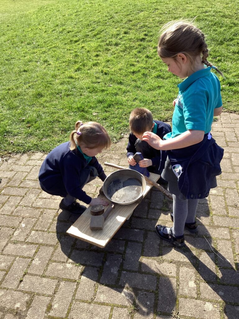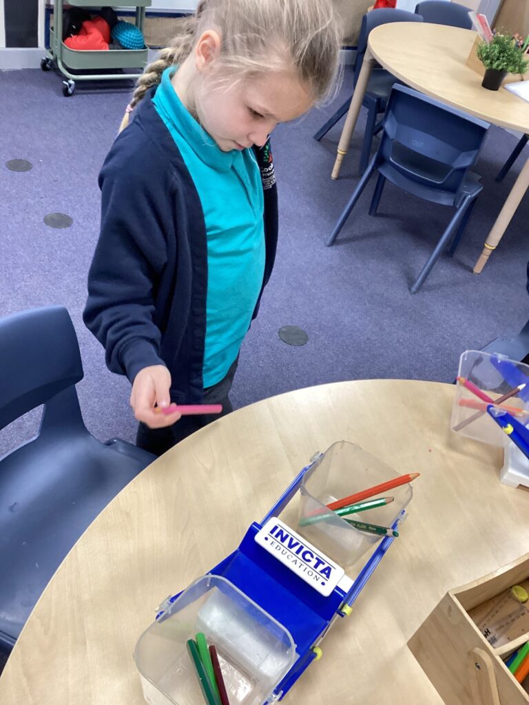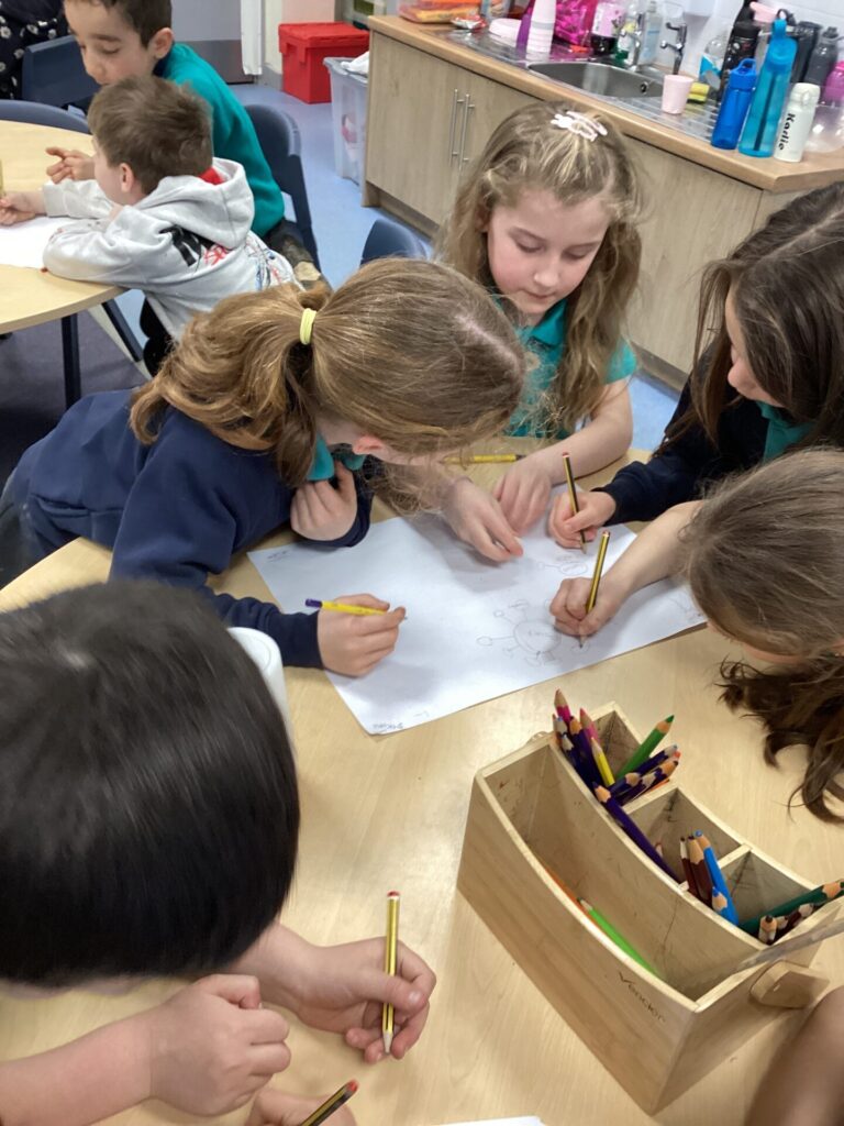 In Art the children have been thinking about which colours are primary colours and which are secondary. They then created colour wheels, placing primary colours on the top. When spinning them, it mixed the colours together, hopefully to create the secondary colours on their paper.