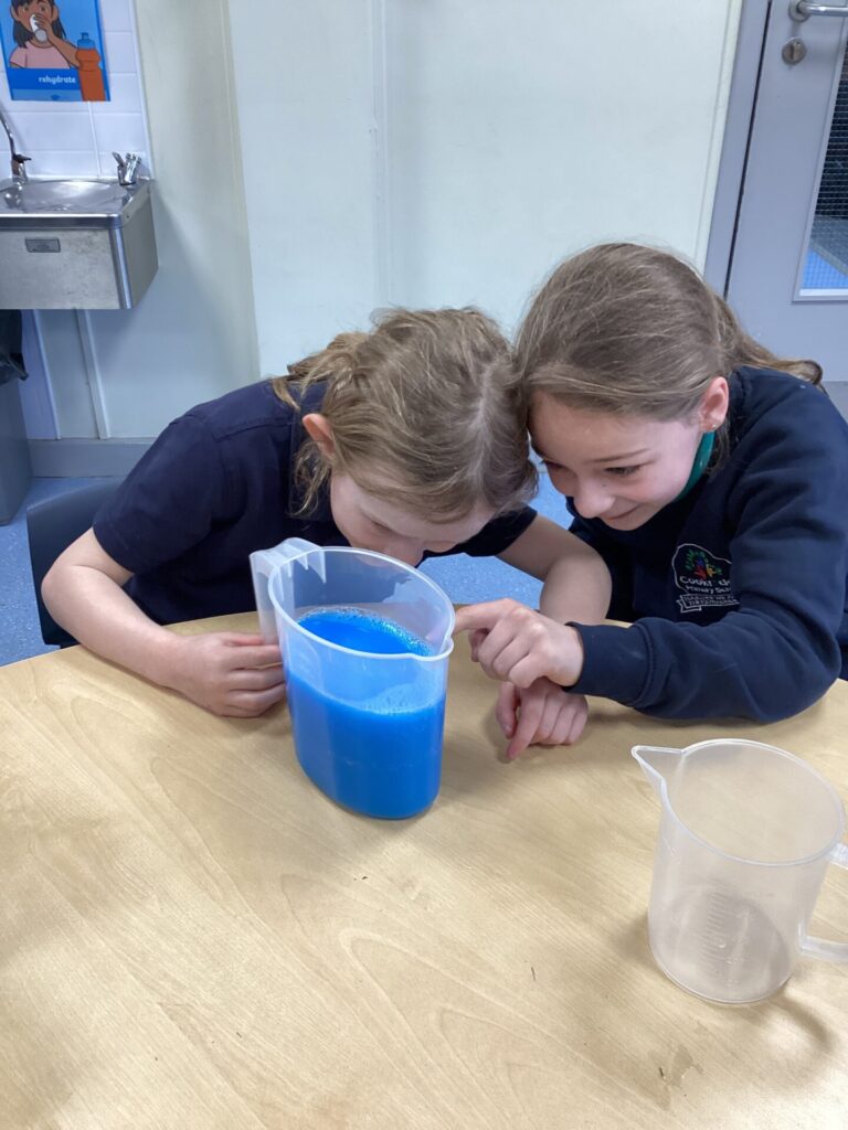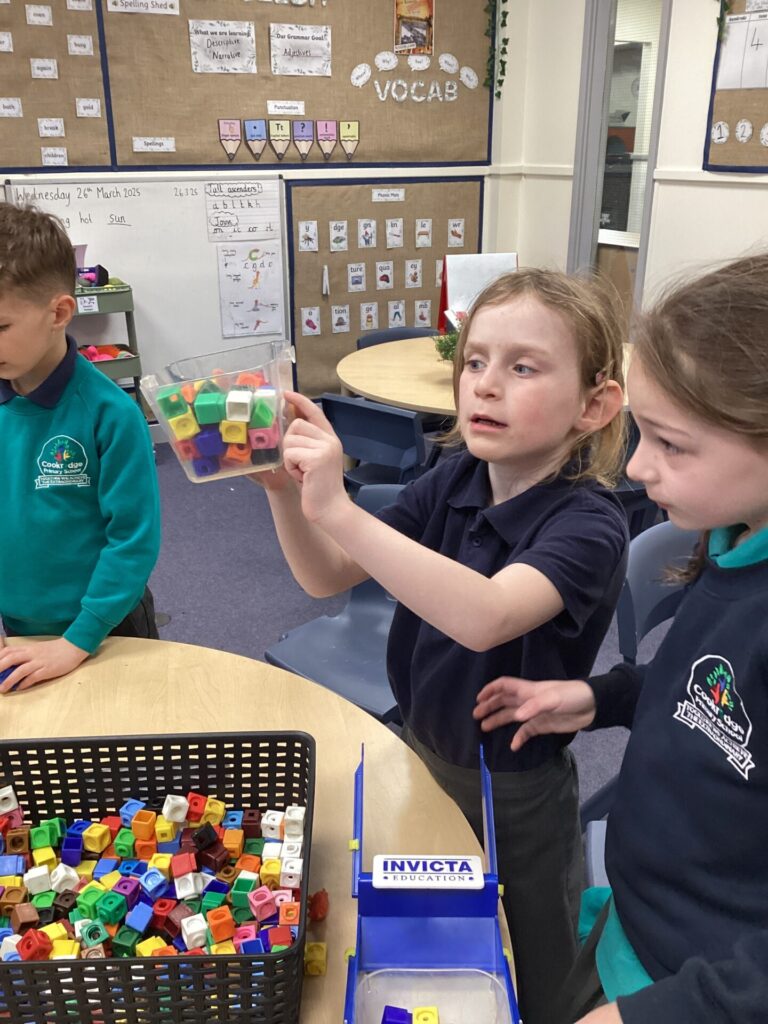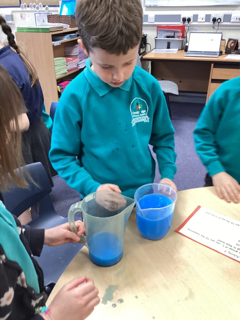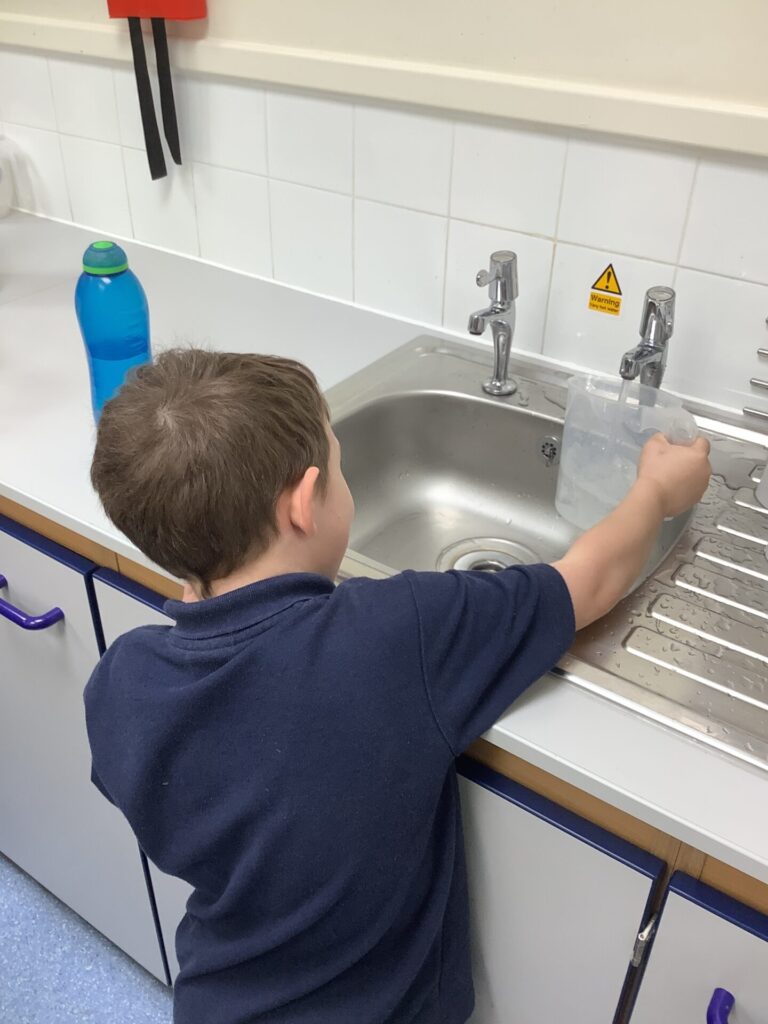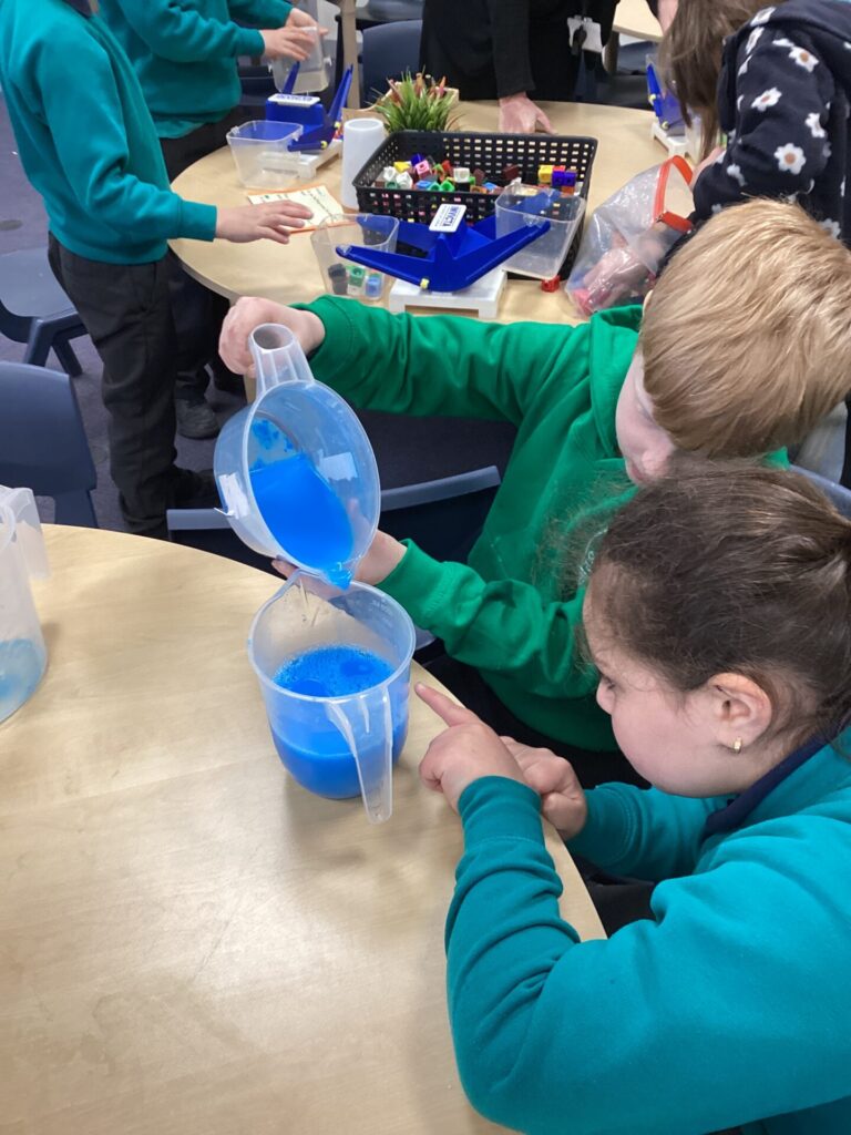 In Maths, Year One have been learning about capacity and volume. They have used basic language of full, half full, empty and nearly full/ nearly empty. They have compared the capacity of different containers and thought about which ones could hold more. They have also worked out how many cups would fit into another. In Year Two, one group have finished their multiplication work and have begun looking at measurements. They have looked at measuring in length, weights and capacity. The other group have continued with division, focusing on inverse relationship with multiplication and the reasoning about it.