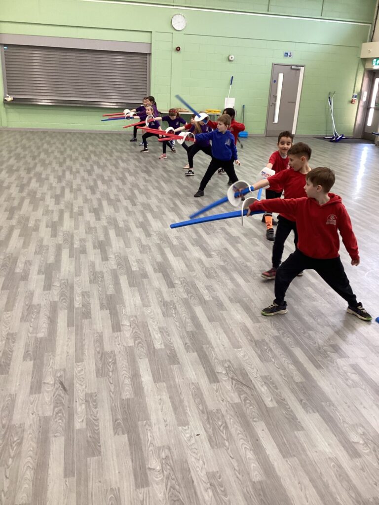 We have once again ended the week with our alternative PE. The final group from Class 3 got to experience fencing while the rest of class did Go Noodle. Class 2 were doing yoga and Class 1 were doing classroom Foosball.