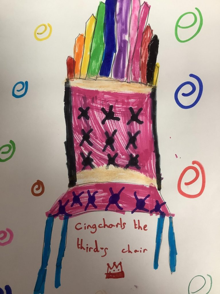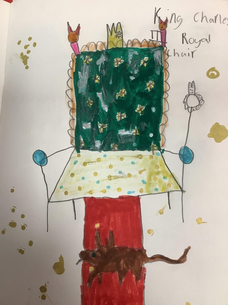 We have been getting ready for the King’s coronation in both Art and Music this week. In Art the children have been designing a throne for King Charles or Queen Camilla, thinking about how to make them special and unique.