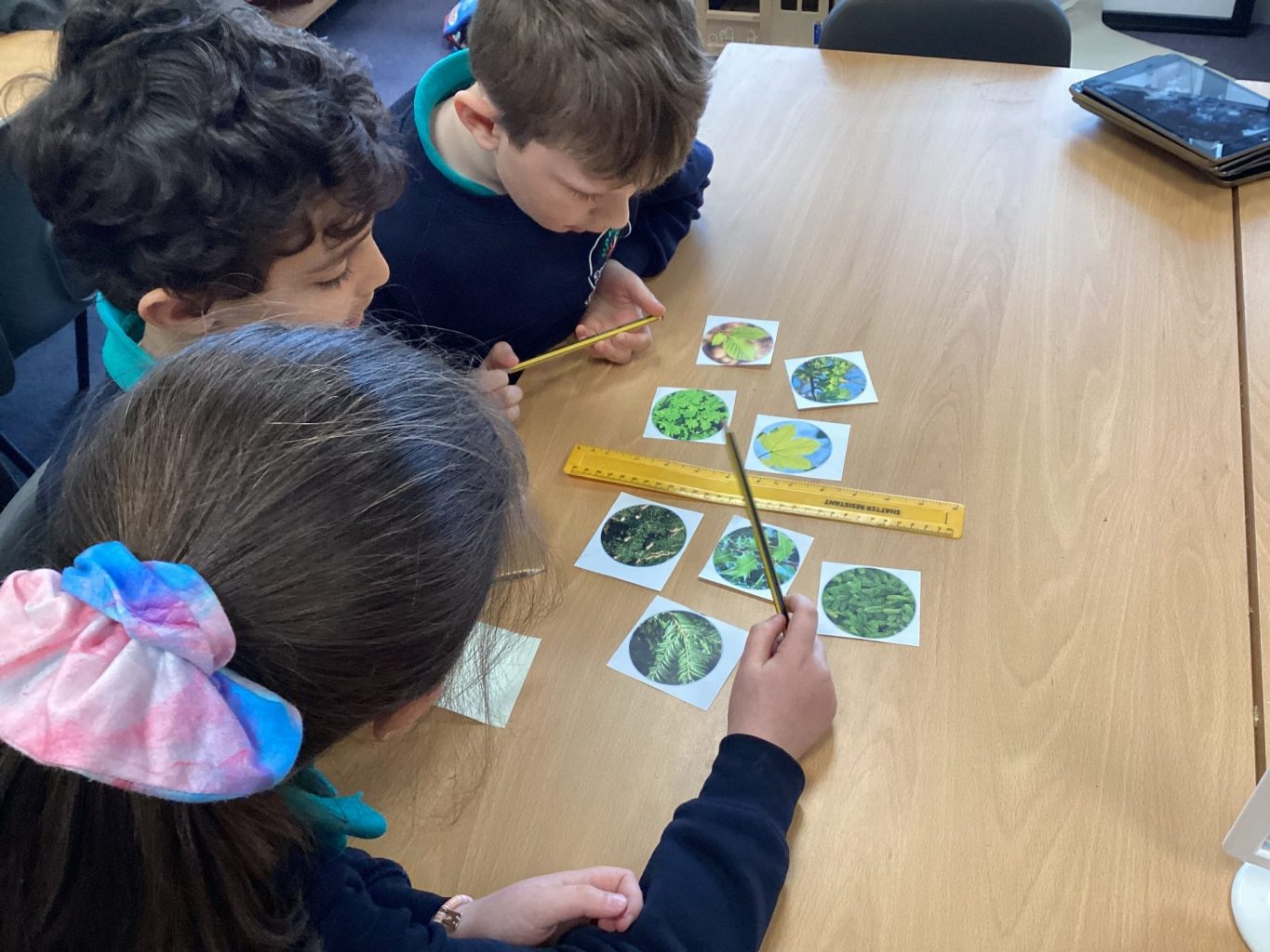 We have continued with our gardeners world topic in Science. This week we were looking at trees. The children were learning the terms deciduous and evergreen and the difference between these types of trees. Then the children worked in groups to categorise different leaves from deciduous and evergreen trees. We noticed the difference in colours, size, shape and texture. We then went out on a hunt around the school ground spotting which trees are evergreen and which are deciduous. They were also able to identify things like elder and holly from the pictures.
