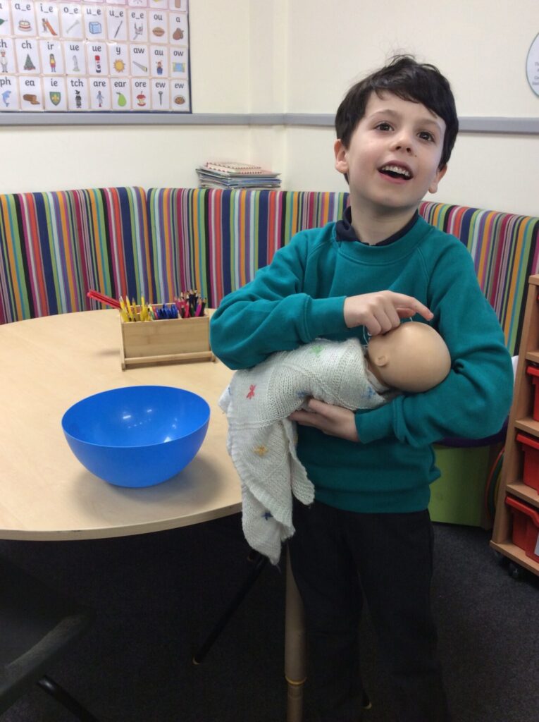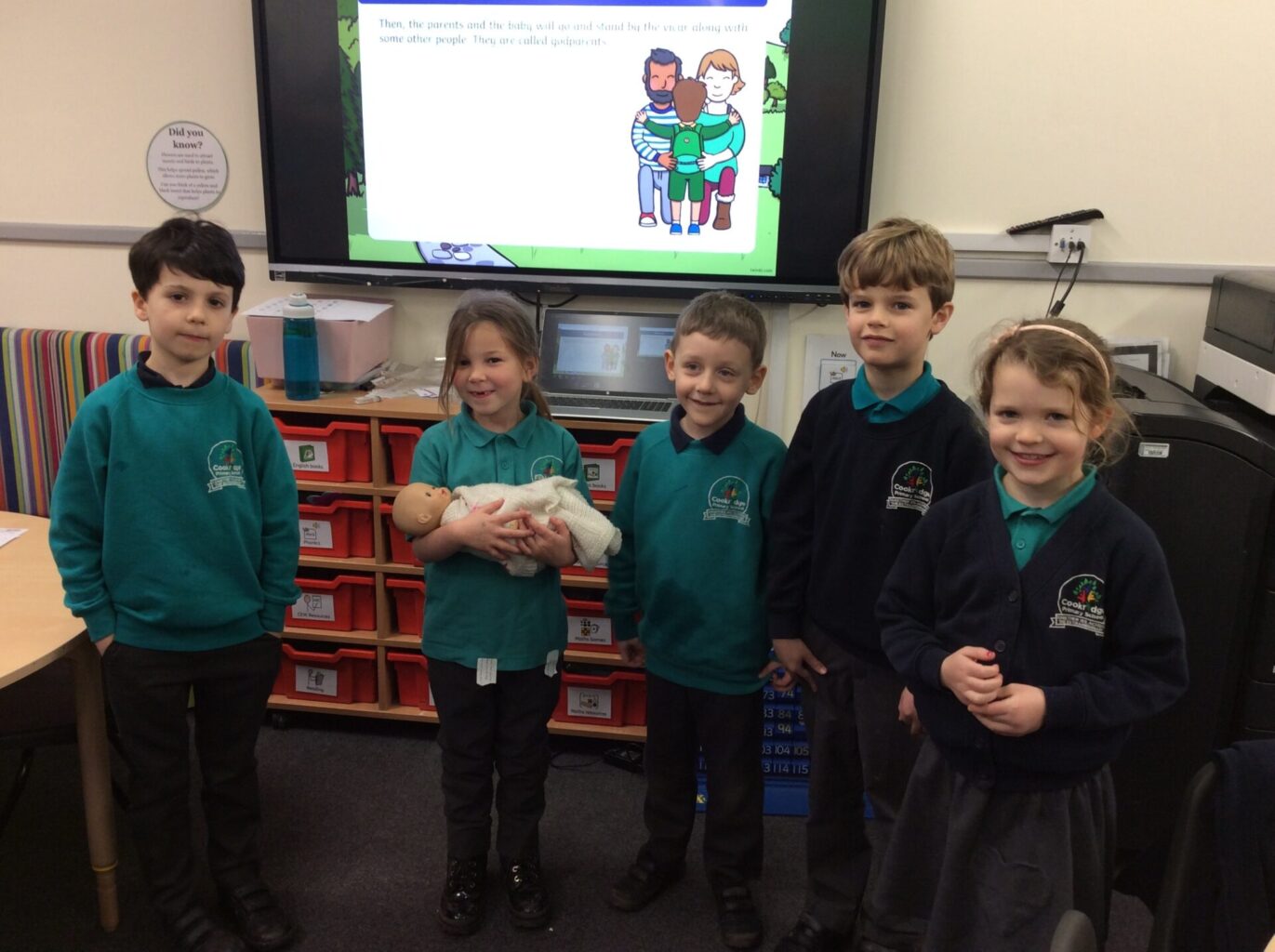 In RE, Year one were learning about Christian festivals. They have learned about Harvest, Advent, Christmas, Lent and Easter. They thought about how each of these festivals are celebrated and why. Year Two continued learning about how we welcome babies. This week, they looked at how babies are welcomed in the Christian faith. They learnt about Christenings, how the baby is taken to church has water/ oil put on their head and made into the sign of the cross.