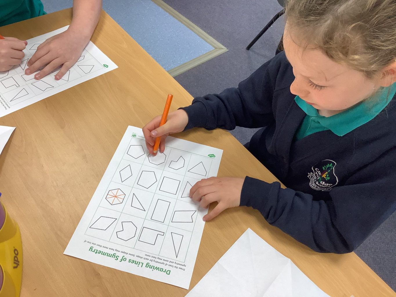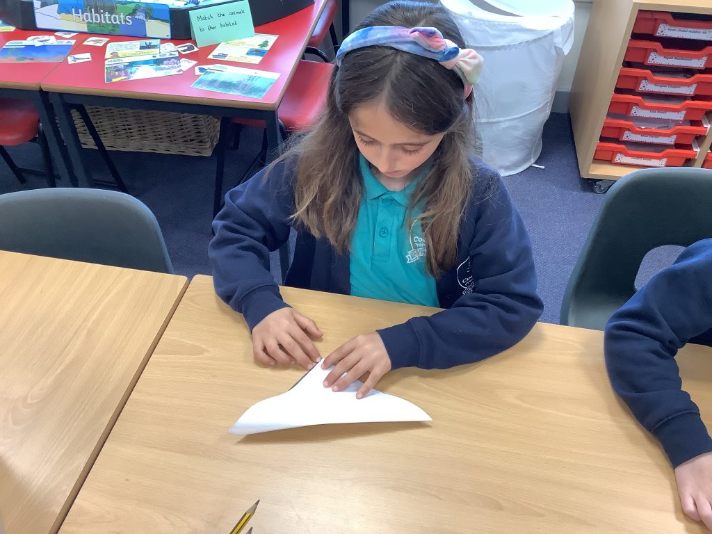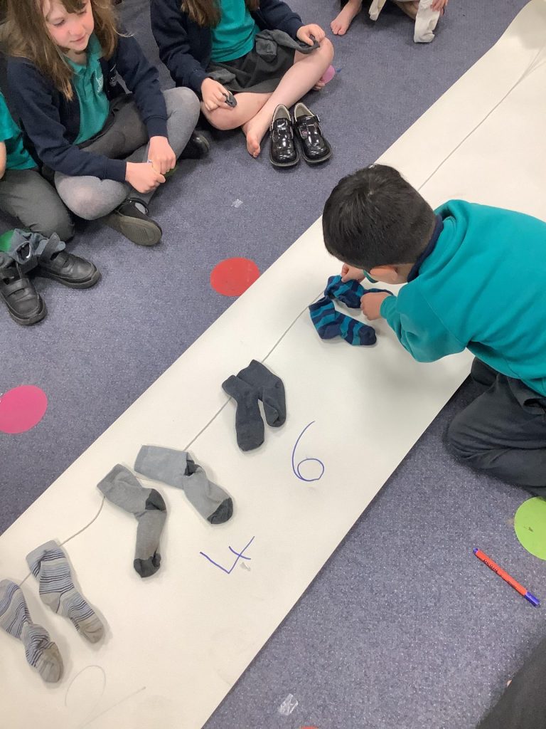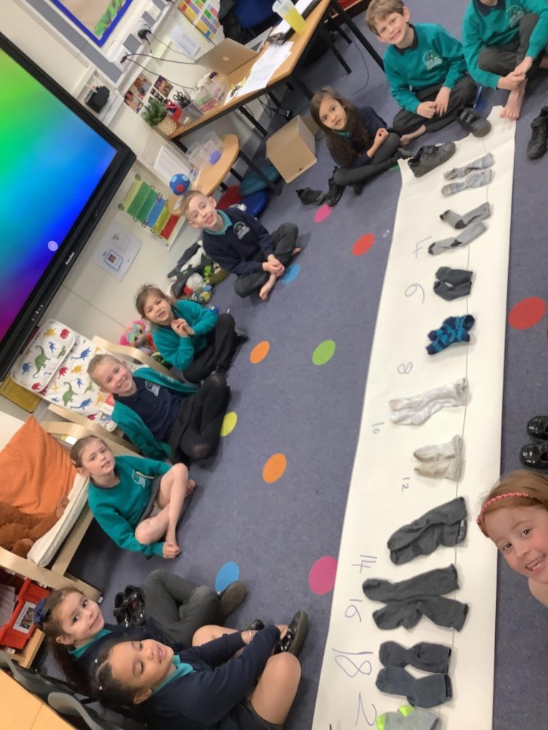 In Year One Maths this week, they have been learning to count in 2’s, 5’s and 10’s. They have done this is a variety of fun ways, including taking their socks off and adding them to a washing line in two’s. Please practise with your child at home, counting in 2’s, 5’s and 10’s, as this will benefit them as they begin to learn their times tables. In year two, one group had a whistle stop tour through identifying lines of symmetry on shapes and then have been looking at telling the time to the nearest five minutes. The other group have been identifying and colouring fractions of shapes.