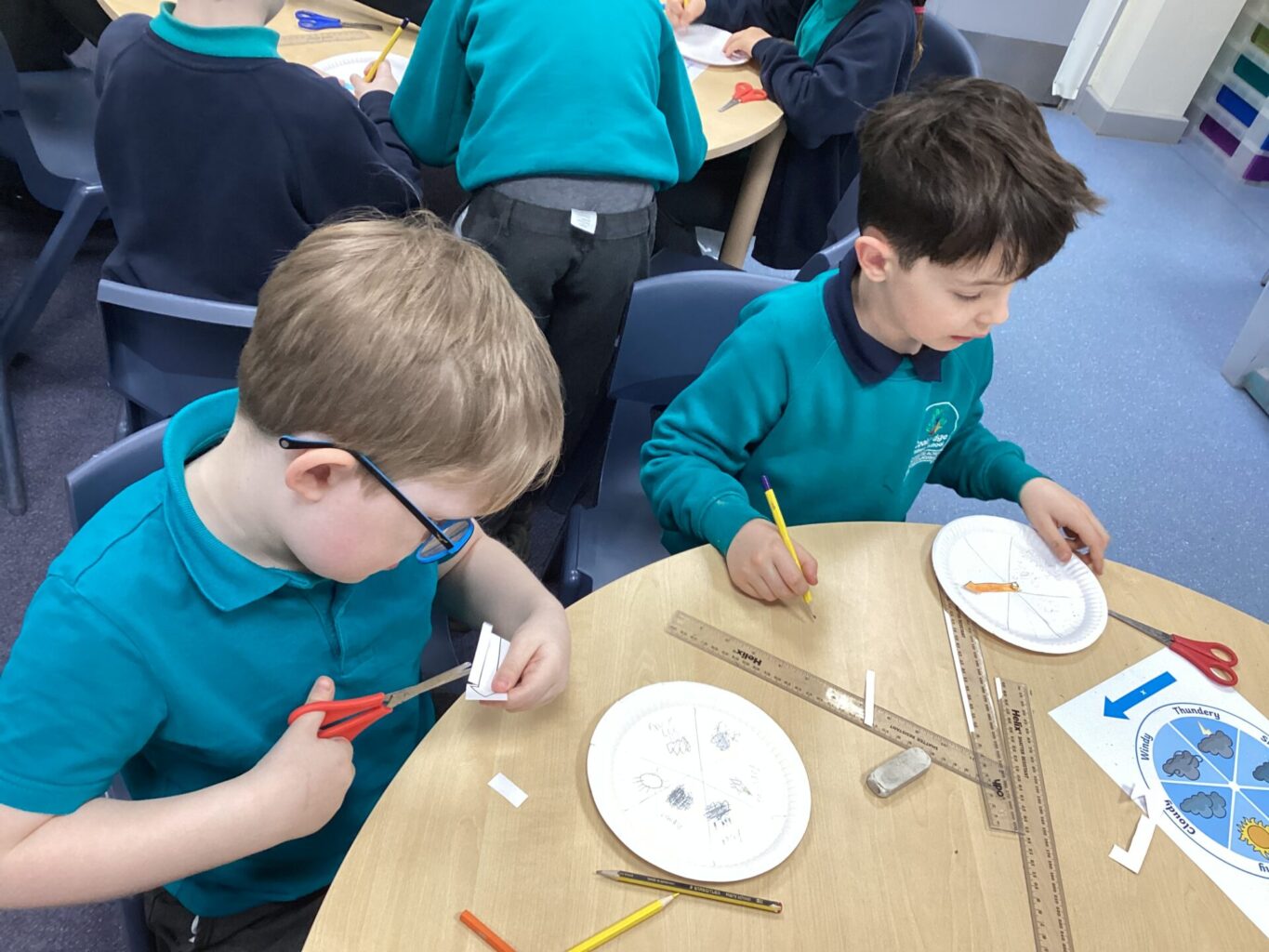 We have continued to look at seasonal changes and what happens with the weather during the different seasons. We watched a video about climate change and how the Earth is experiencing warmer and more changeable weather. We then created our own weather dials to show what the weather is doing.