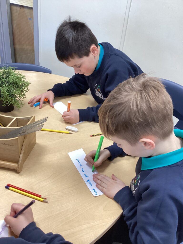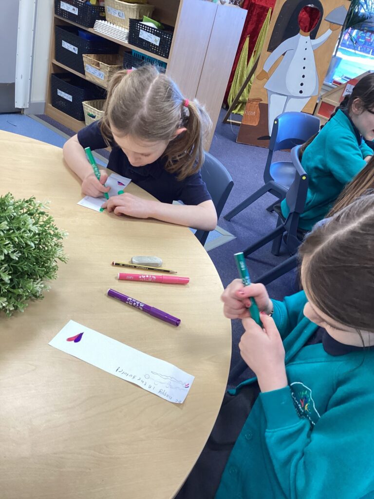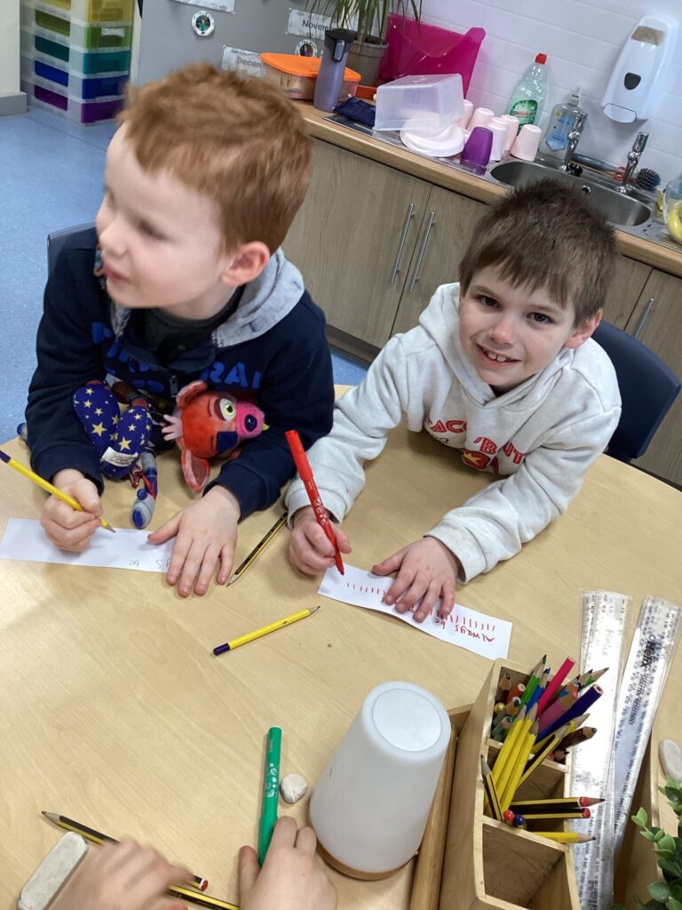 In RE, Year one were recapping the story of Noah/ Nur, recalling the story and acting it out with the ark and colouring pictures. They were also given an animal each and had to act as the animal, to find their partner (another animal of the same kind) to go onto the ark. Year Two began to learn about how in the Bible there are stories about Jesus performing miracles. First they heard about him turning water into wine and how he calmed a storm when he was out on a lake in a boat with his disciples.