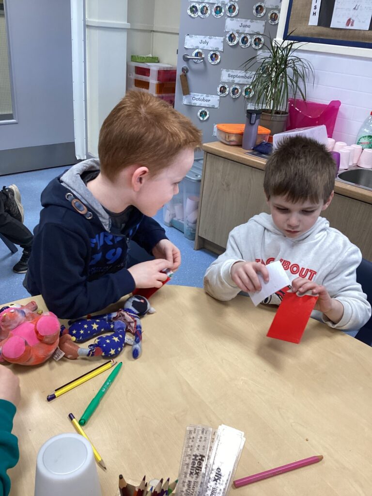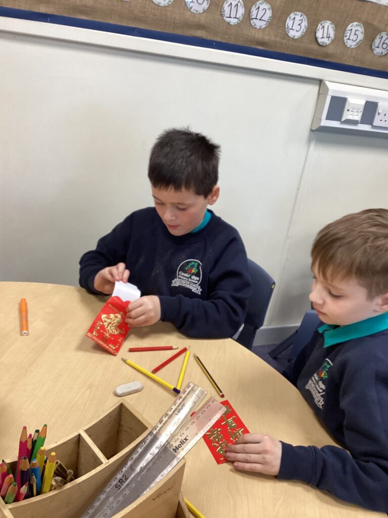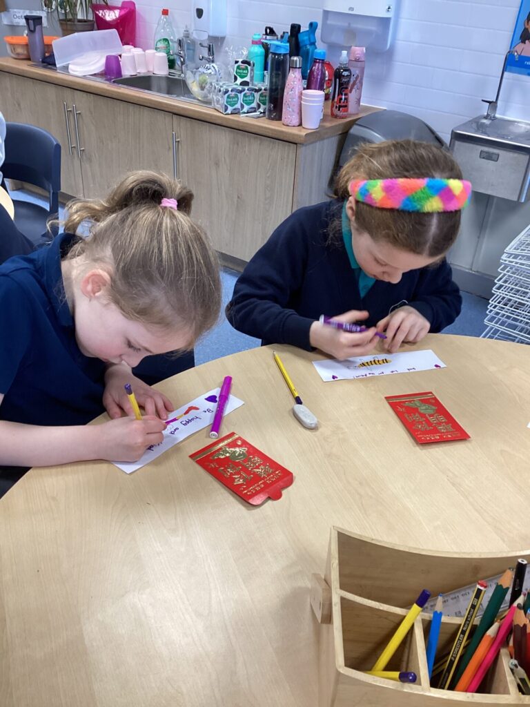 On Friday we spent the day focusing on Chinese New Year. We have been looking at the colour wheel and the prominent colours used to celebrate Chinese New Year and why. They then made their own dragon mask. We watched a brilliant video all about how families celebrate and the foods they eat etc.. We enjoyed the celebration in the hall trying other foods and seeing all the different crafts that have been made across school.