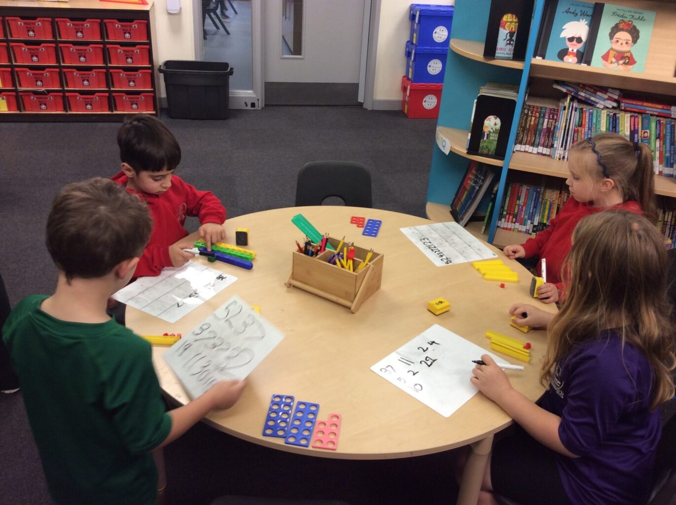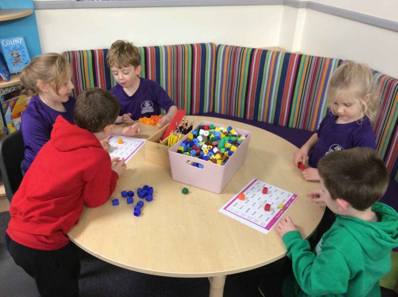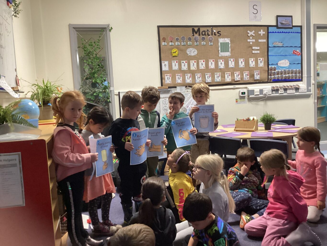 In Maths, Year One have been practising the skill of counting backwards from one hundred. They have been completing hundred squares, numberlines and recording numbers counting back from a given number. Year Two have begun some work on addition this week, focusing mainly on a variety of pictoral representations.