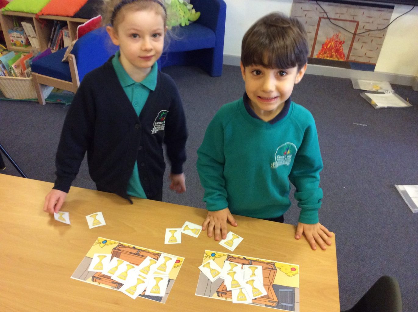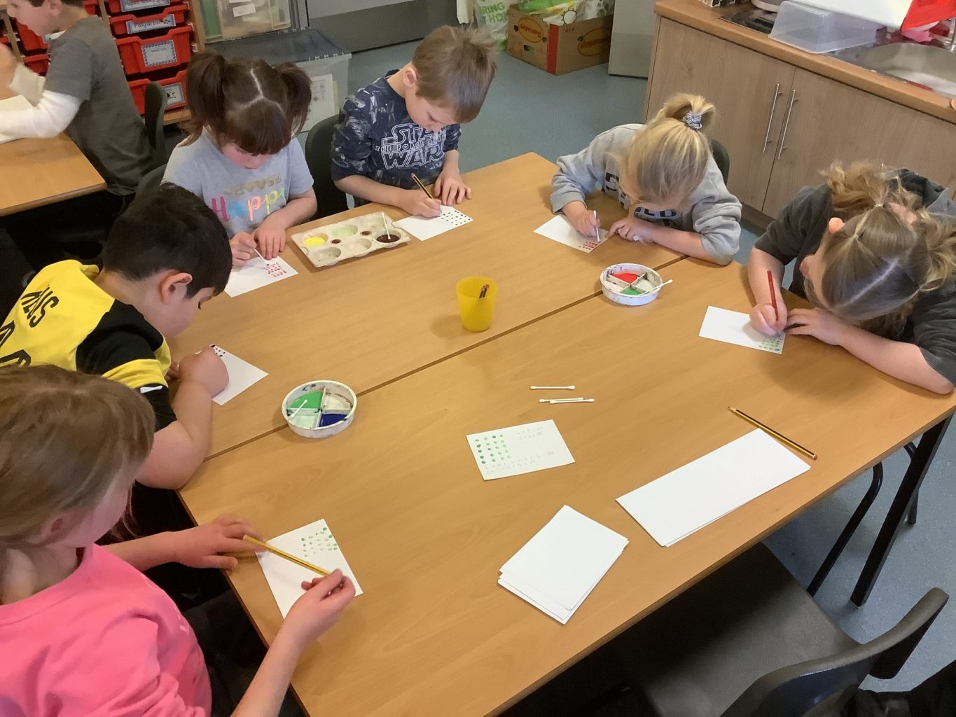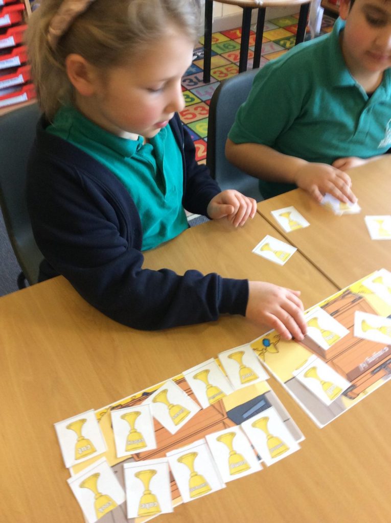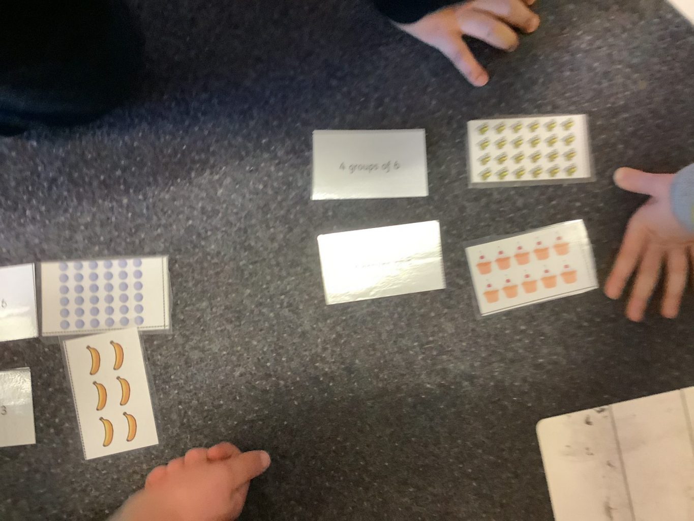 In year 1 this week, they have continued practising their subtraction skills. They have been looking at the difference between two numbers and counting back using a numberline.In Year 2, one group have been looking at groups of and introducing the multiplication sign. They have been drawing and matching arrays, writing the matching multiplication sentence and repeated addition.