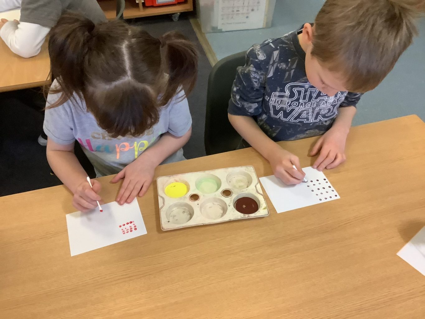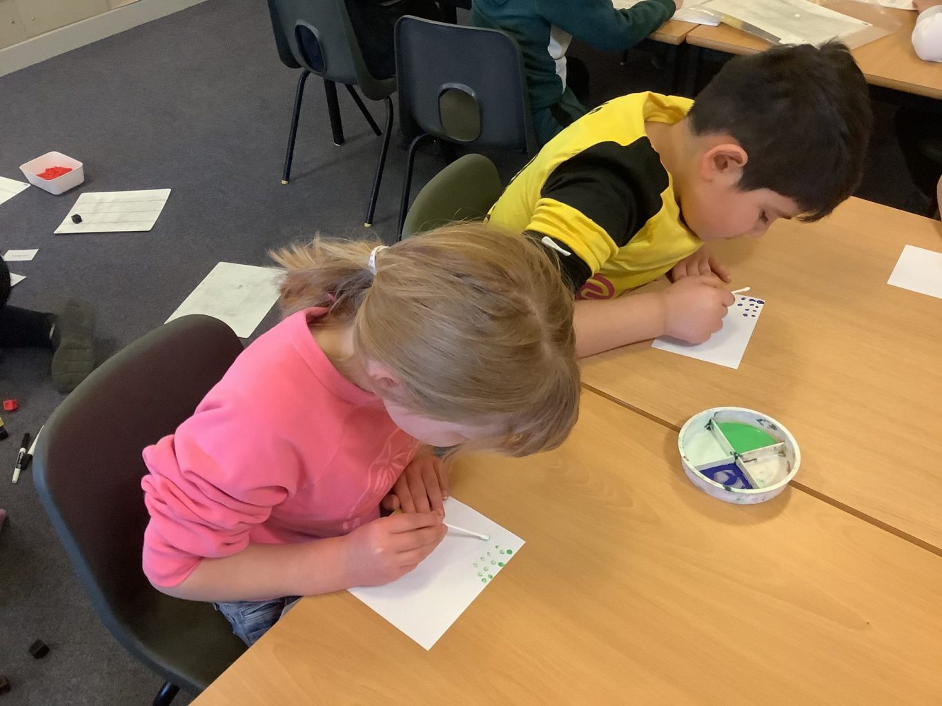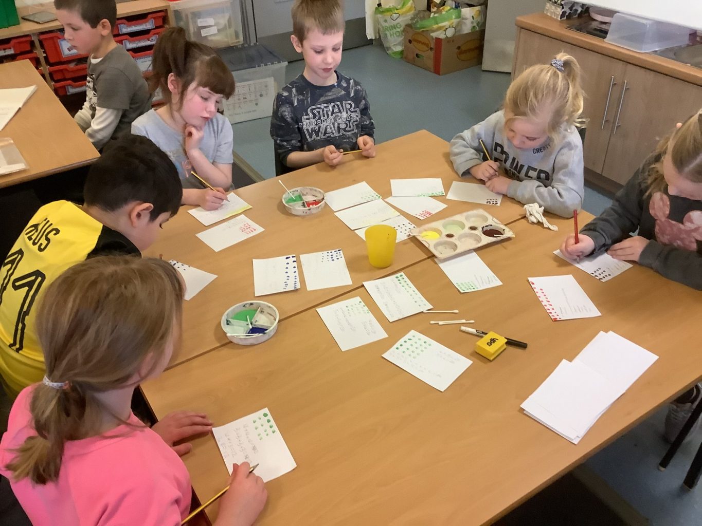 In year 1 this week, they have continued practising their subtraction skills. They have been looking at the difference between two numbers and counting back using a numberline.In Year 2, one group have been looking at groups of and introducing the multiplication sign. They have been drawing and matching arrays, writing the matching multiplication sentence and repeated addition.