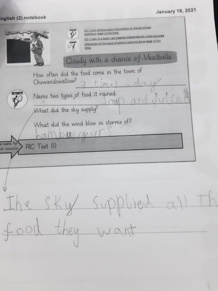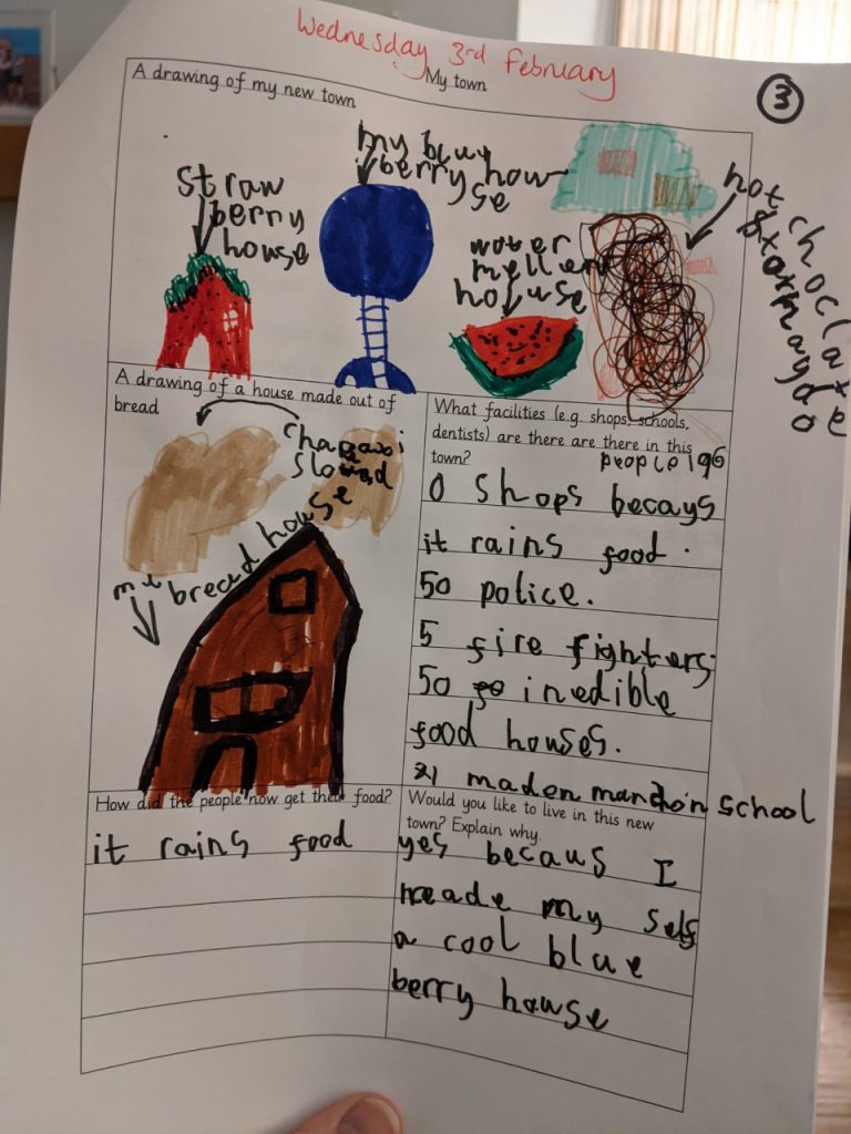 Yet again, you have been amazing continuing with your home learning. We have loved hearing the year 2’s speak enthusiastically in our Zoom check-ins about their English work this week. ‘Cloudy with a chance of meatballs’ has really captured their imaginations and they have produced some fabulous work as a result. We had some amazing weather forecasts sent in from year 1 – there’s some budding reporters out there! It’s also great to hear children talking about pushing themselves trying out the frog challenges in Maths and teaching the grown ups how to use some of the methods we teach in school.