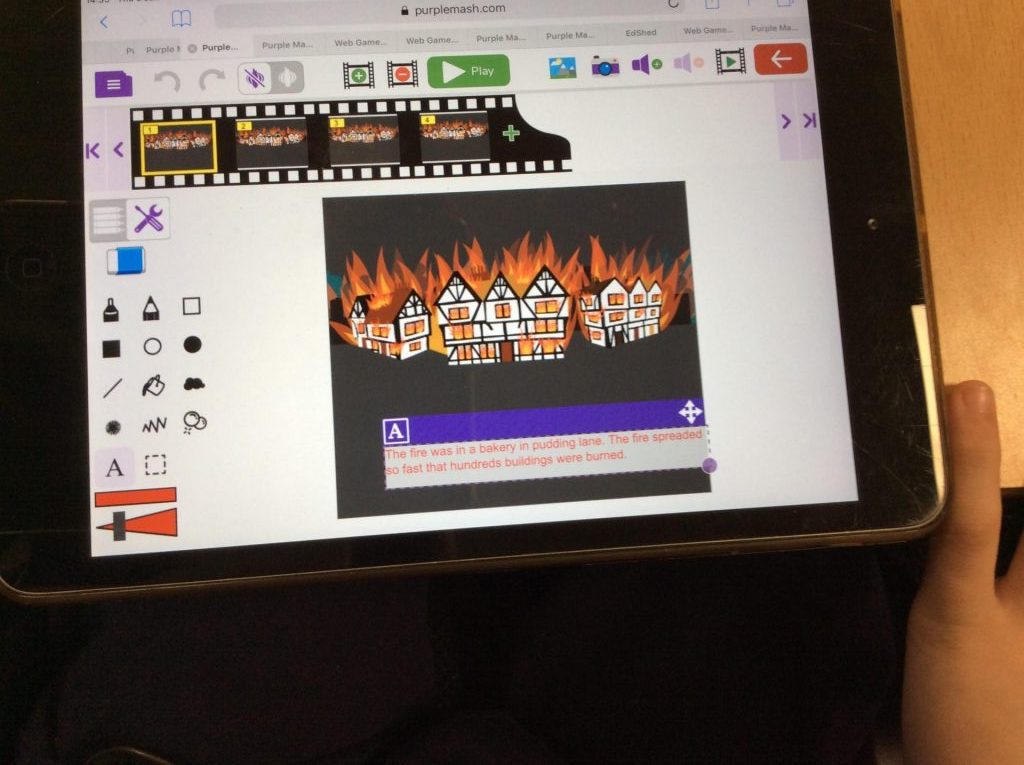 We have used our topic to support our computing this week, creating an animation on PurpleMash. The children used the program 2Animate to create scenes from The Great Fire of London, to show what happened as the buildings began to catch fire.