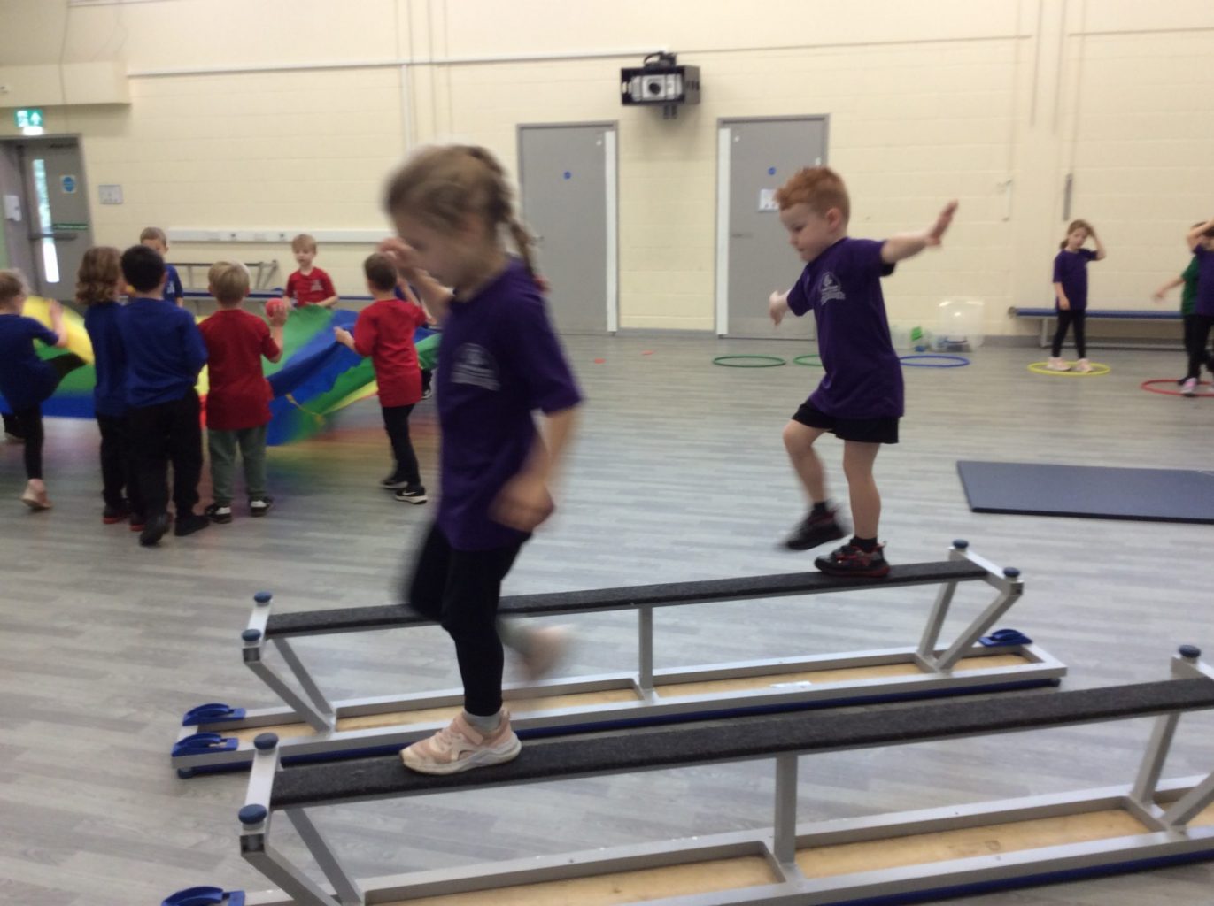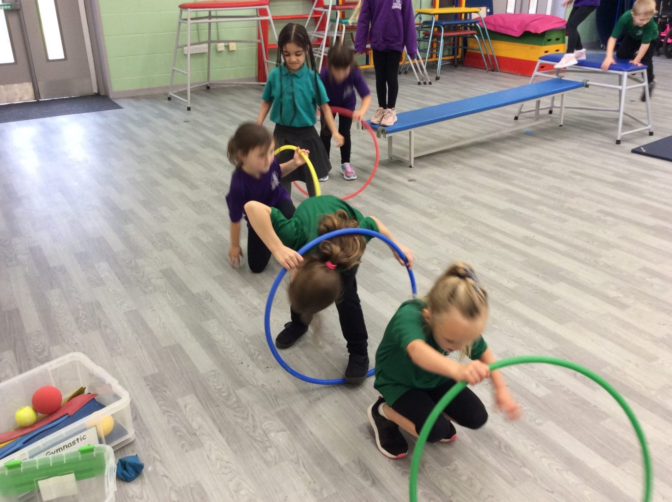 We have been learning some basic skills in PE. Finding different ways to travel around an area, finding spaces. We have also been practising our gymanastics.