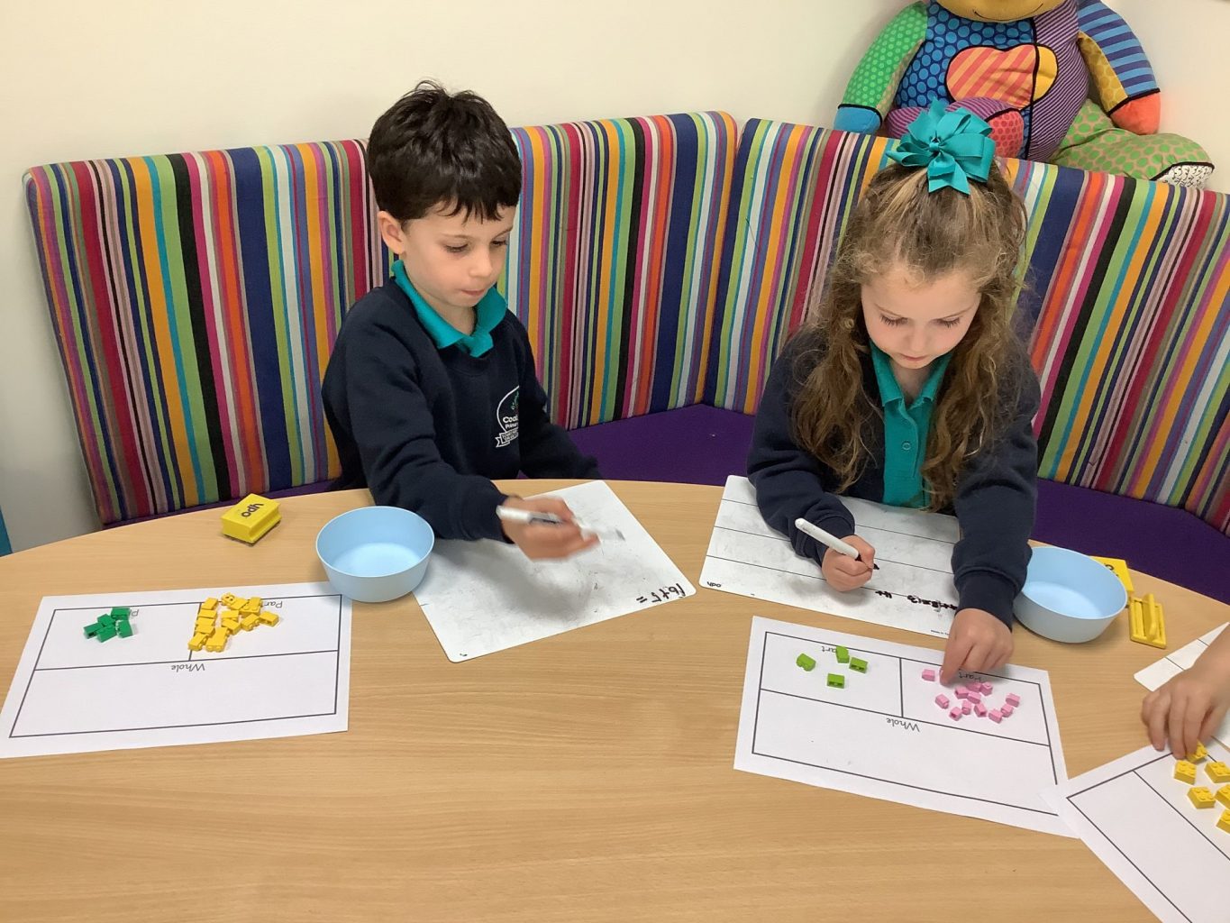 We have had lots of fun in Maths this week, with Year One starting to look at part part whole models and Bar models. We have been investigating different ways of making a number and different representations for the parts. Year two have started a topic on addition. They began by adding using a numberline and simple place value charts.