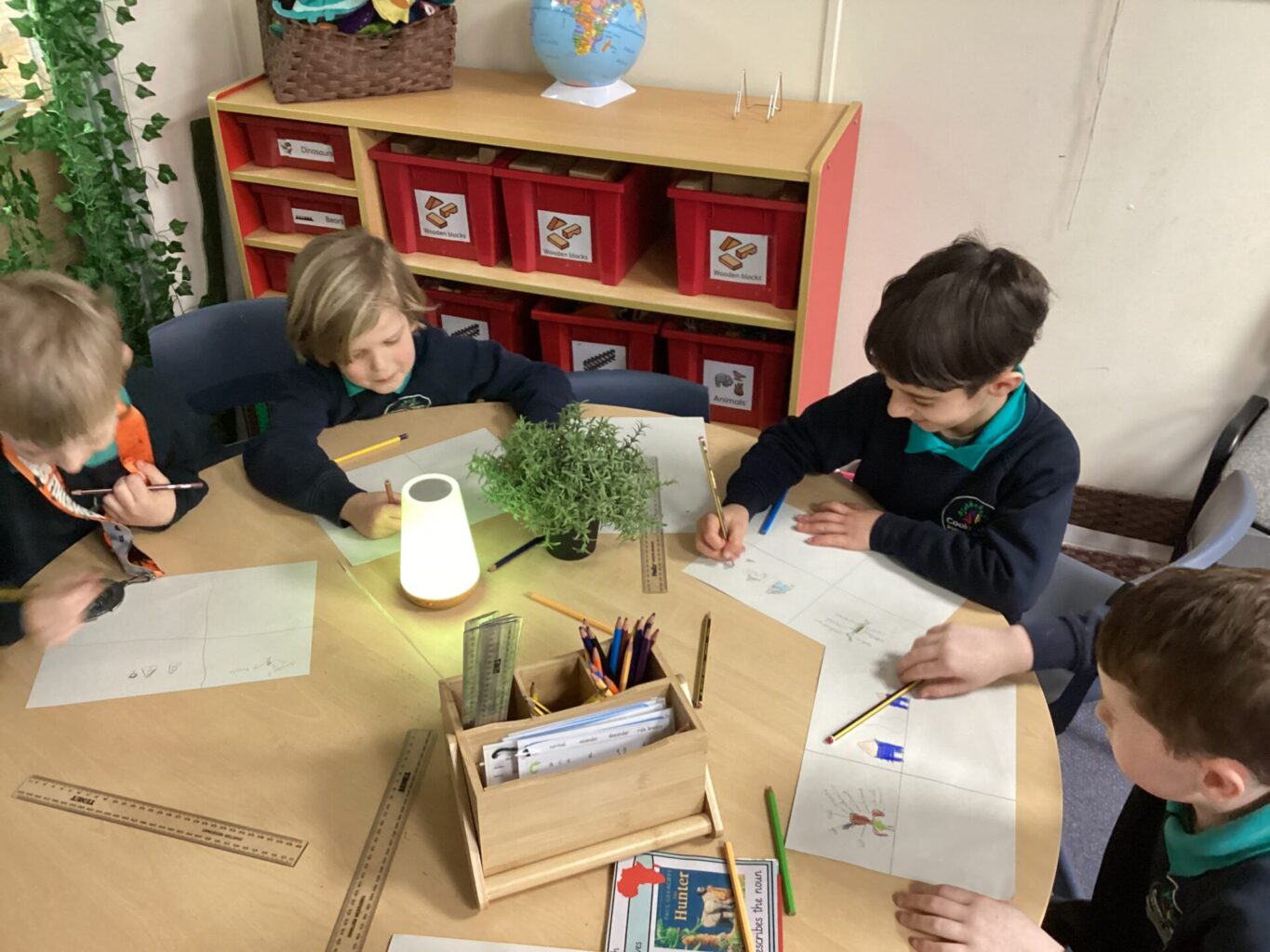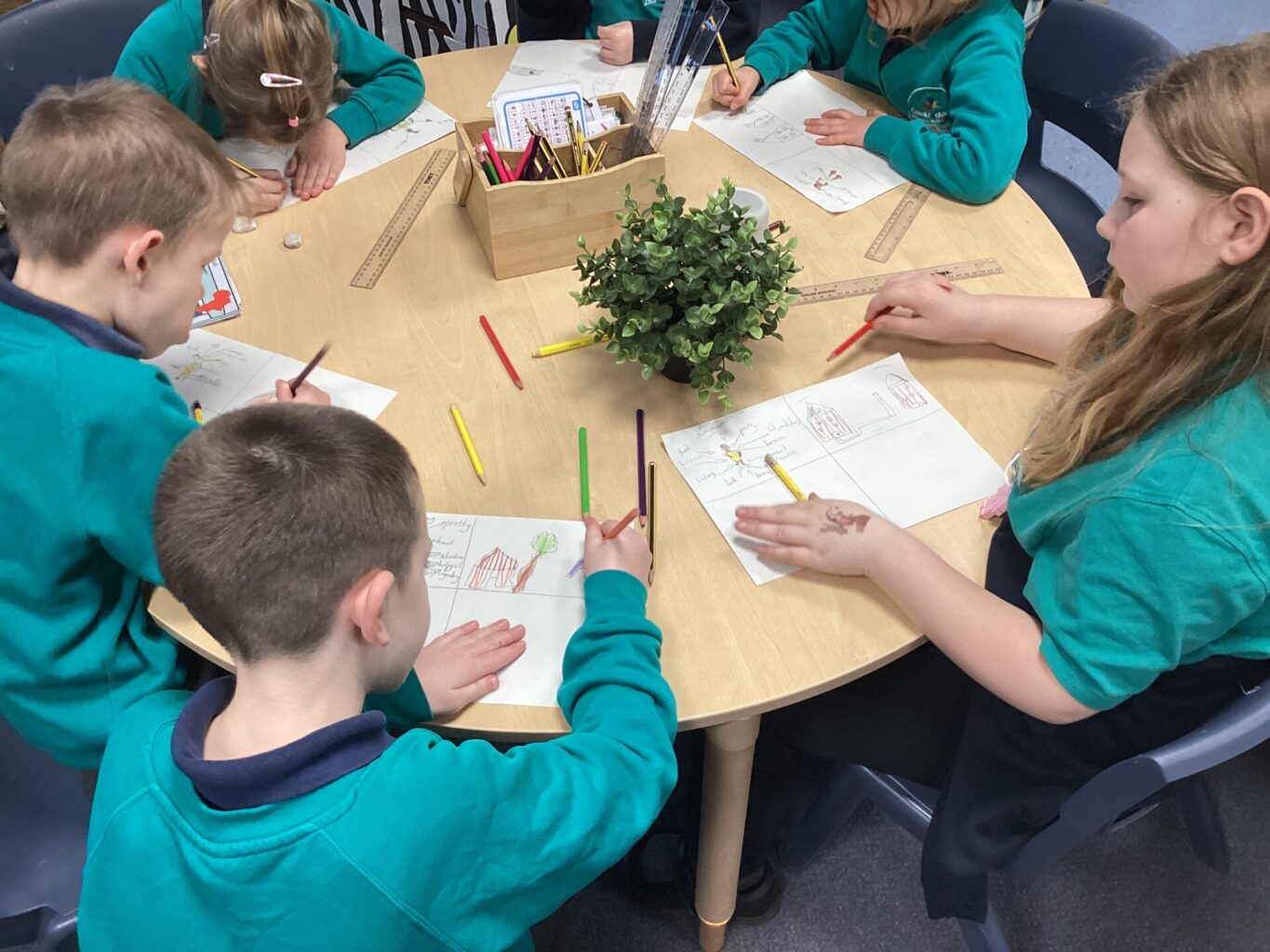 The children have been looking a pictures of Durer’s rhino in art. They were looking at the patterns and textures of the print and thinking about how they were formed, preparing for when they do their own print making.