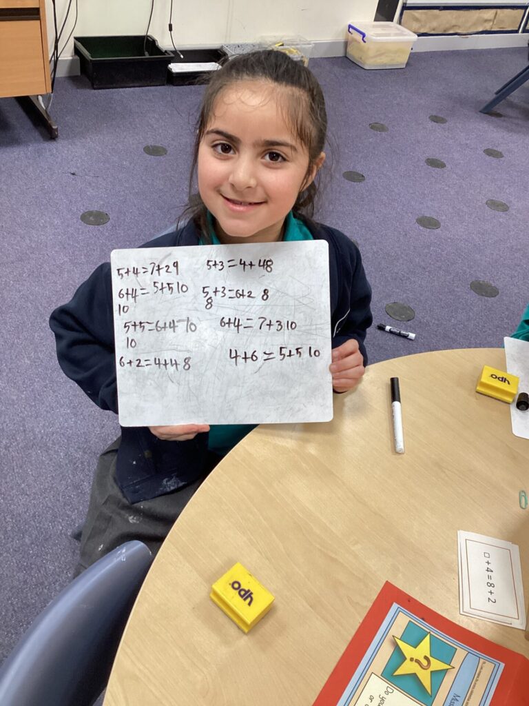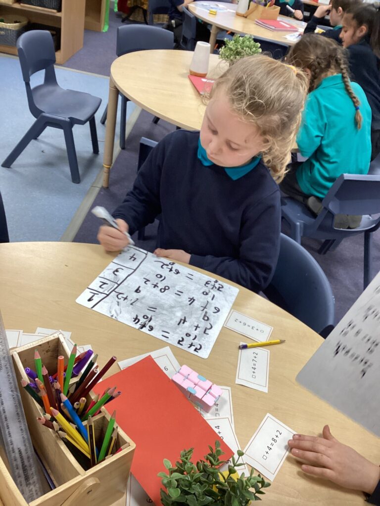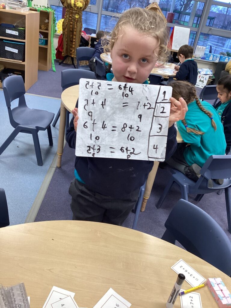 Year One have been subtracting in maths. They are now able to subtract from larger numbers, using number lines, part whole models and have even been answering word problems. In Year Two one group have continued to find the missing number using the inverse and have started to balance the equation, looking at what values to match. The other group have continued their work on money and have been investigating a variety of ways to make the same amount.