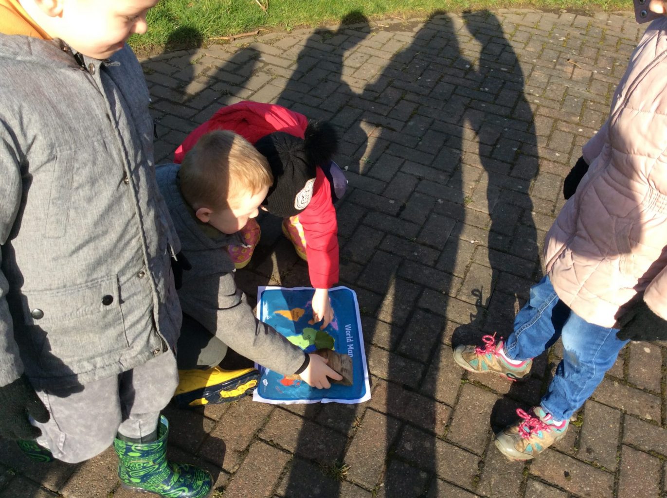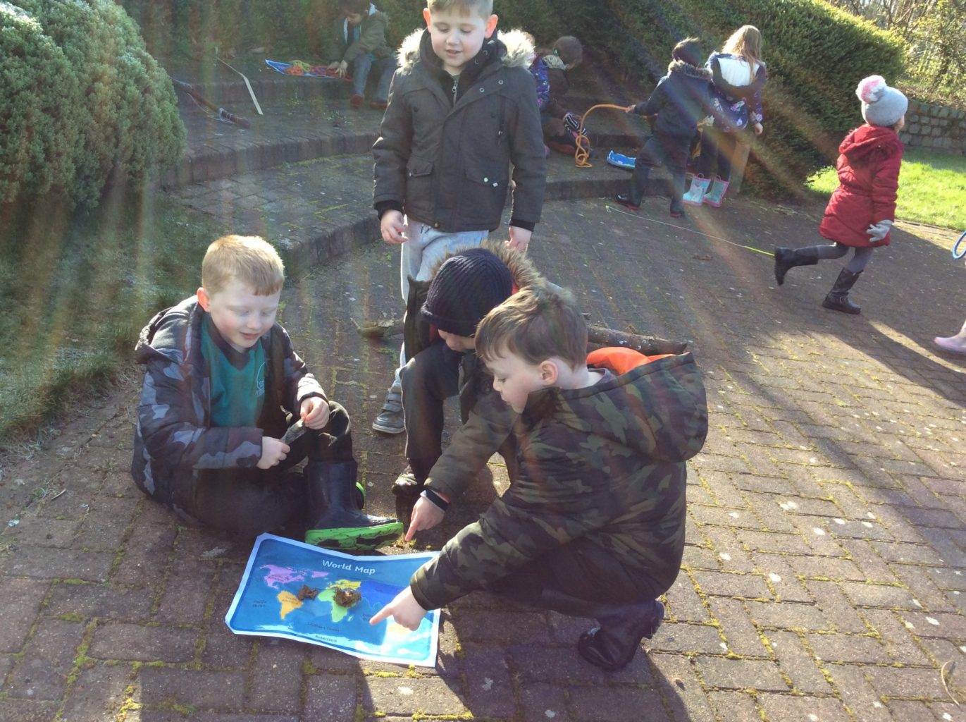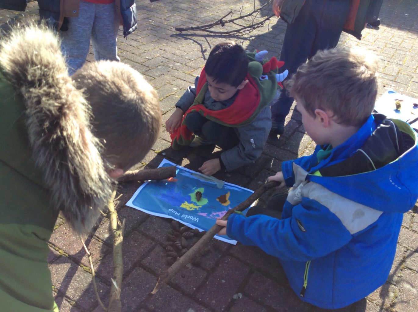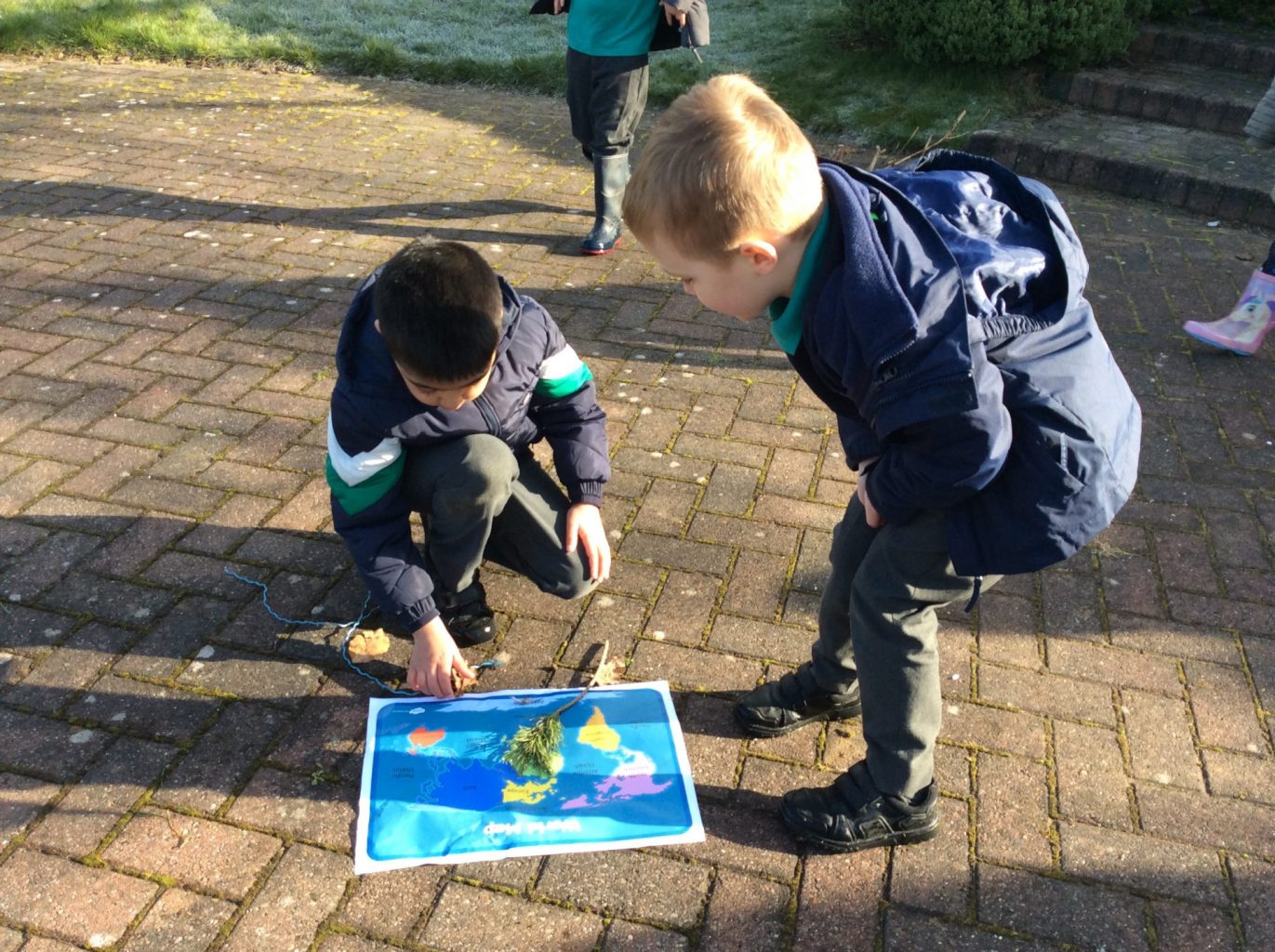 We have ended the week with Forest schools, developing our knowledge of the continents, their place on a map and their size. We took maps up to the field and found a whole variety of objects to represent the different continents and name the correctly.