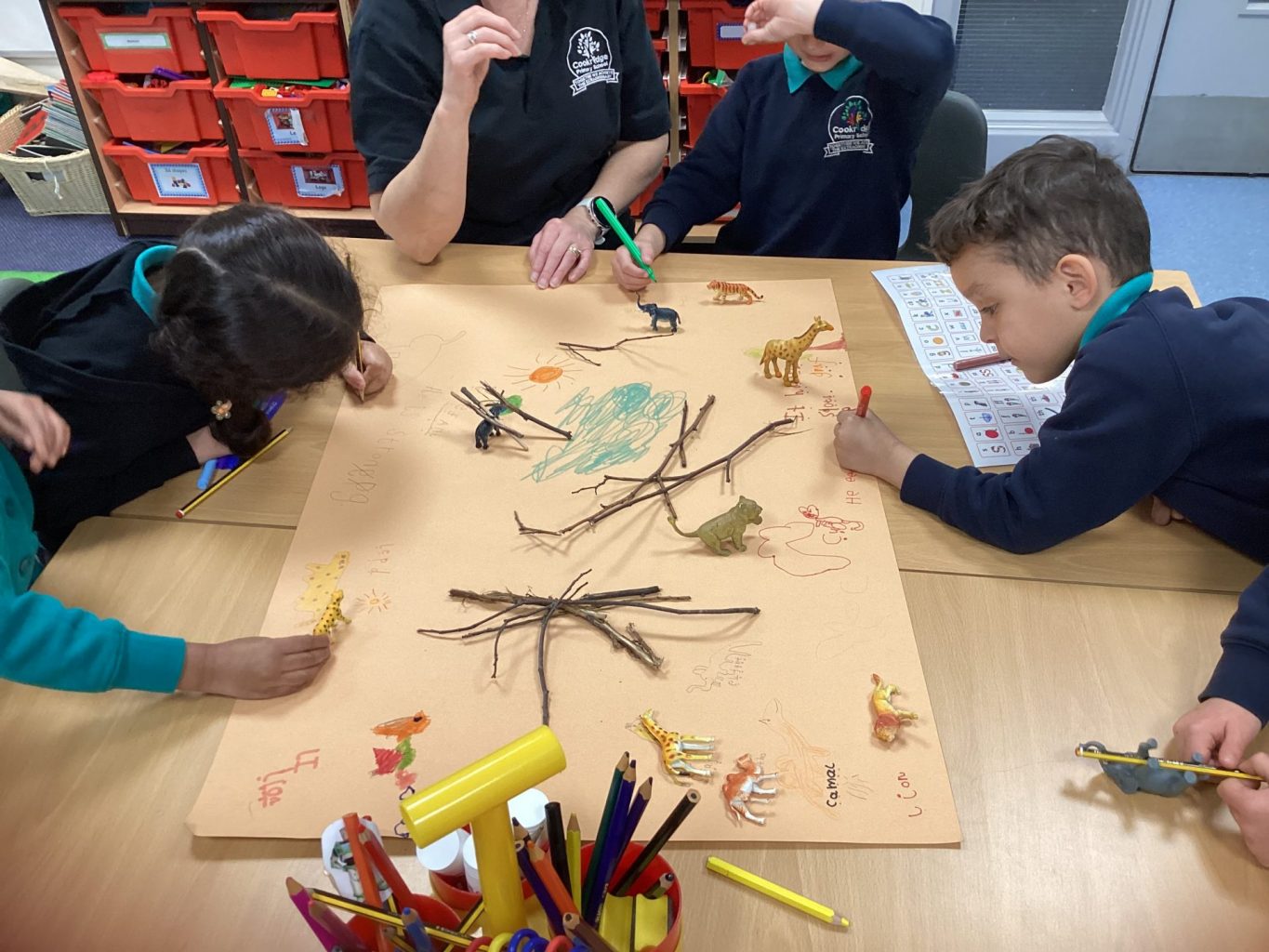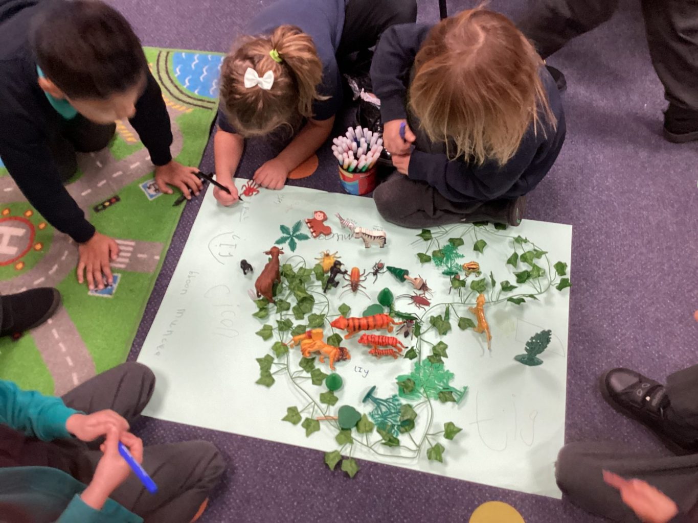 It’s been a happy week in Key Stage One, starting off our week outside doing forest schools. We are beginning to learn about habitats and so the children made a habitat for their animal puppets. They used lots of natural materials around the garden such as sticks and leaves and thought about where would be a sensible place to build it to provide extra shelter and protection.
